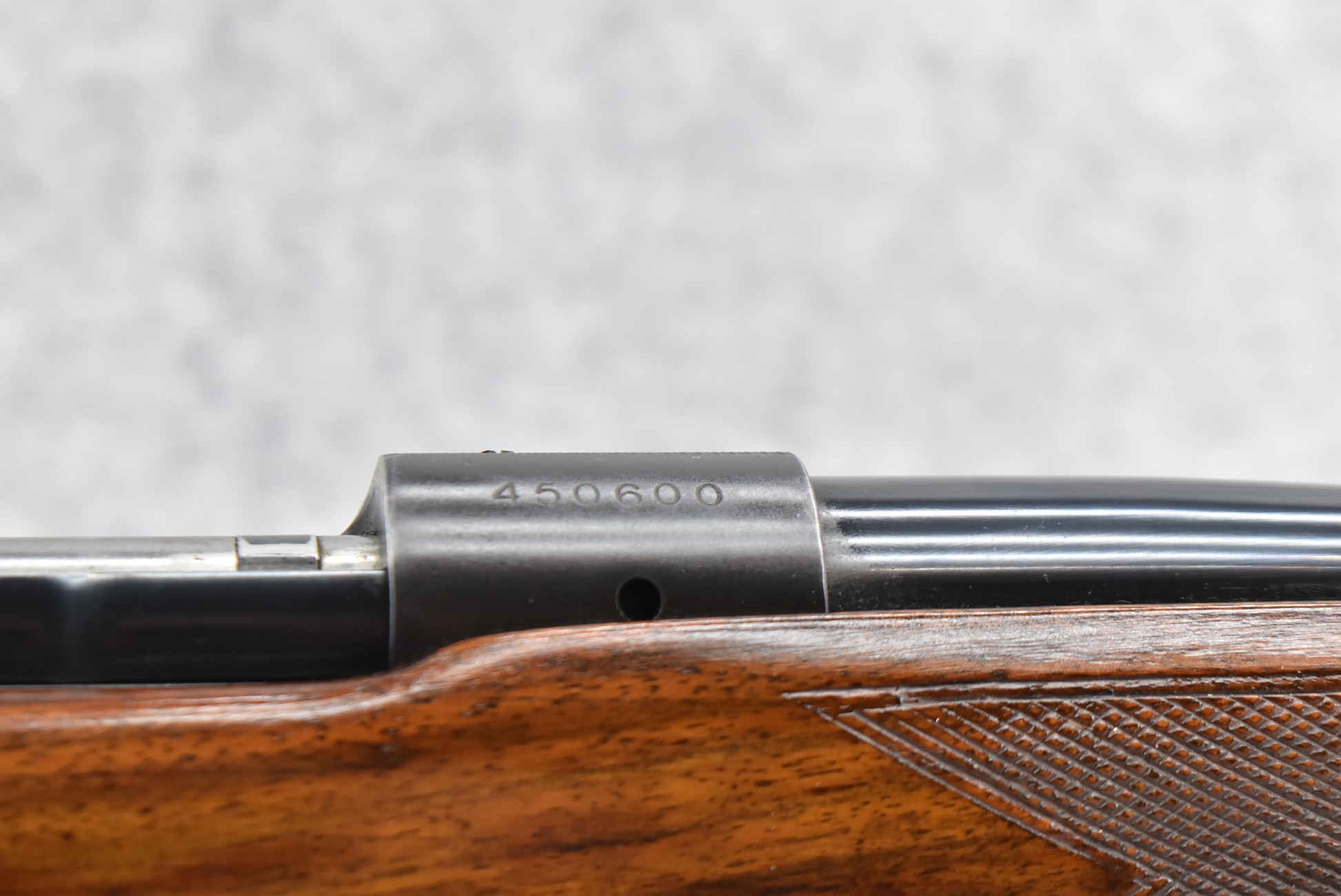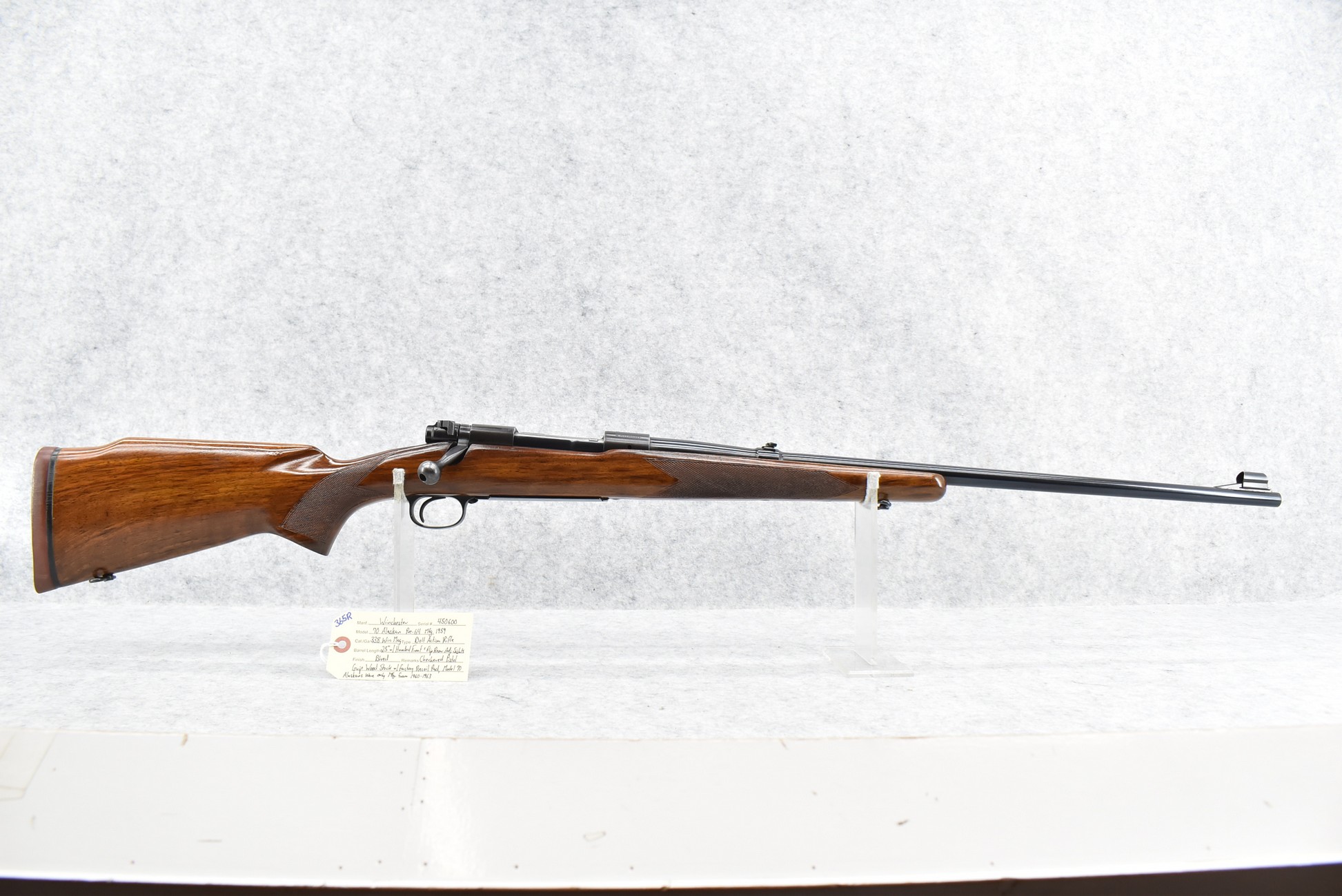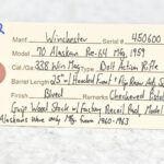 365R. Winchester – Mod. 70 Alaskan (Pre-64) – 338 Win. Mag. Cal. Bolt Action Rifle – w/25” Barrel w/Hooded Front & Flip Rear Adj. Sights – Blued Finish – w/Checkered Pistol Grip Wood Stock w/Factory Recoil Pad – Mod. 70 Alaskans Were Only Mfg. From 1960-1963 w/This One Receiver Being Mfg. in 1959