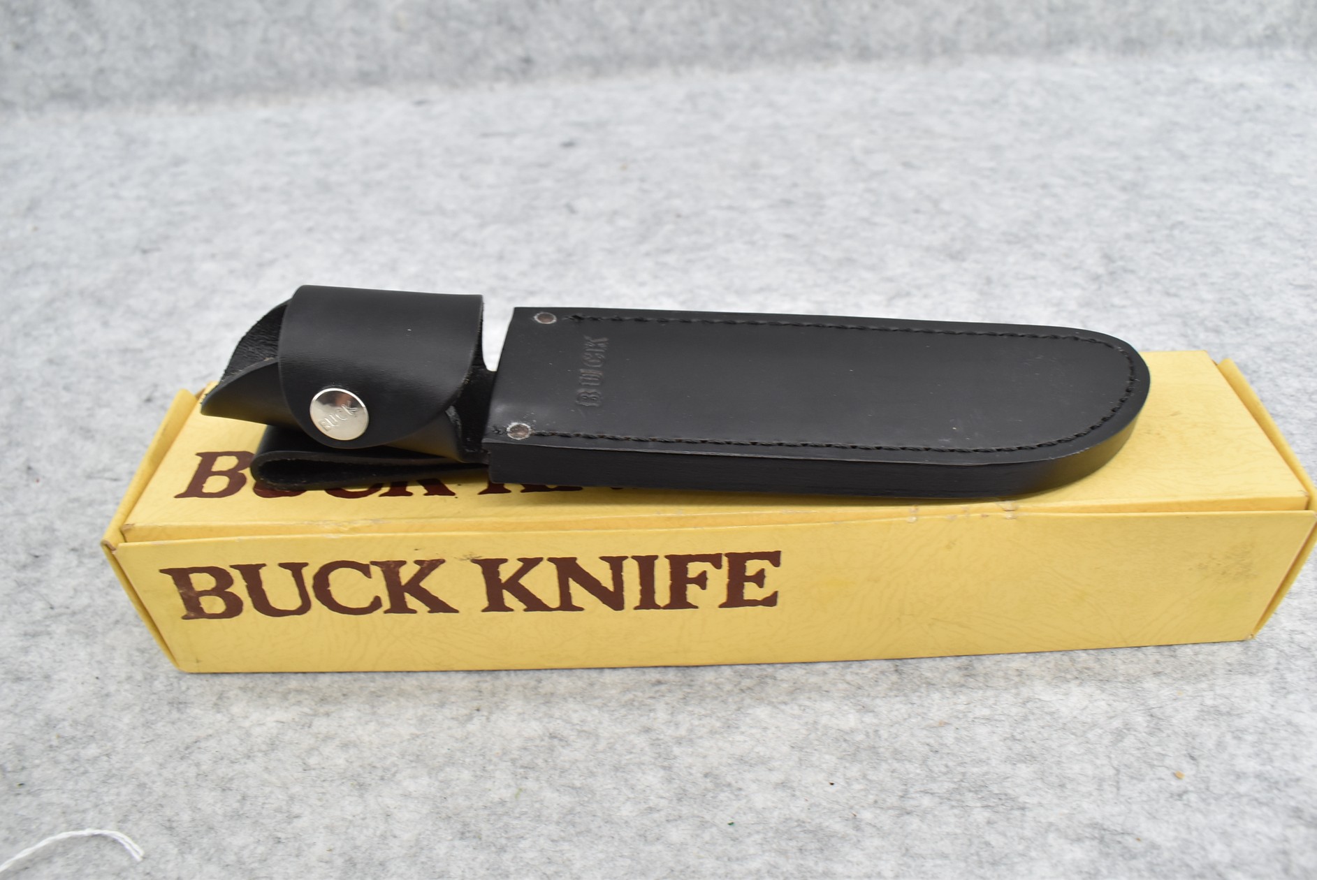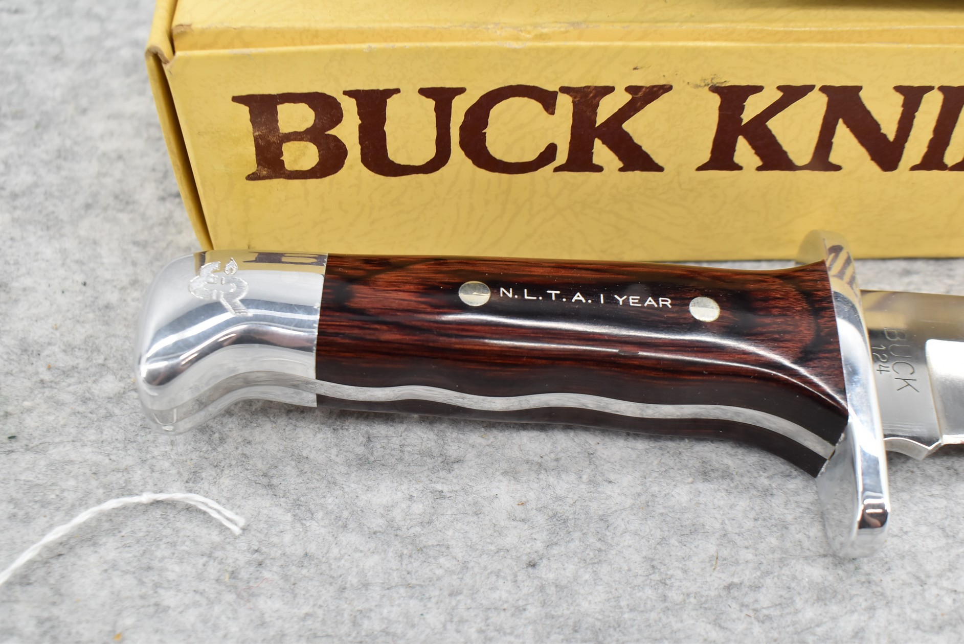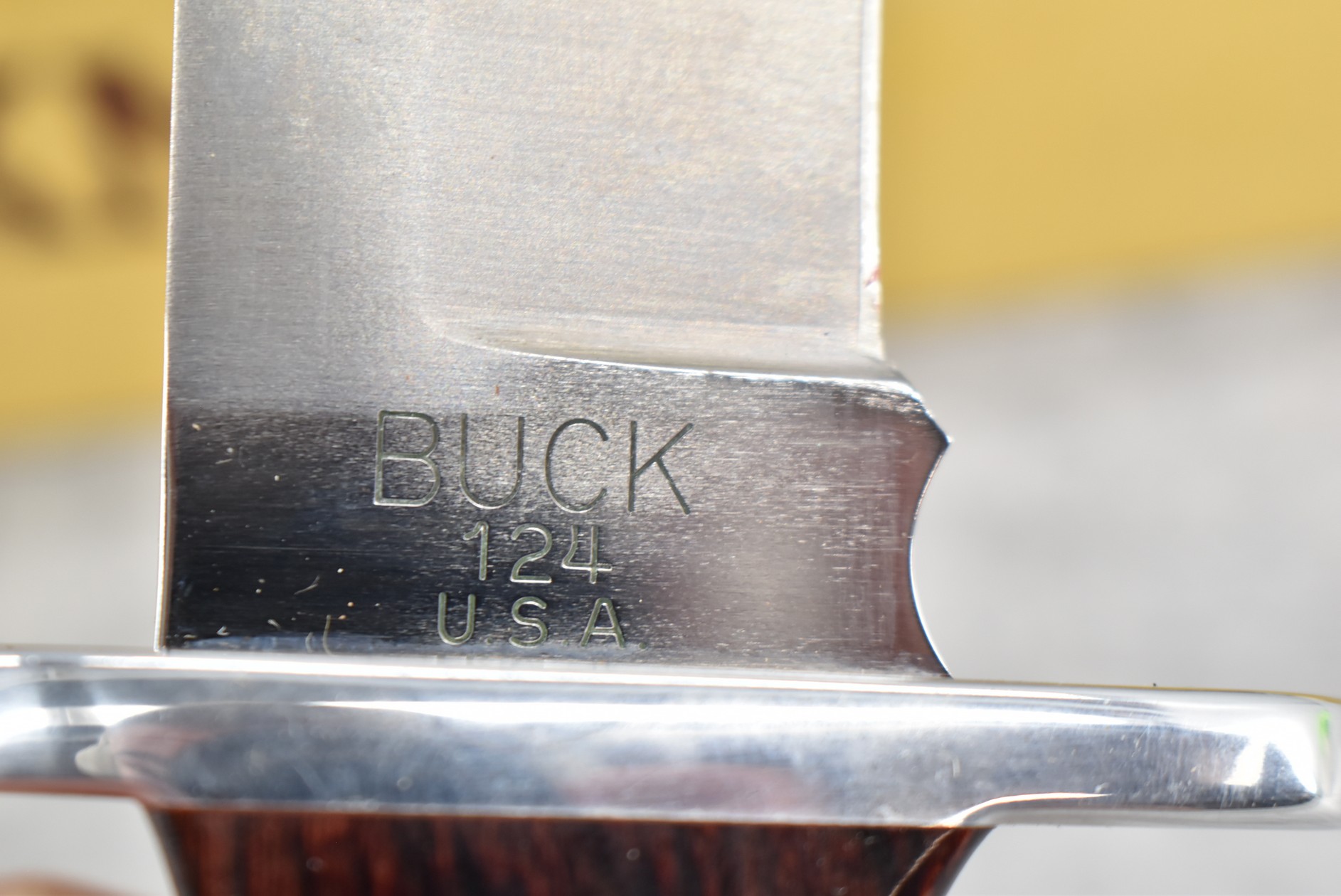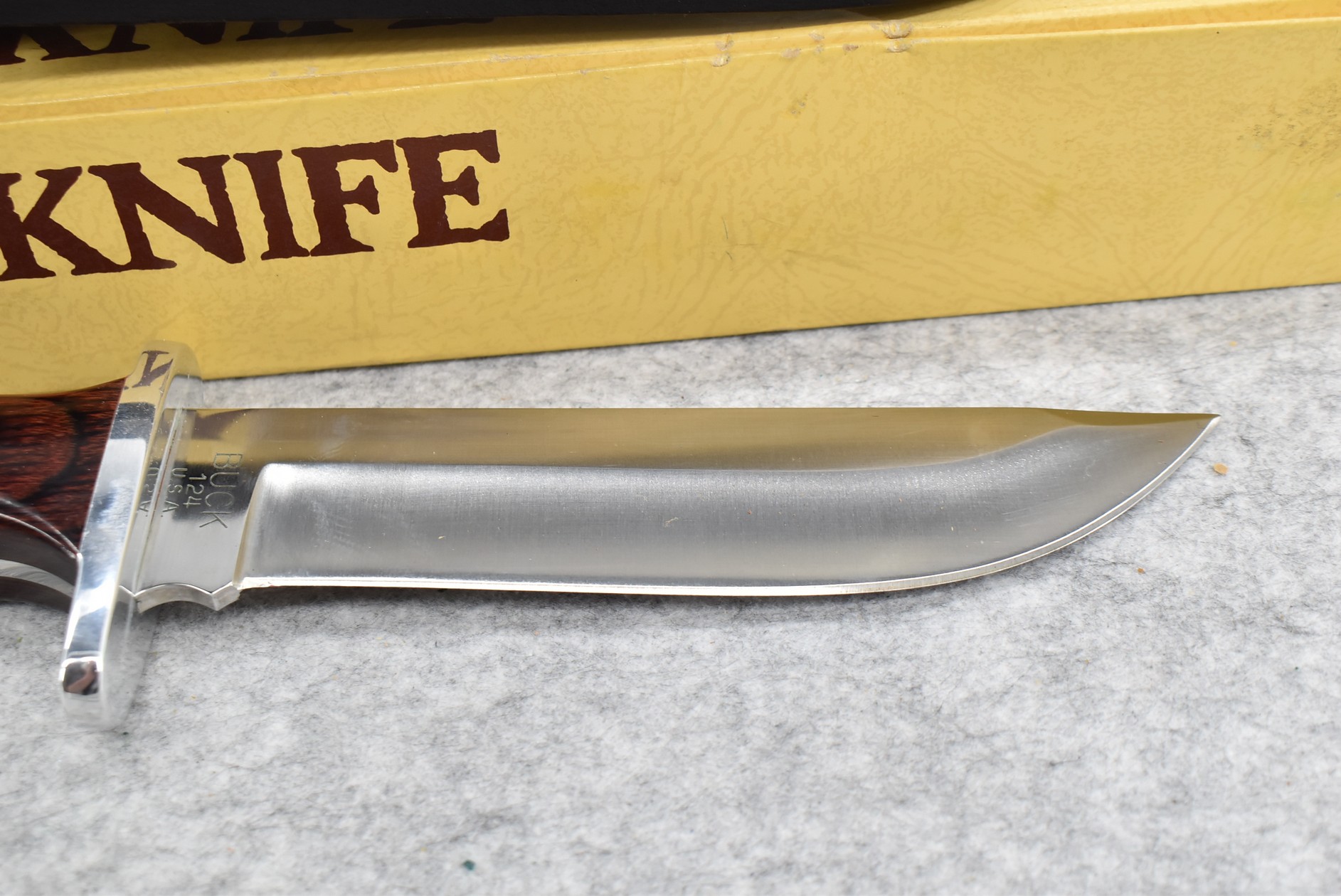 369. Buck – M-124 Frontiersman Wood & Aluminum Handle Knife – w/Sheath – New in Factory Box