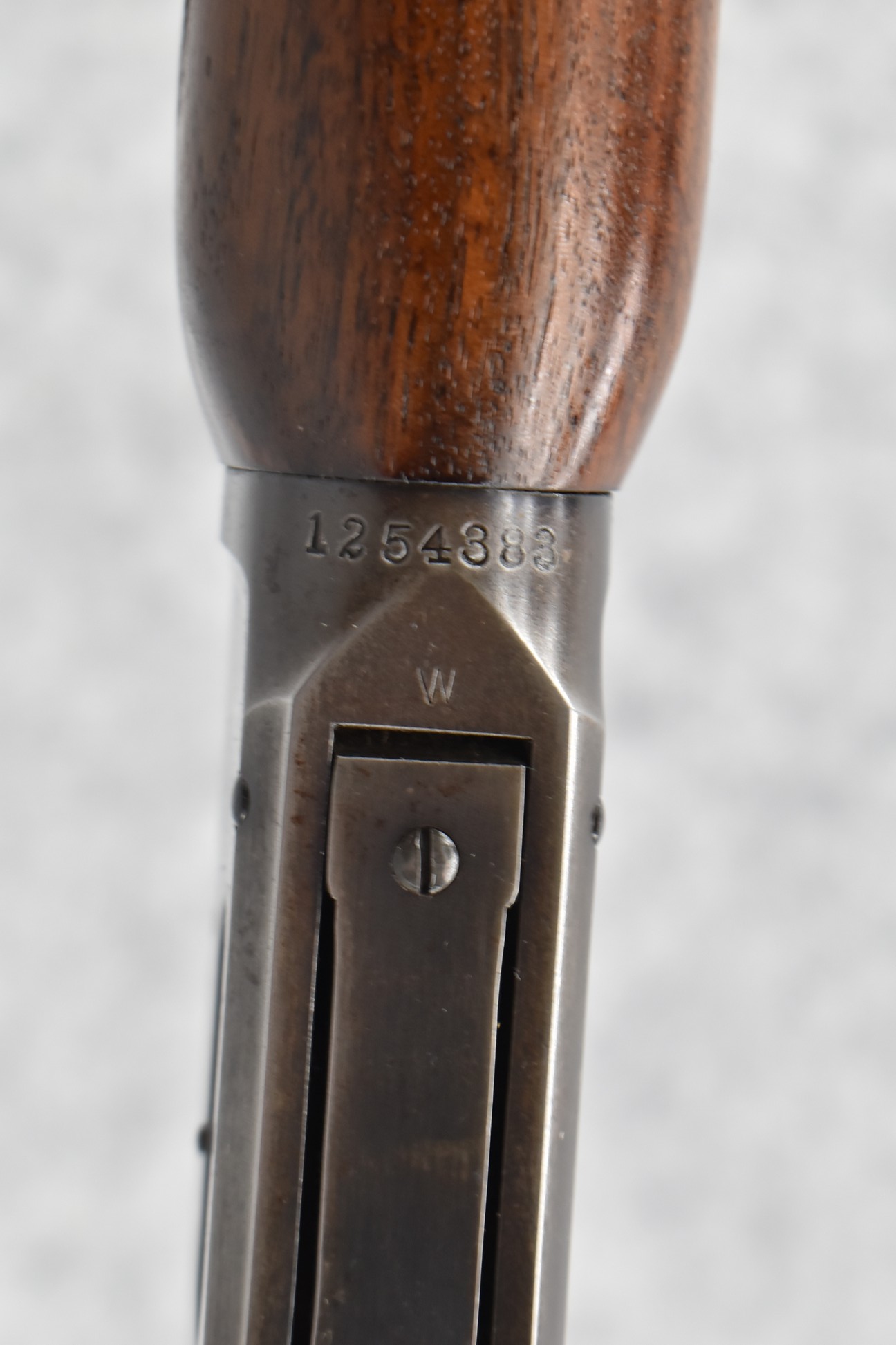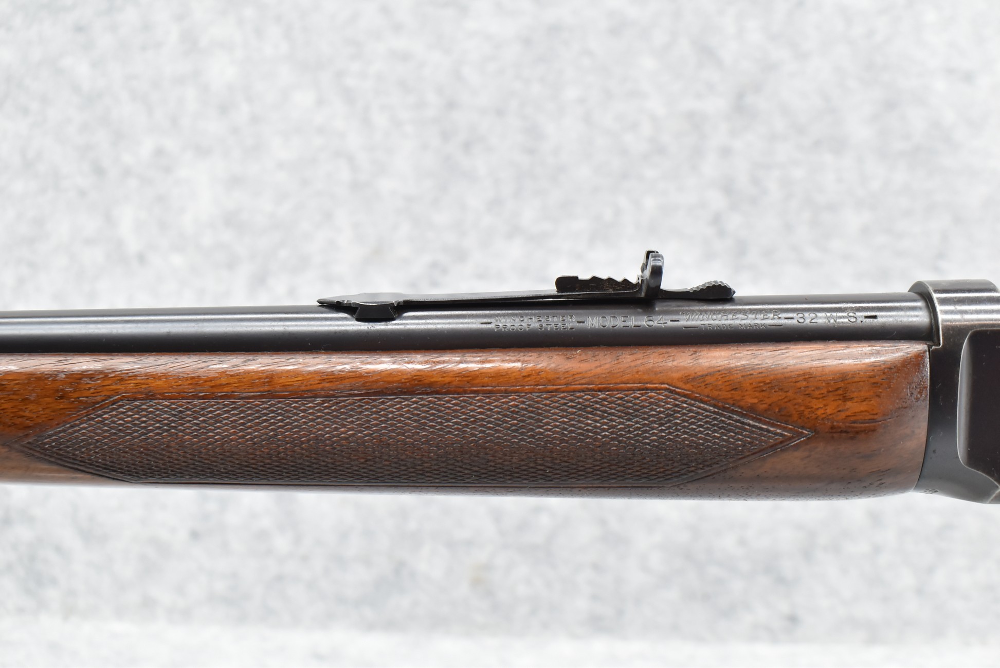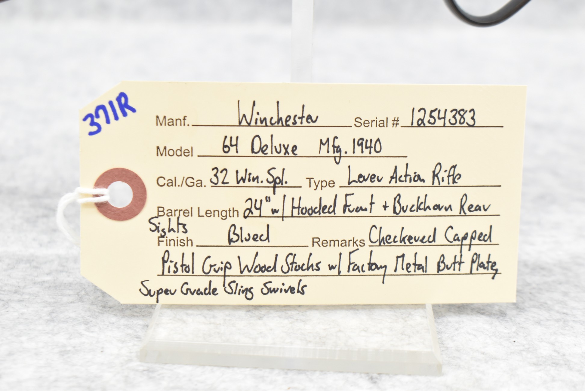 371R. Winchester – Mod. 64 Deluxe – 32 Win. Spl. Cal. Lever Action Rifle – w/24” Barrel w/Hooded Front & Buckhorn Rear Sights – Blued Finish – w/Checkered Capped Pistol Grip Wood Stocks w/Factory Metal Butt Plate – w/Super Grade Sling Swivels – Mfg. 1940