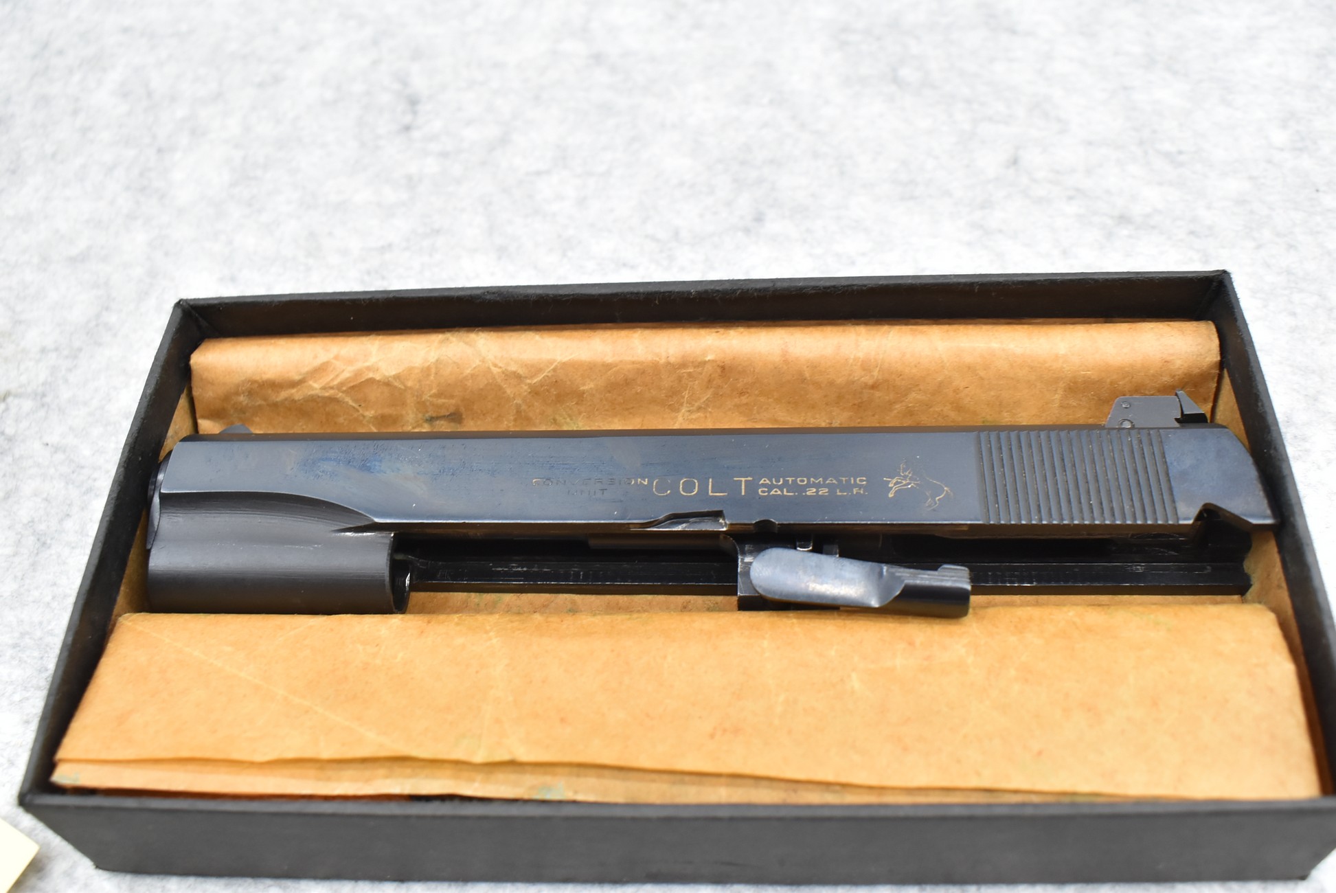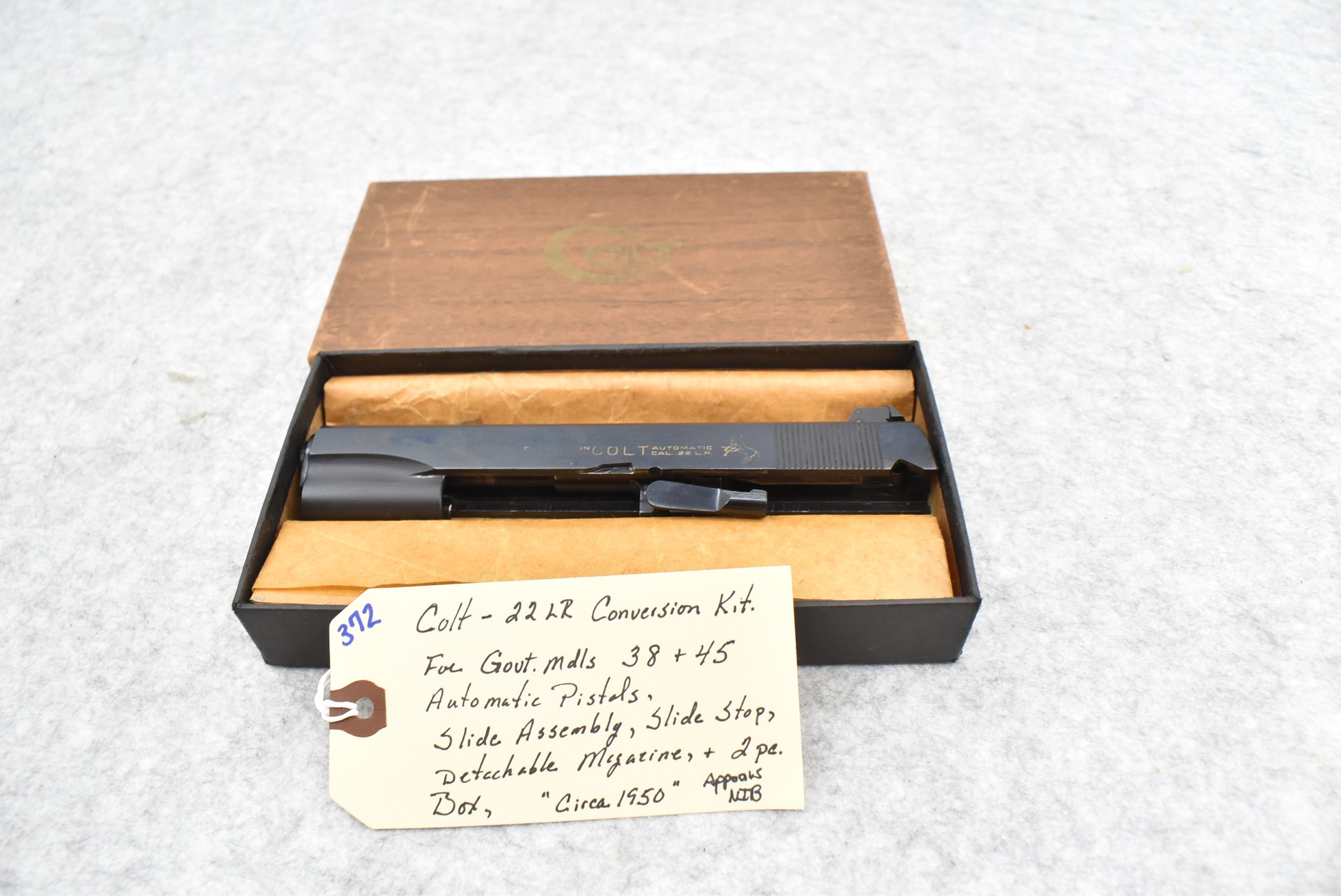 372. Colt – 22LR Cal. Conversion Kit for Govt. Models 38 & 45 Automatic Pistols – Includes Slide Assembly, Slide Stop & Detachable Magazine – Appears New w/2pc. Box – Circa 1950