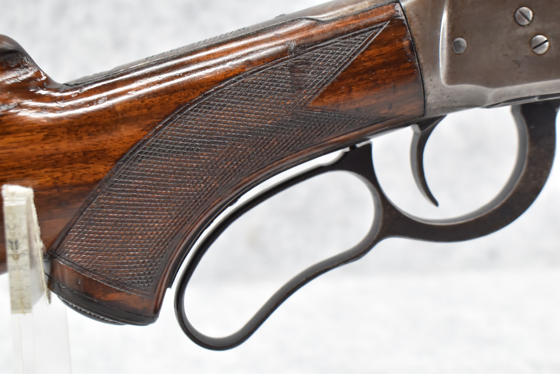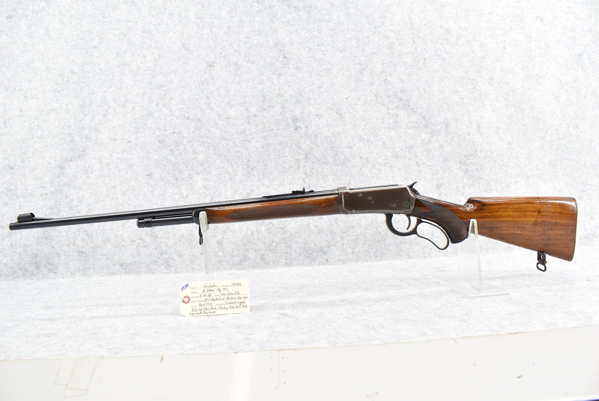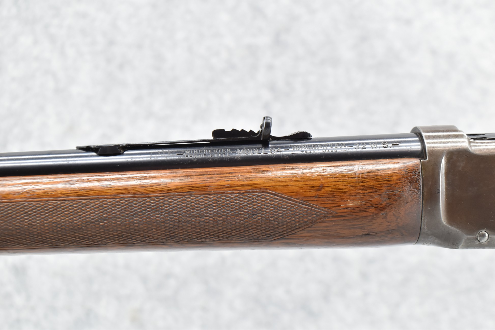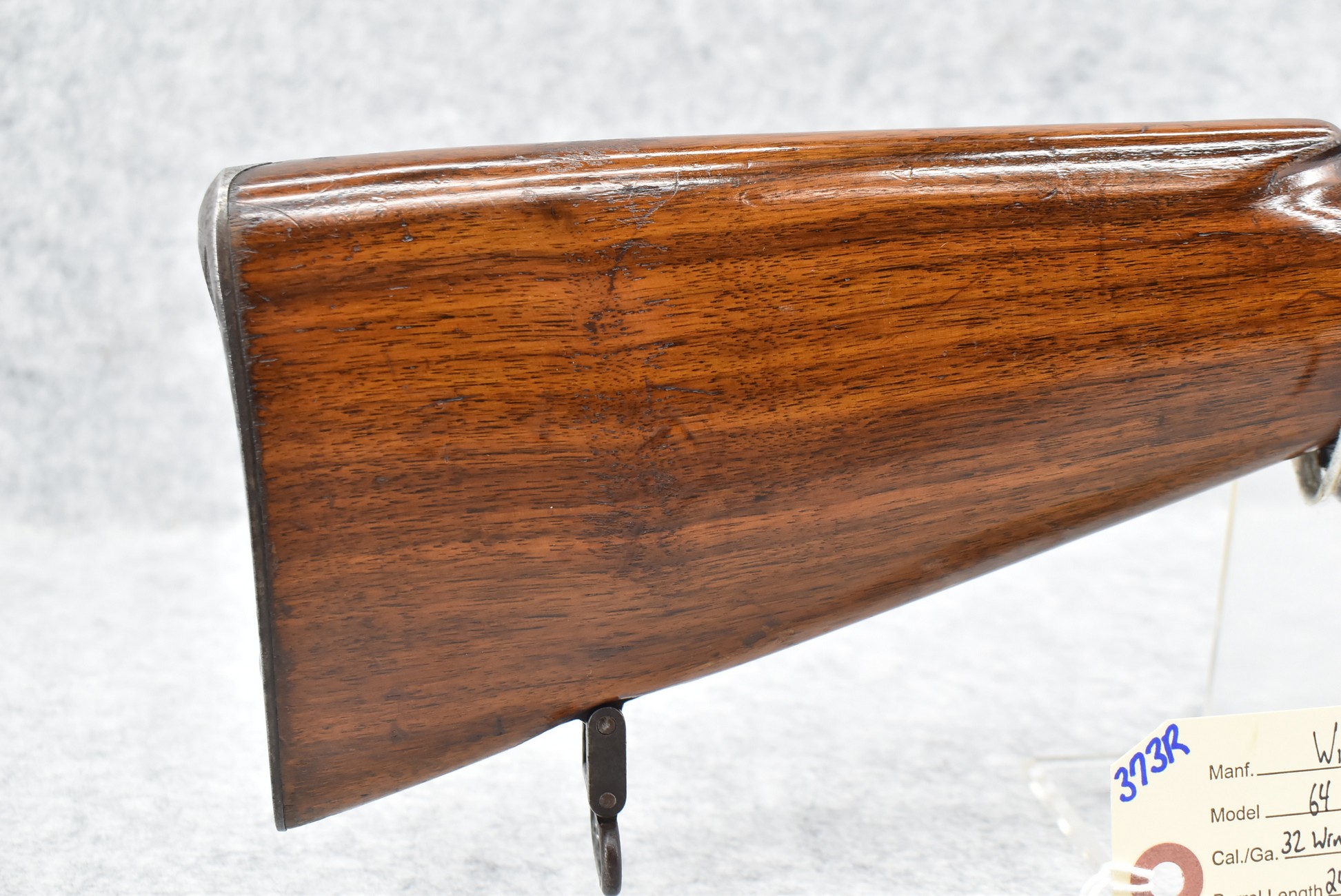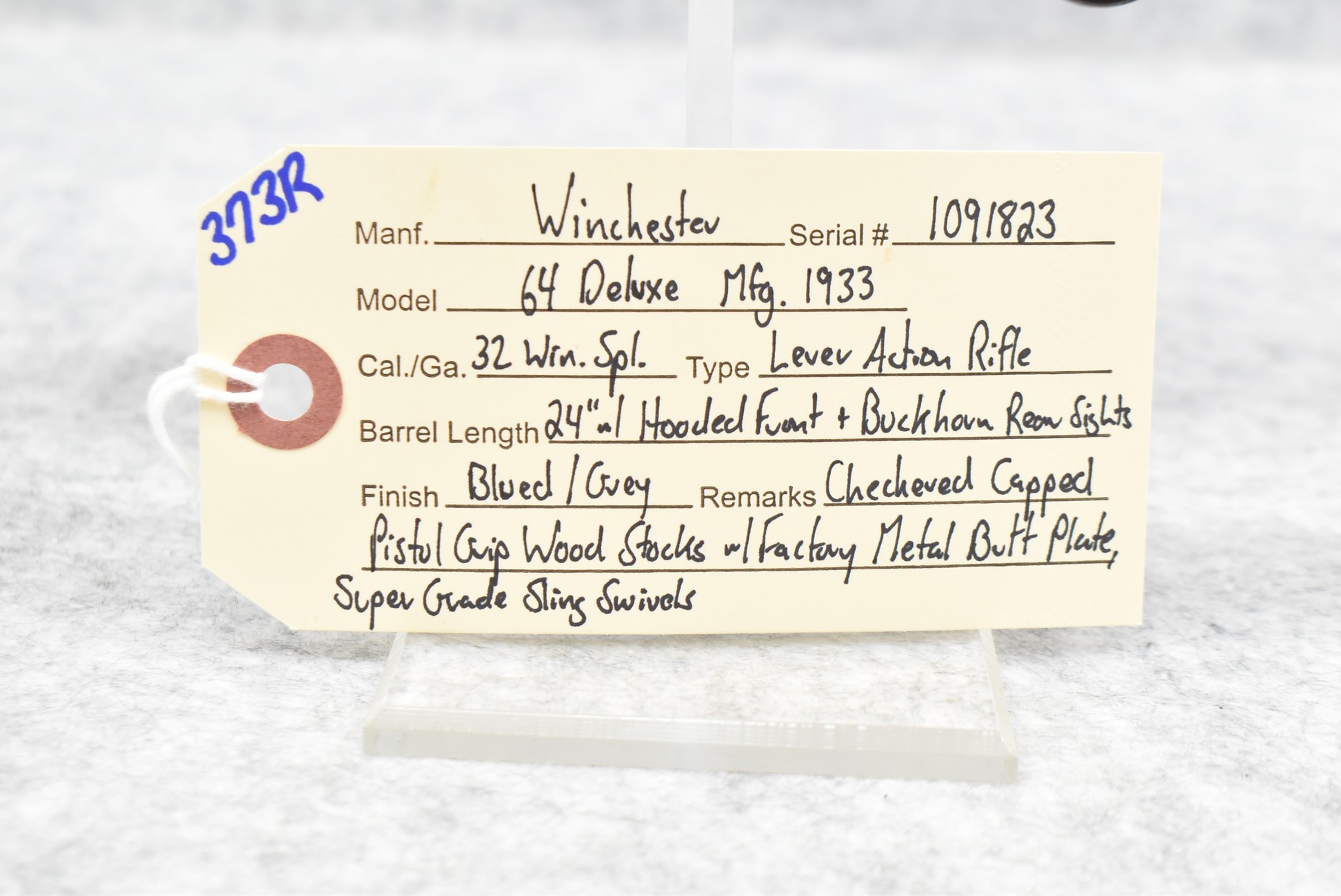 373R. Winchester – Mod. 64 Deluxe – 32 Win. Spl. Cal. Lever Action Rifle – w/24” Barrel w/Hooded Front & Buckhorn Rear Sights – Blued/Gray Finish – w/Checkered Capped Pistol Grip Wood Stocks w/Factory Metal Butt Plate – w/Super Grade Sling Swivels – Mfg. 1933