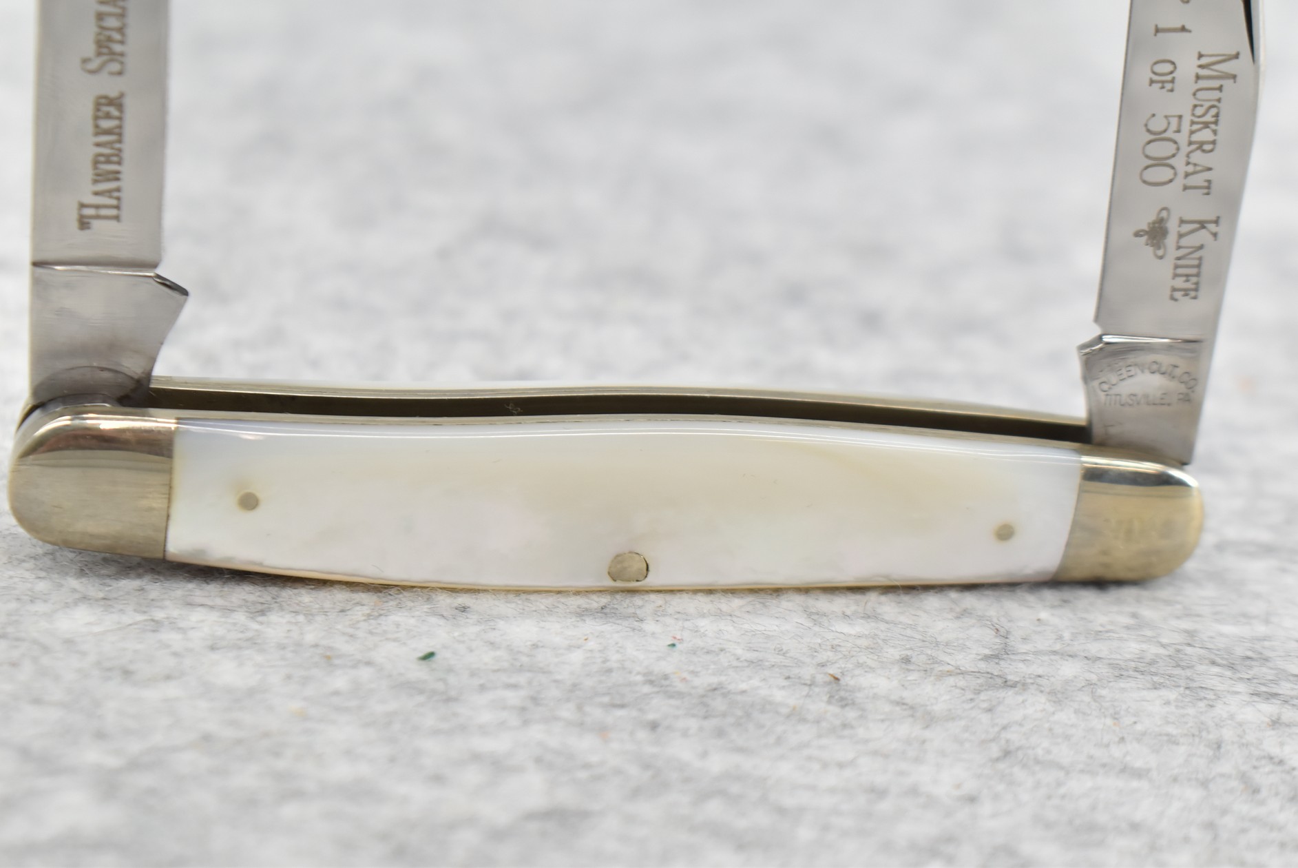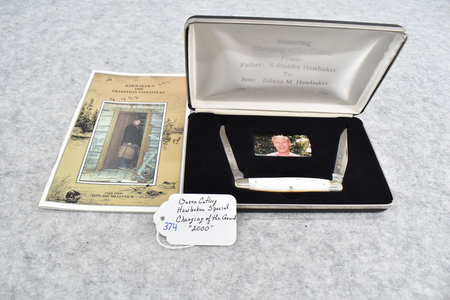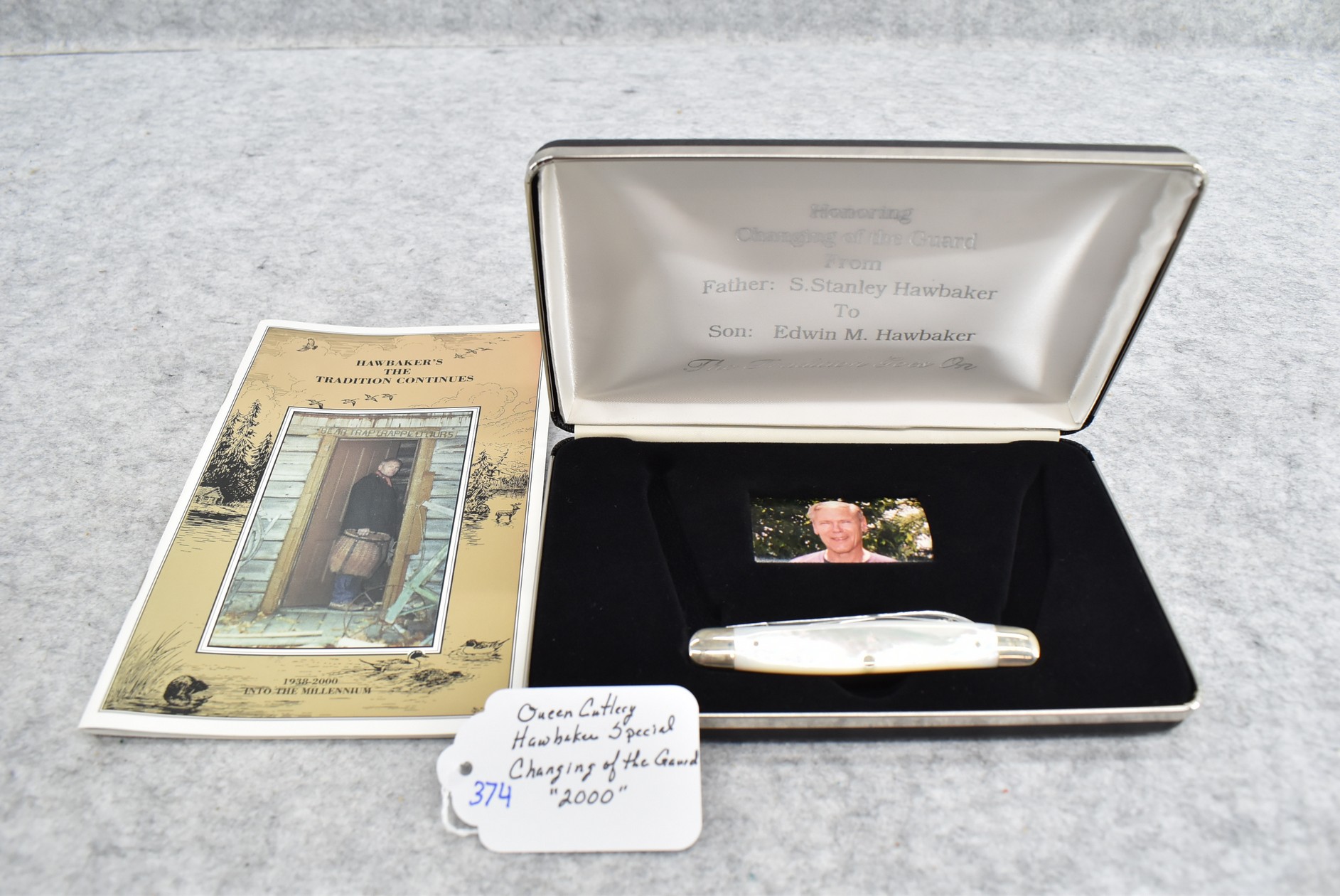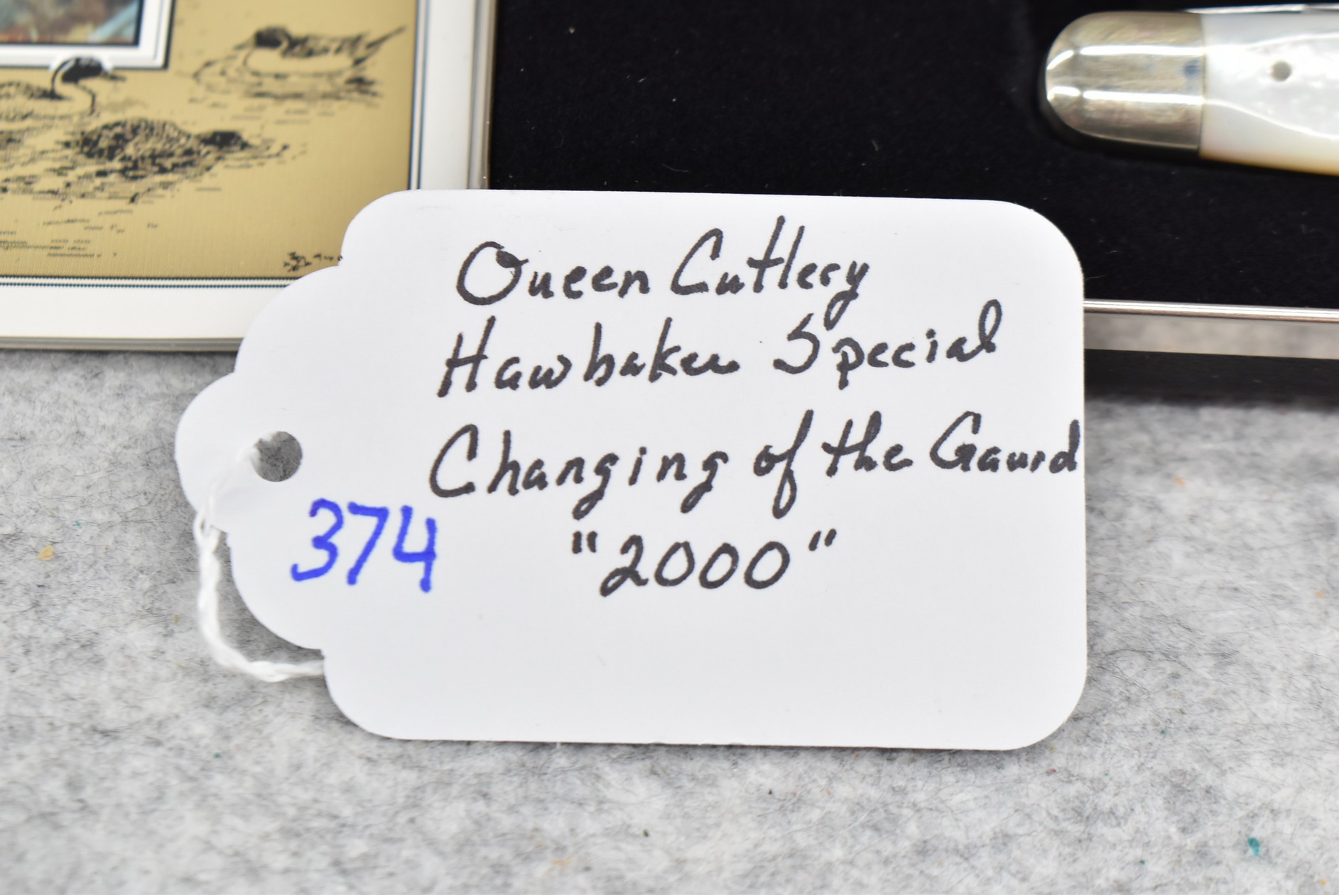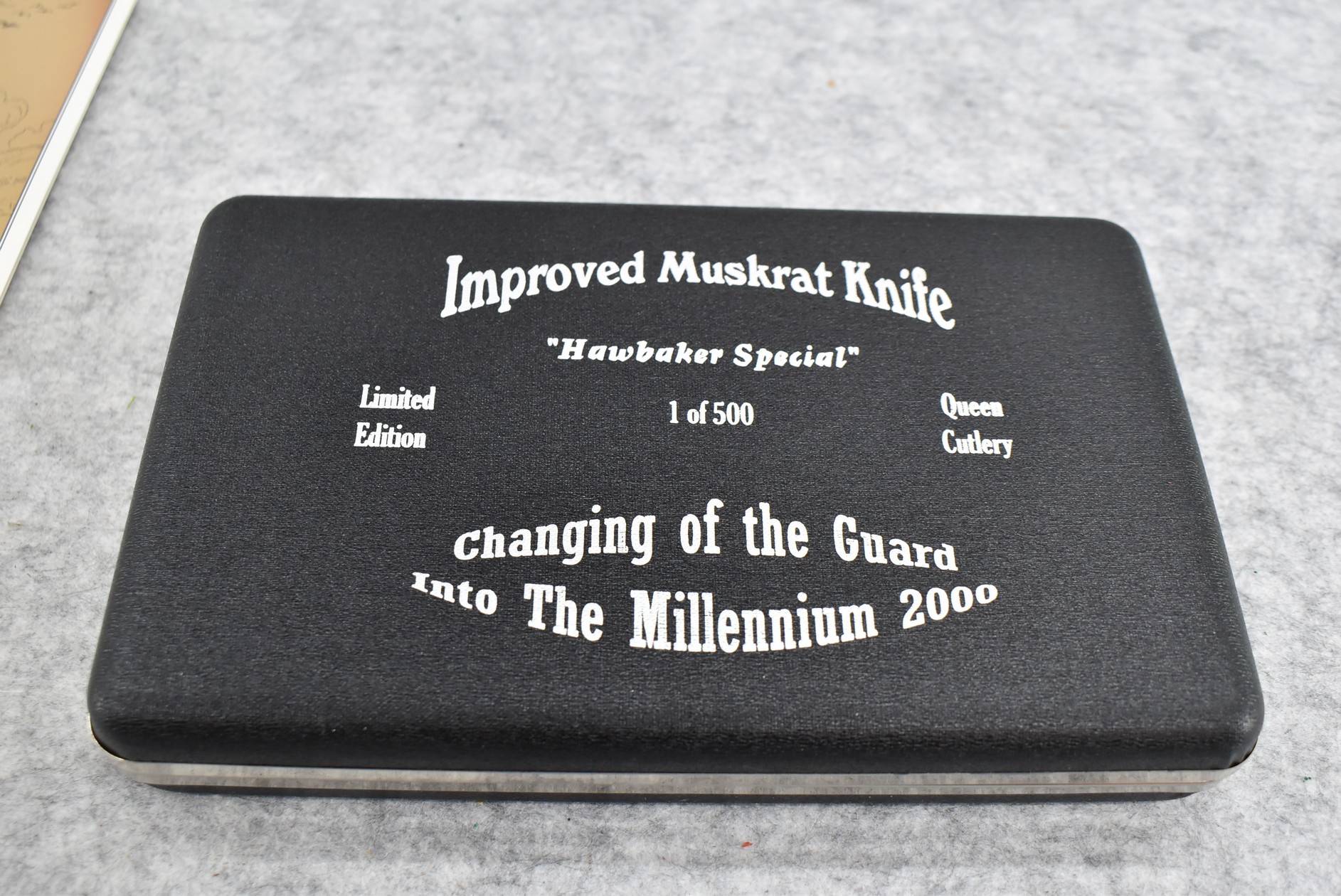 374. Queen Cutlery – Improved Muskrat Knife “Hawbaker Special” 1 of 500 “Honoring Changing of the Guard Fron Father to Son” – 2000