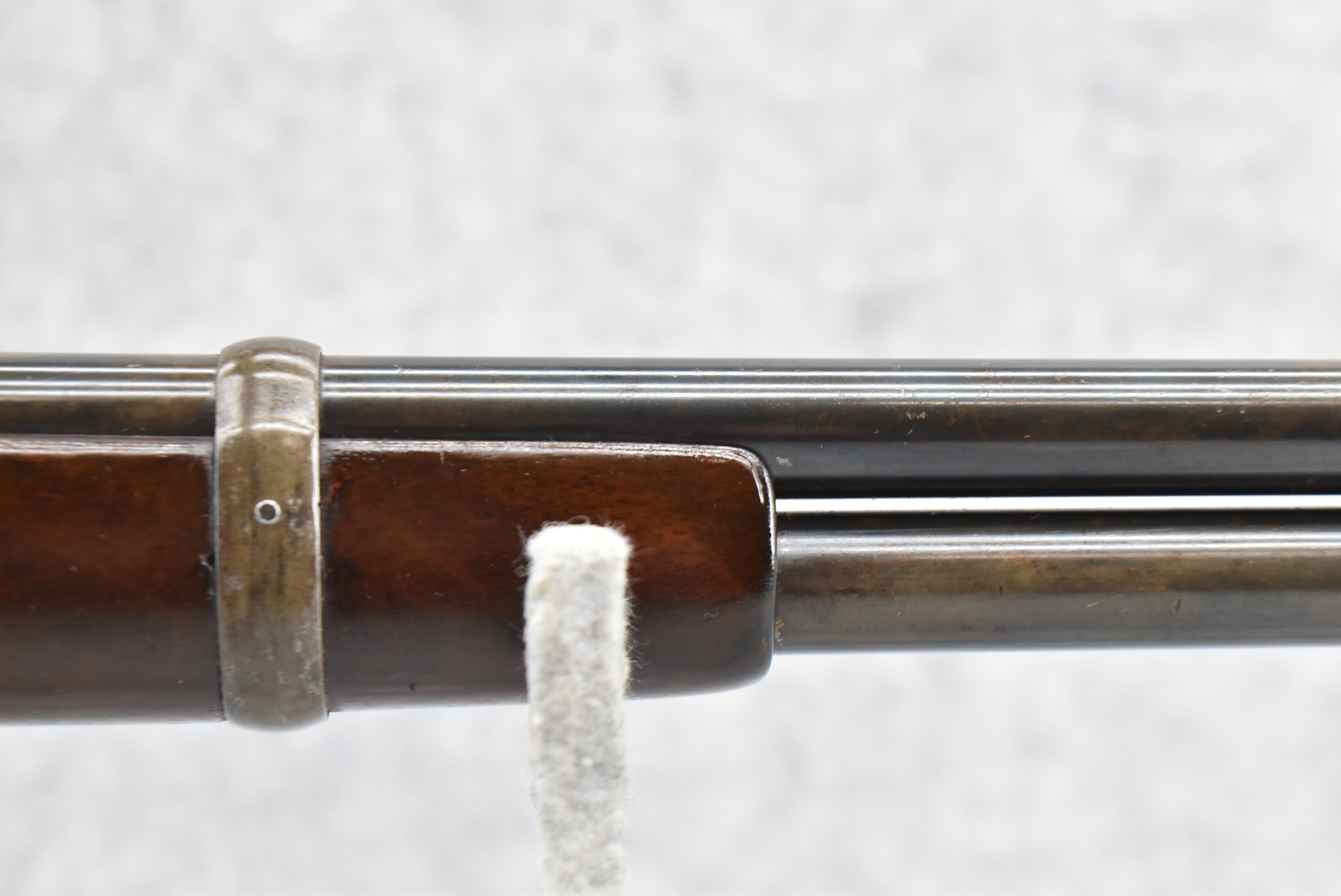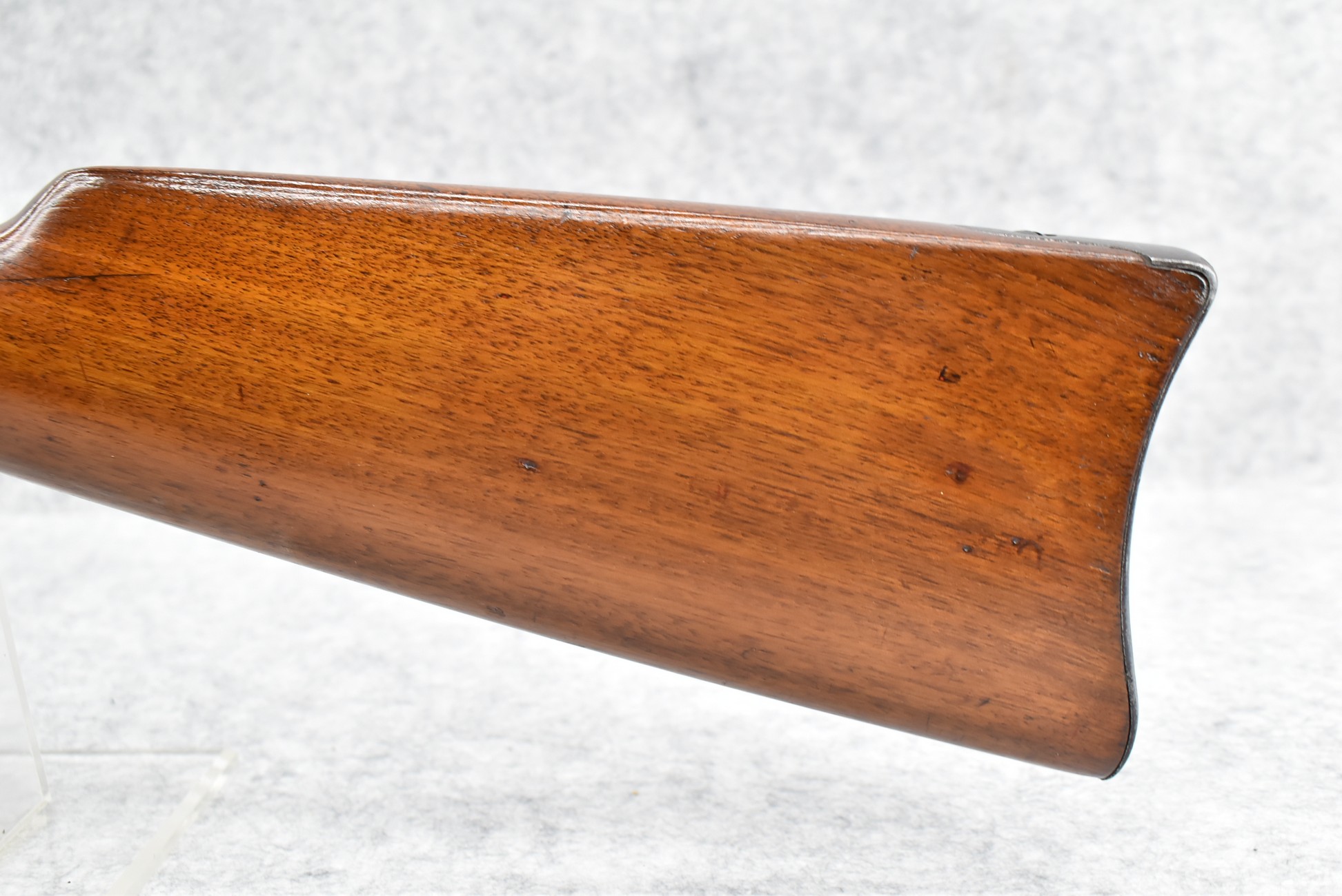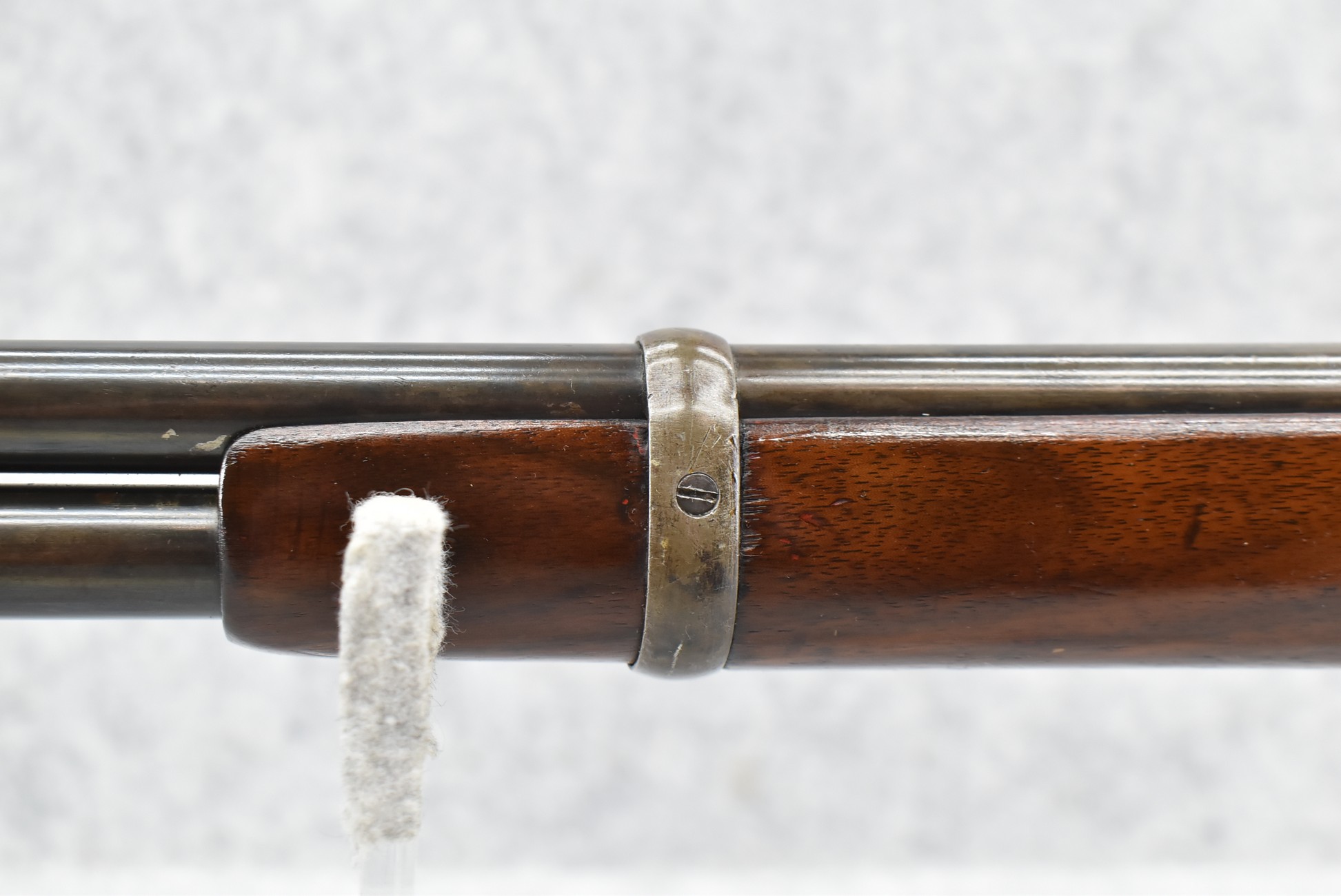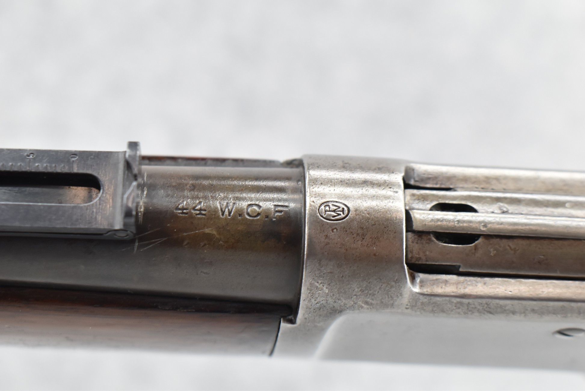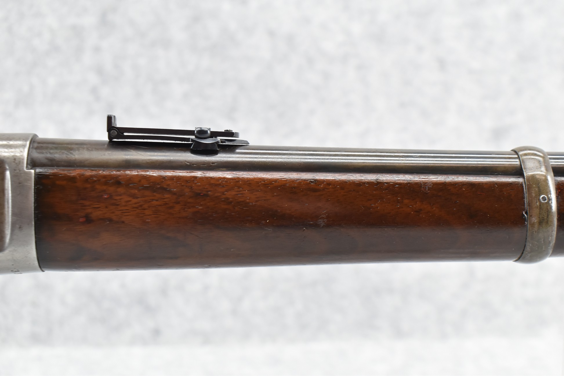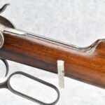 374R. Winchester – Mod. 1892 Saddle Ring Carbine – In the Desirable 44 WCF (44-40) Cal. Lever Action Rifle – w/20” Round Barrel w/Correct Beaded Carbine Front & Carbine Adj. Rear Ladder Sights w/Full Magazine – Gray Finish – w/Straight Grip Wood Stocks w/Factory Metal Carbine Butt Plate – Mfg. 1906