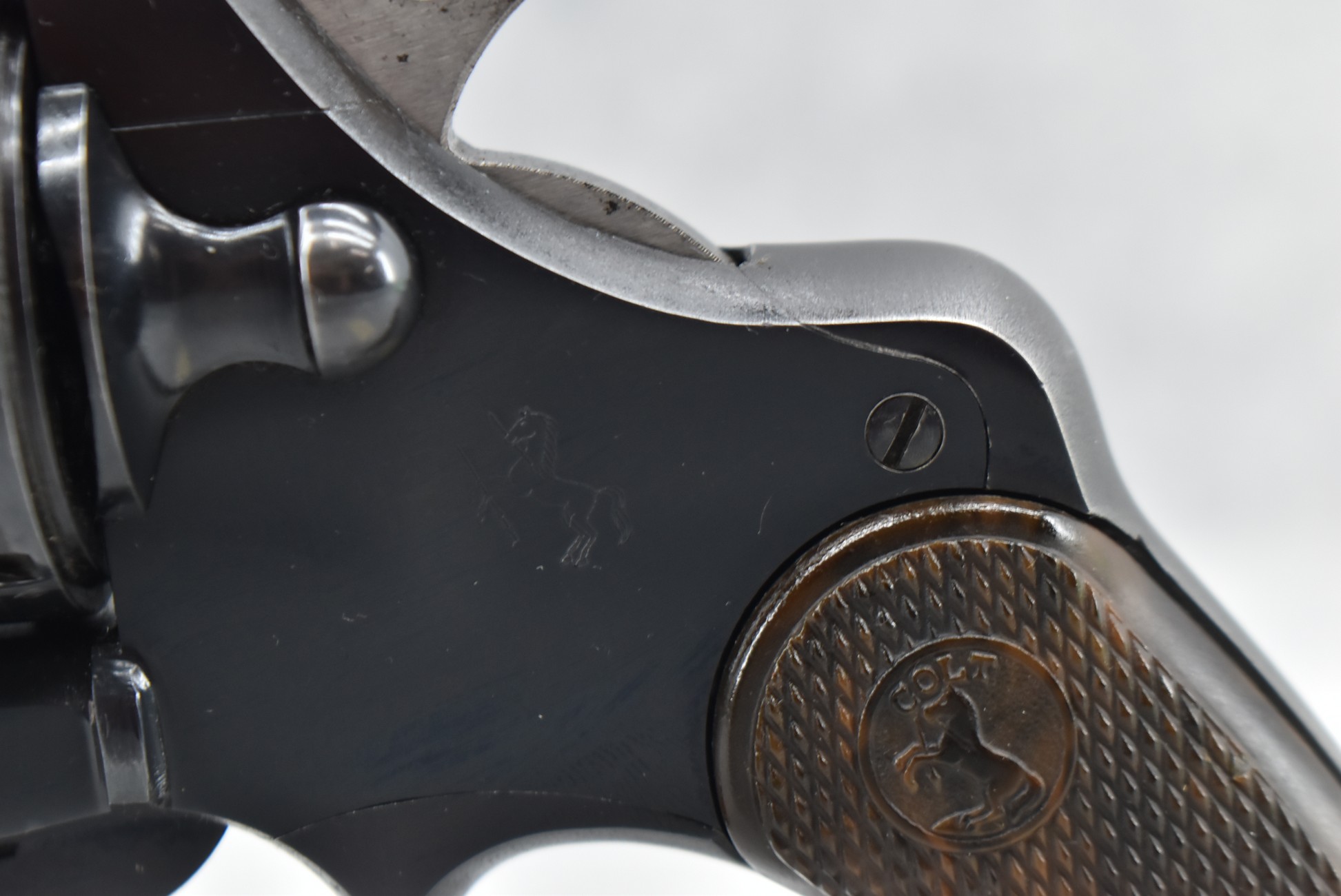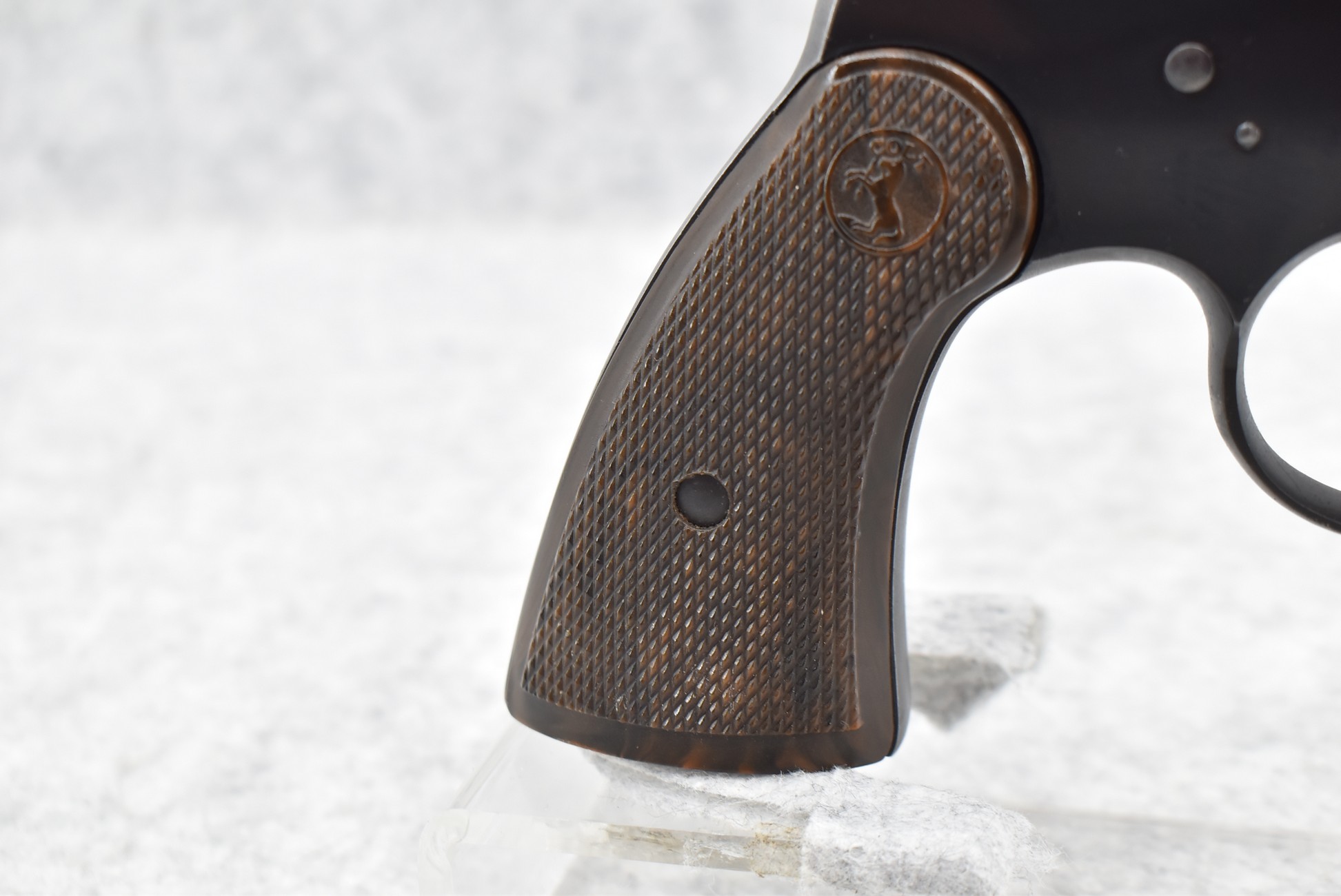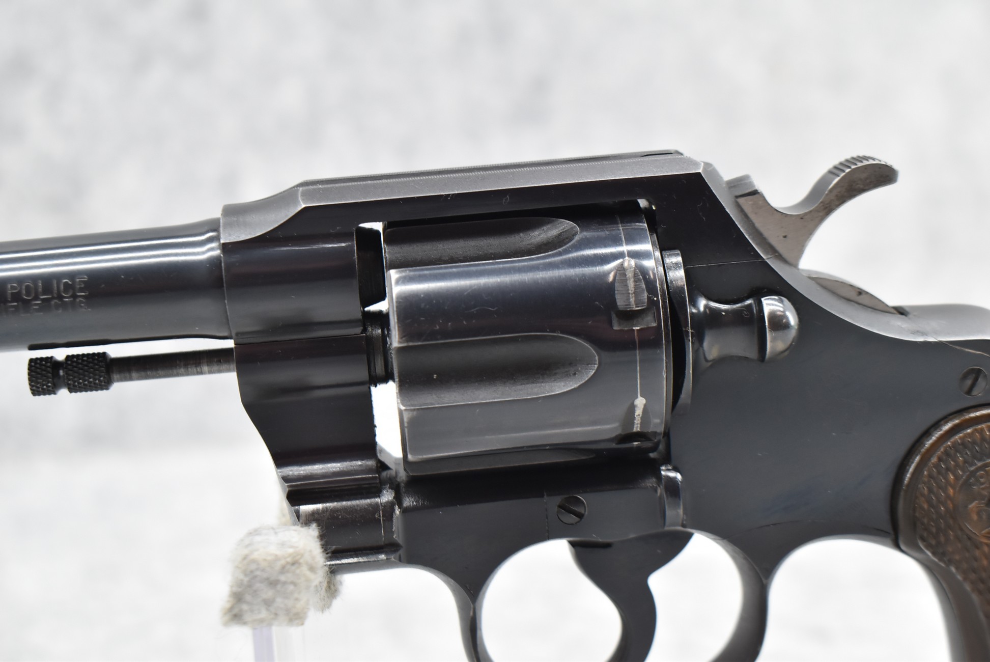 375R. Colt – Mod. Official Police – 22LR Cal. Double Action Revolver – w/6” Barrel w/Blade Front & Notch Rear Sights – Blued Finish – w/Colt Wood Brown Grips – w/Good Rampant Colt – Mfg. 1951