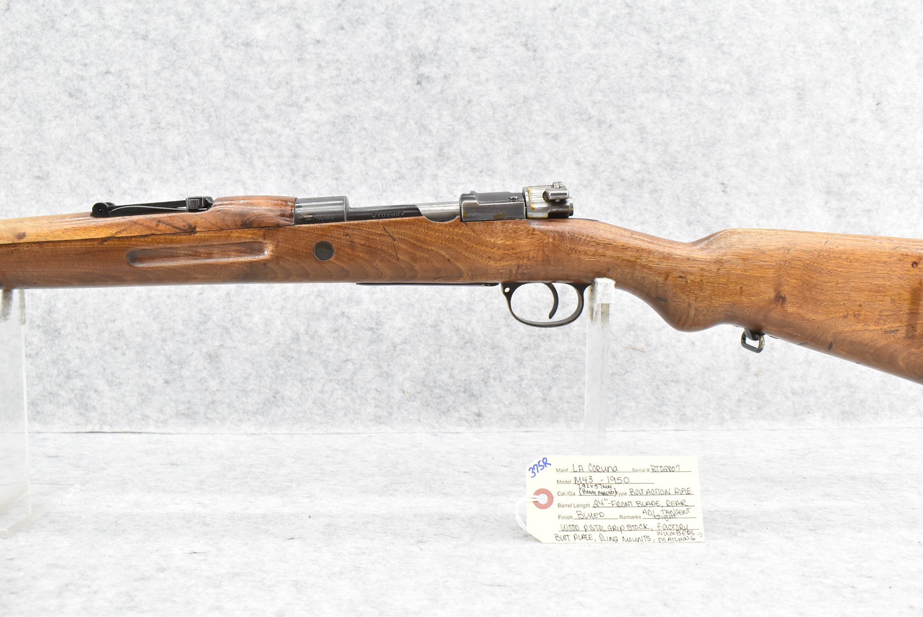 375R. La Coruna – Mod. M43 – 7.92x57mm (8mm Mauser) Cal. Bolt Action Rifle – w/24” Barrel w/Front Blade & Rear Adj. Tangent Sight – Blued Finish – w/Wood Pistol Grip Stock w/Factory Butt Plate – w/Sling Mounts – Numbers Matching on Butt & Floor Plate – Dated 1950 – No Visible Import Marks