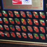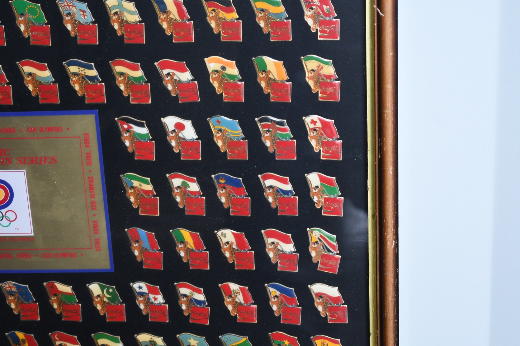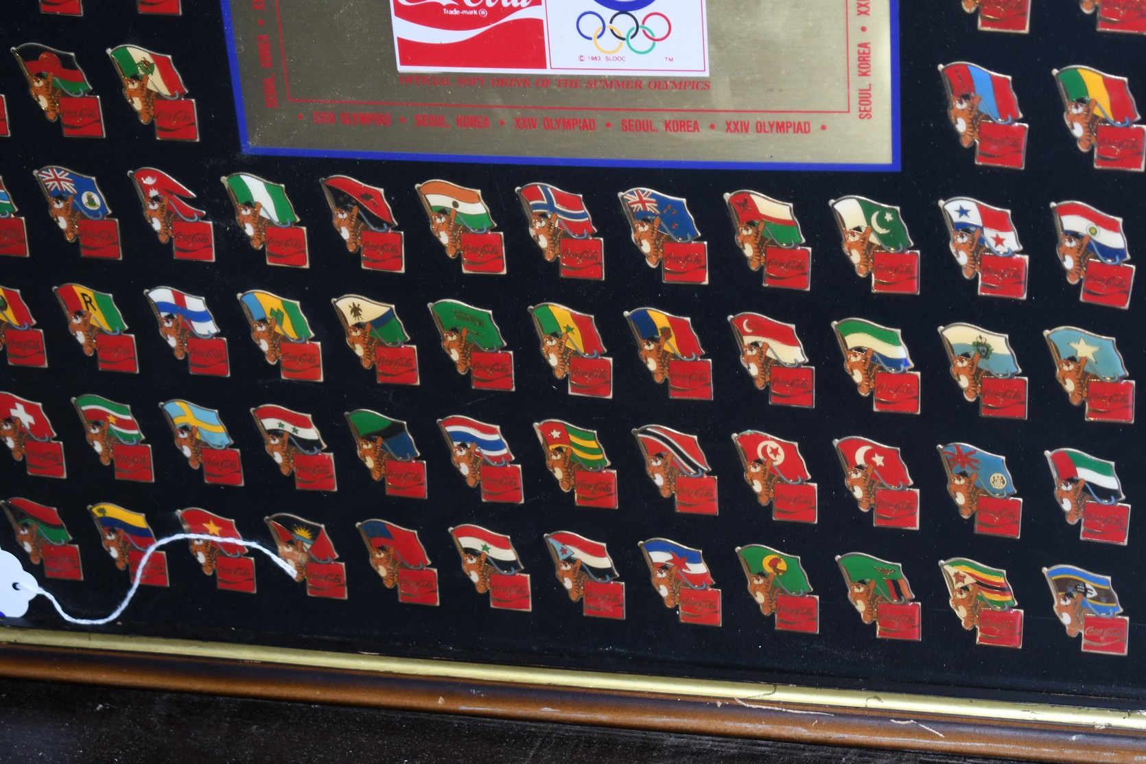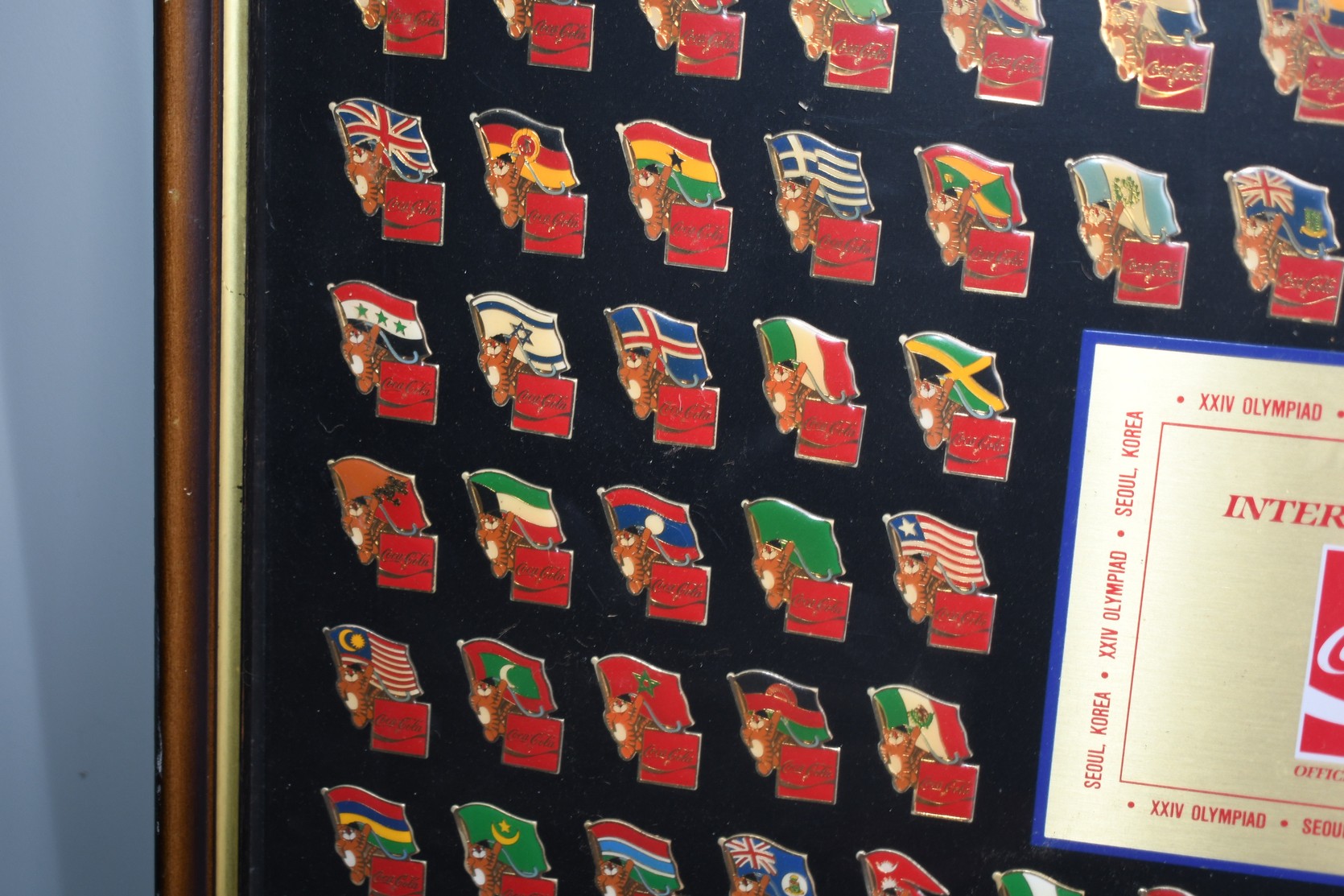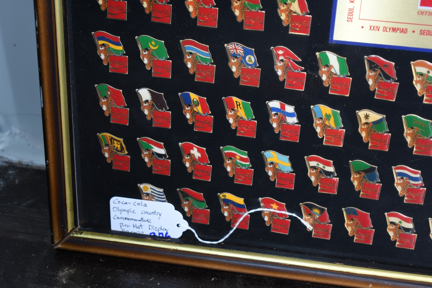 376. Coca Cola 1983 Olympic Country Commemorative Hat Pin Display – 26” x 22”