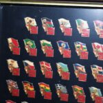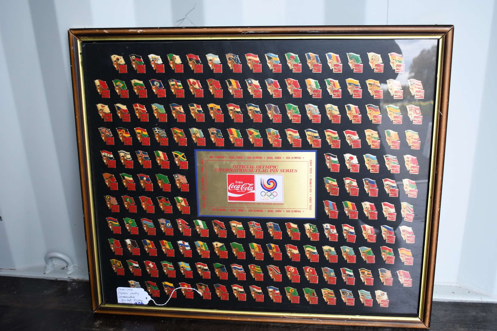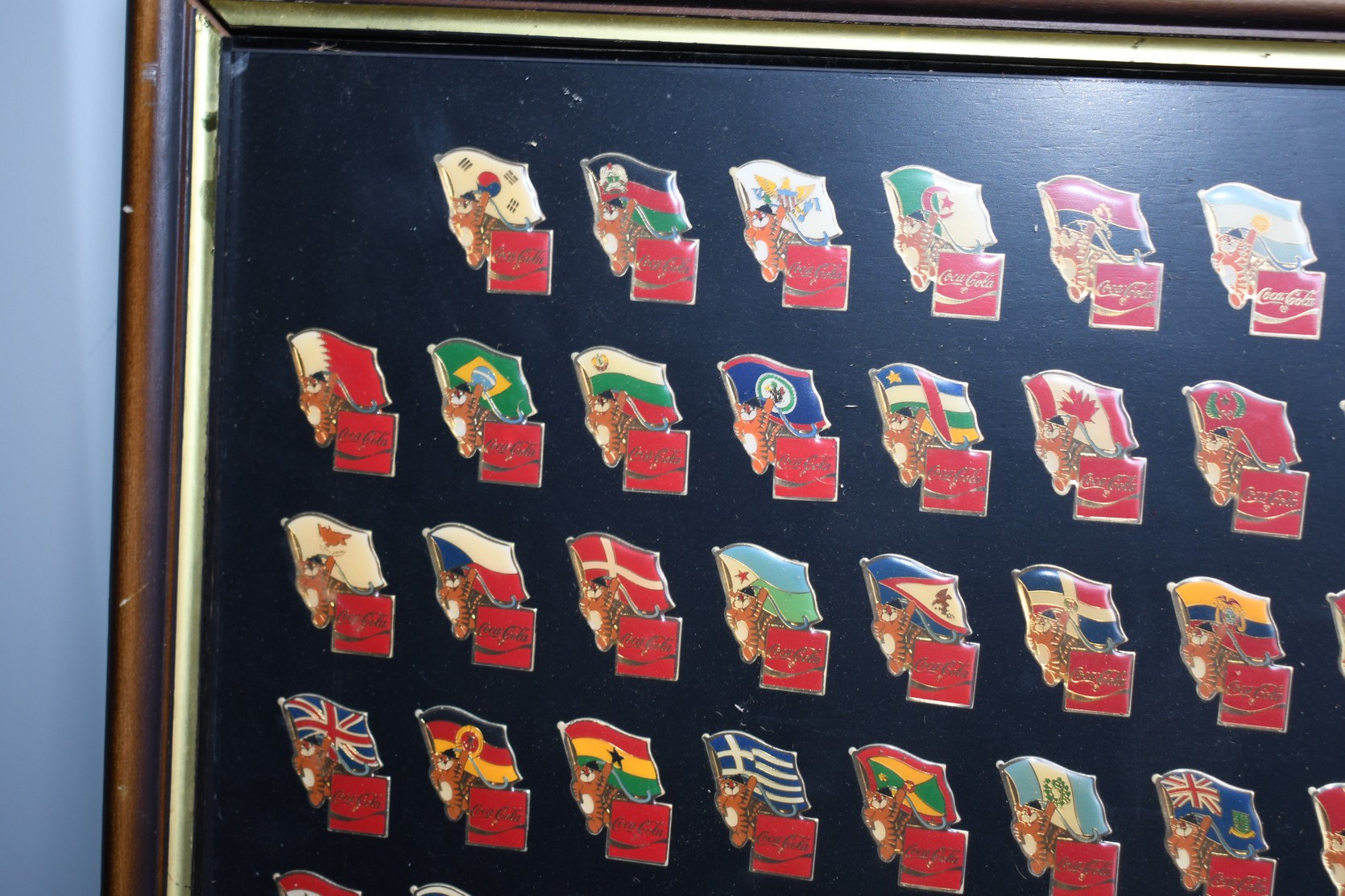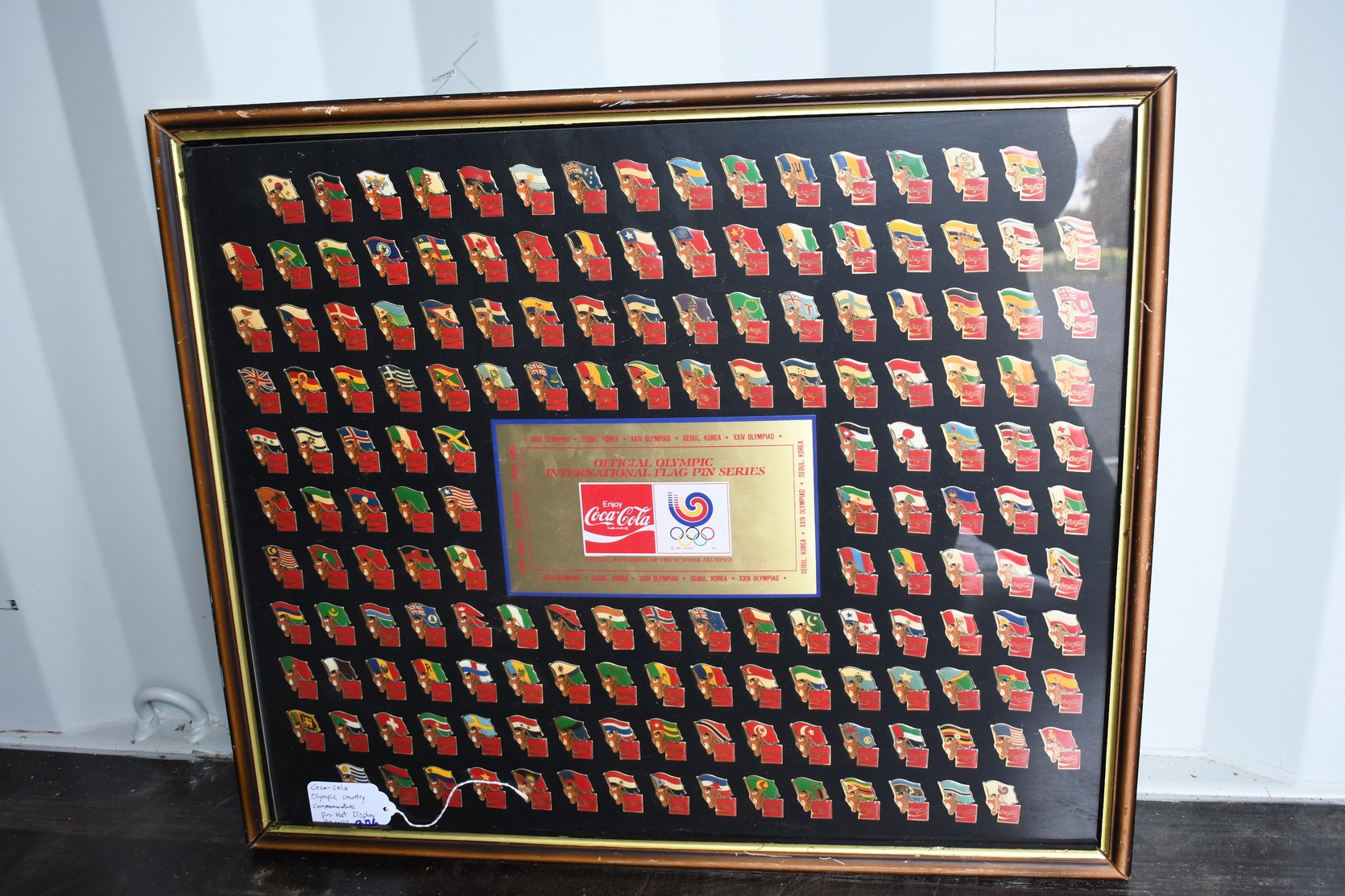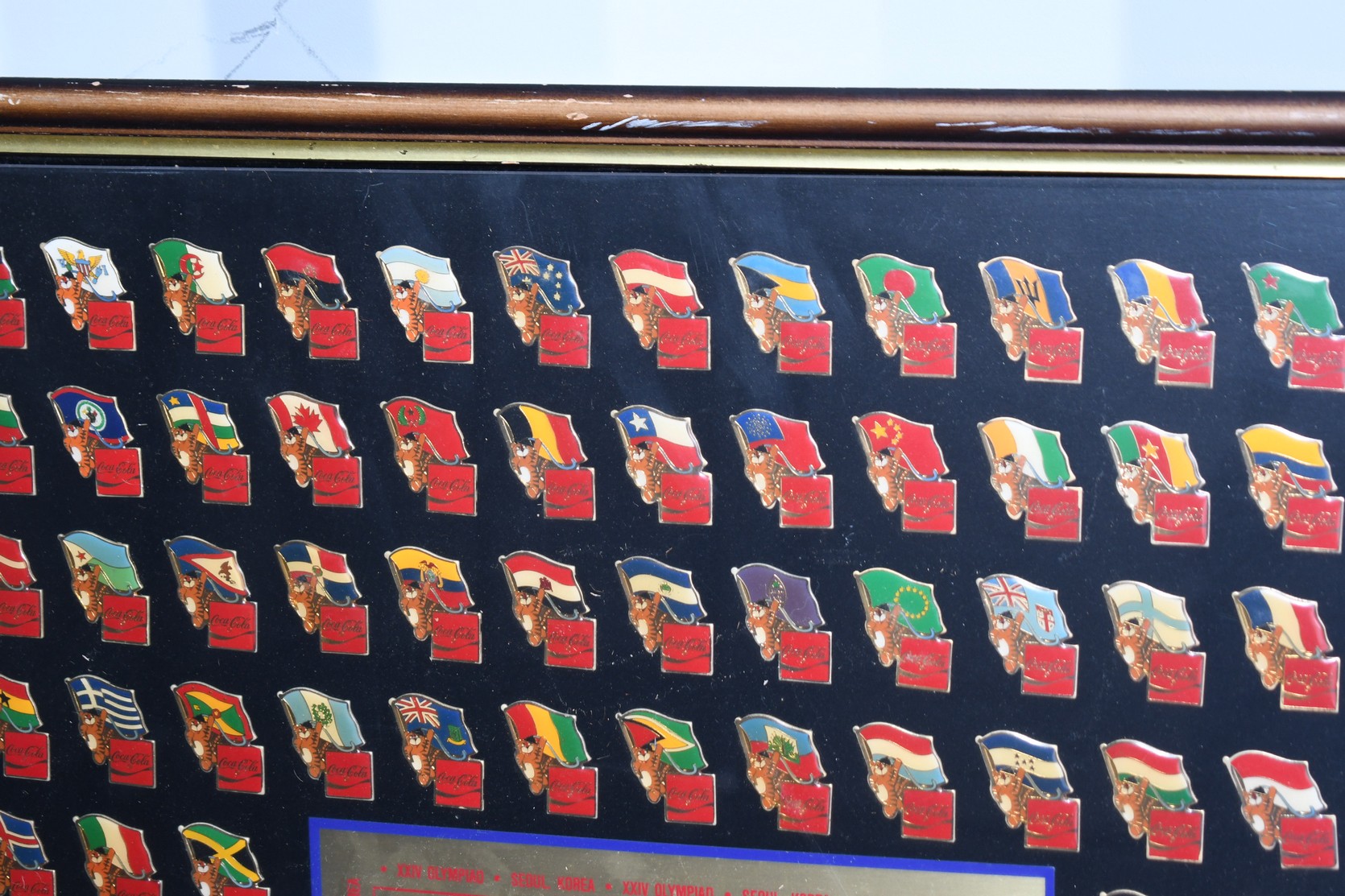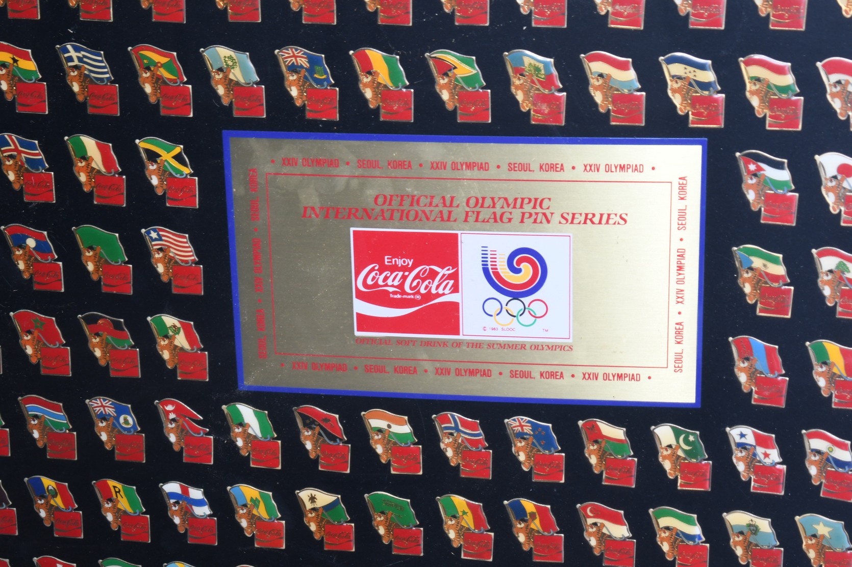 376. Coca Cola 1983 Olympic Country Commemorative Hat Pin Display – 26” x 22”