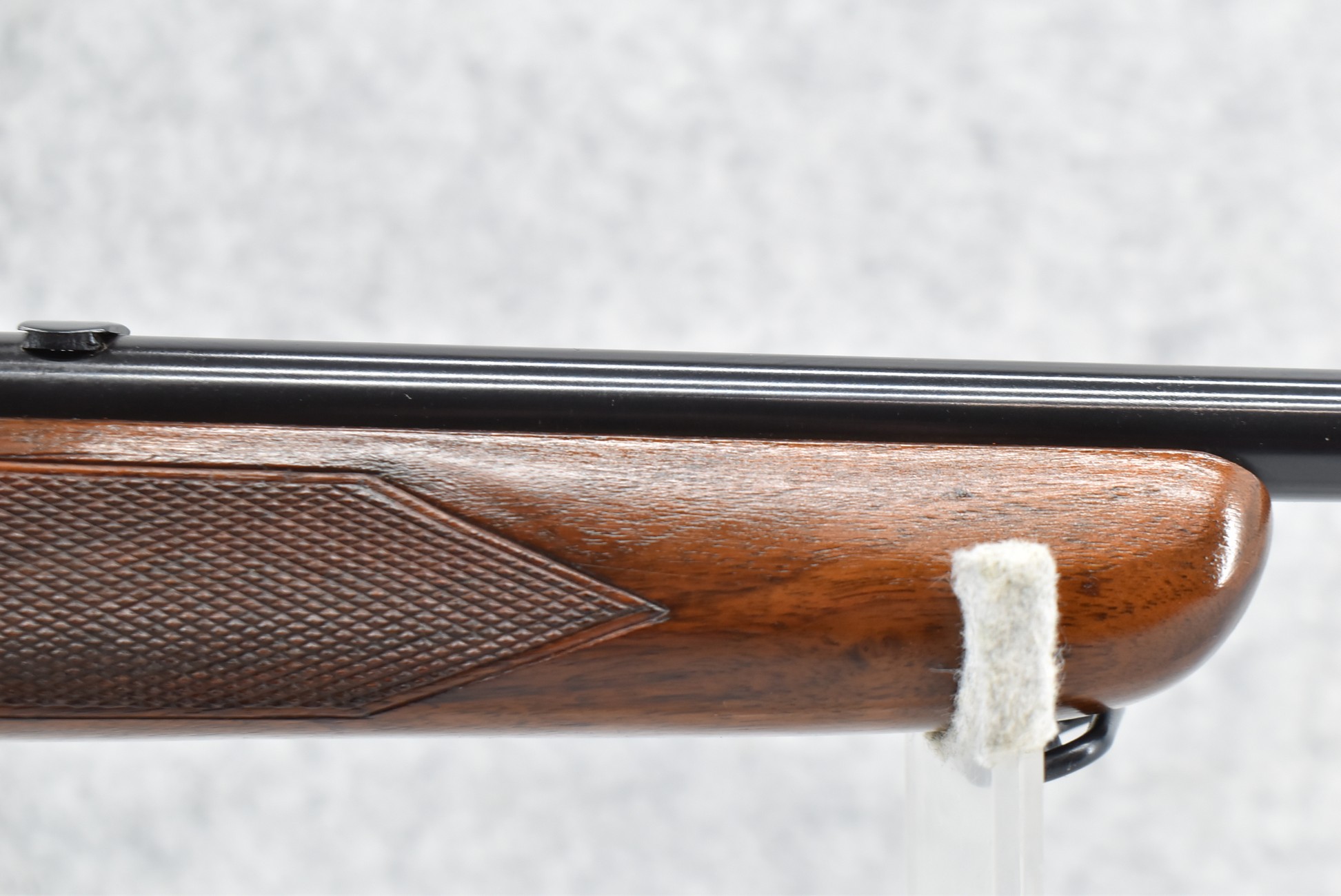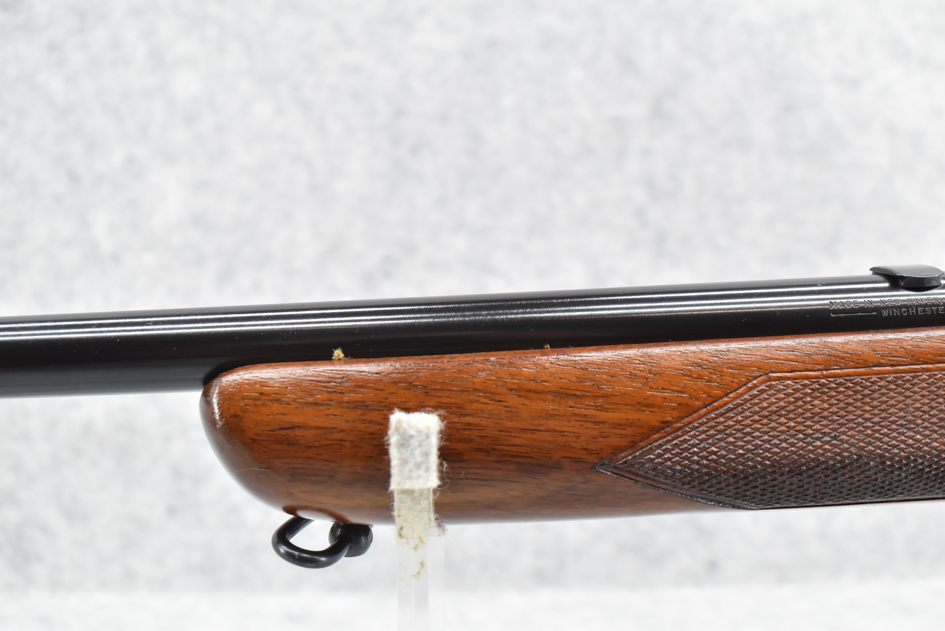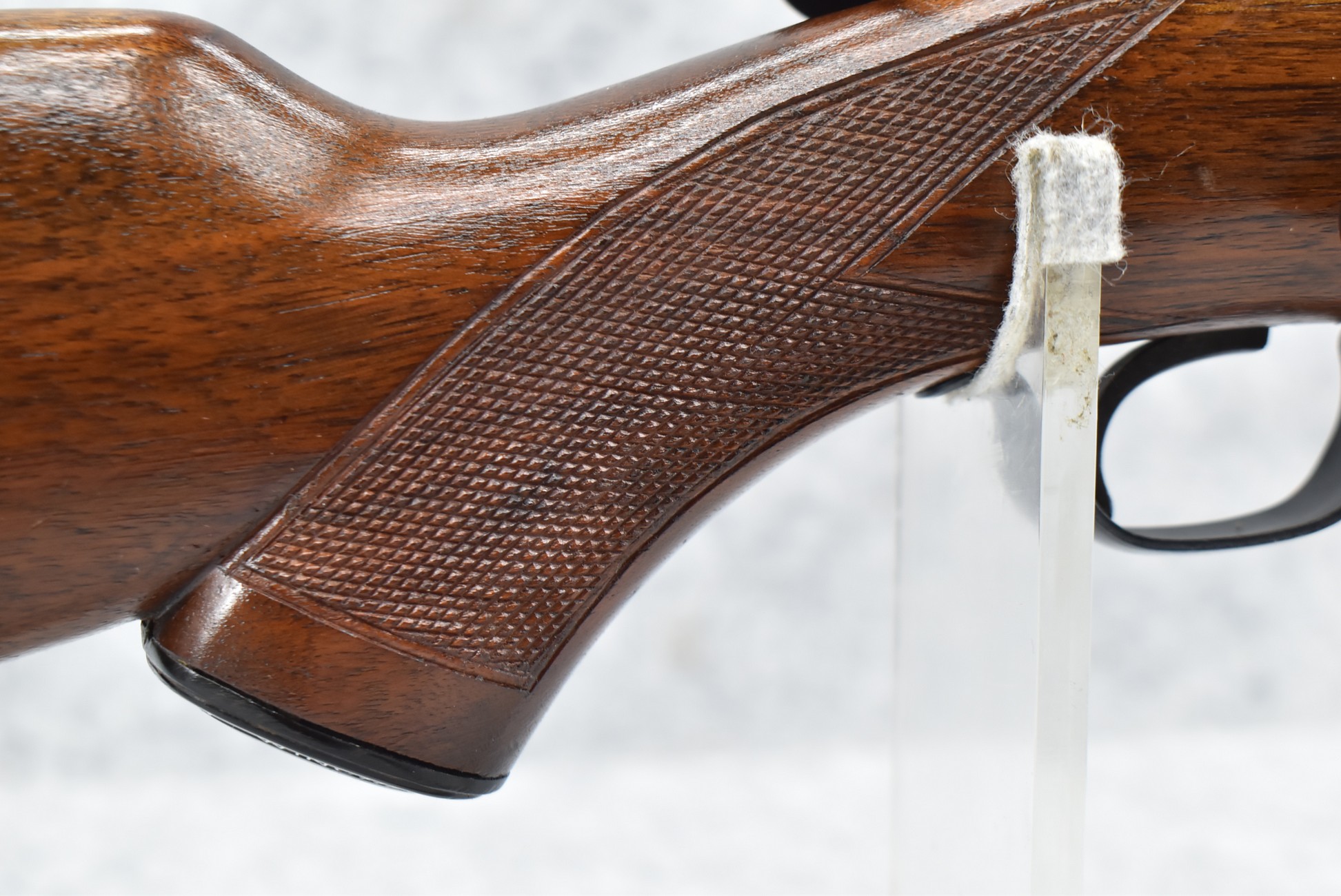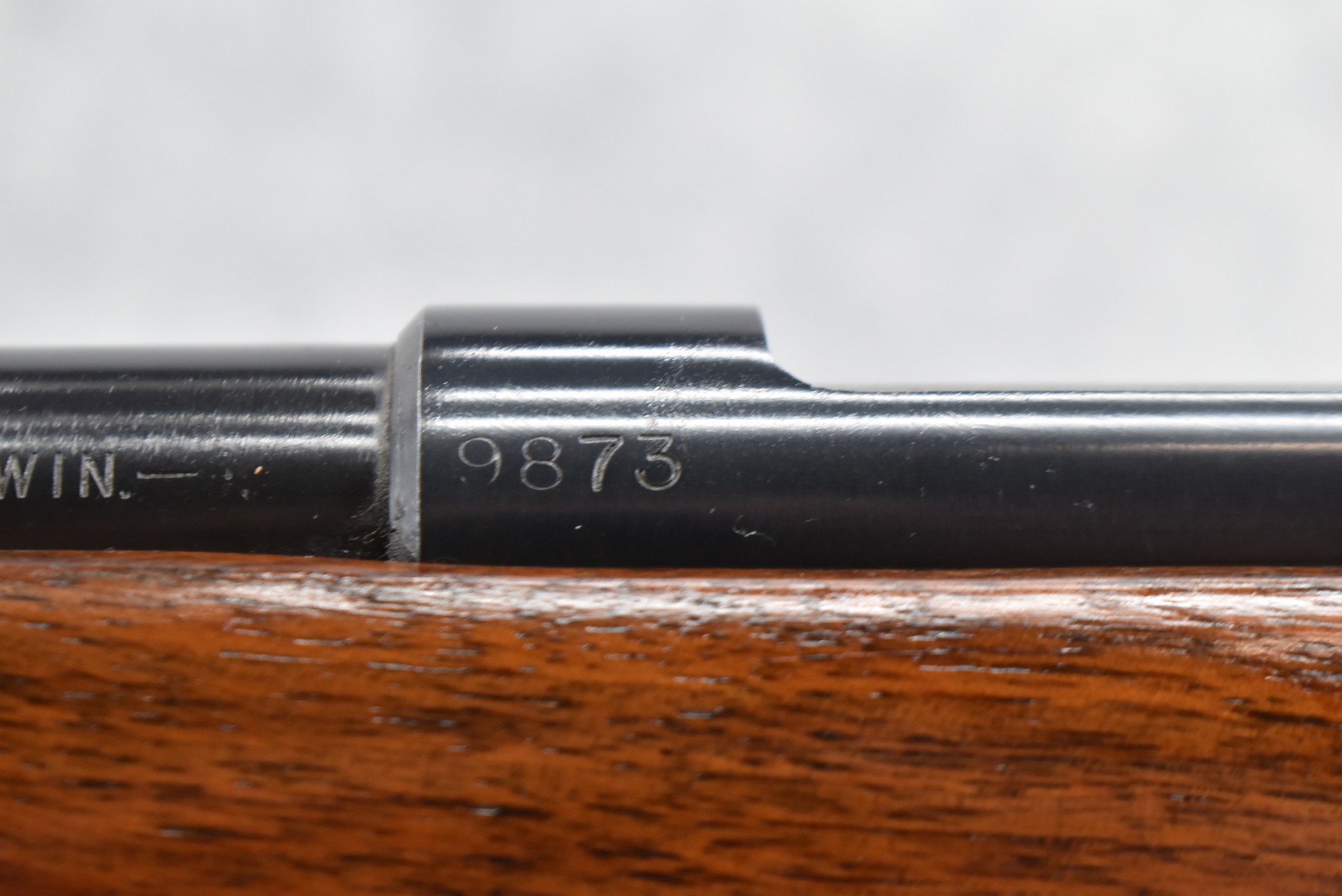 376R. Winchester – Mod. 43 Deluxe – In the Scarce 32-20 Win. Cal. Bolt Action Rifle – w/24” Barrel w/Hooded Front Sight & (Rear Dovetail Blank) Lyman 57A Rear Receiver Adj. Peep Sight – Blued Finish – w/Checkered Capped Pistol Grip Deluxe Wood Stock w/Factory Metal Butt Plate – w/Factory Magazine – w/Factory Sling Swivels – Mfg. 1949
