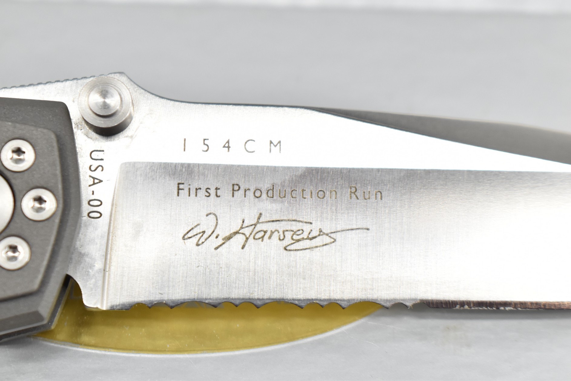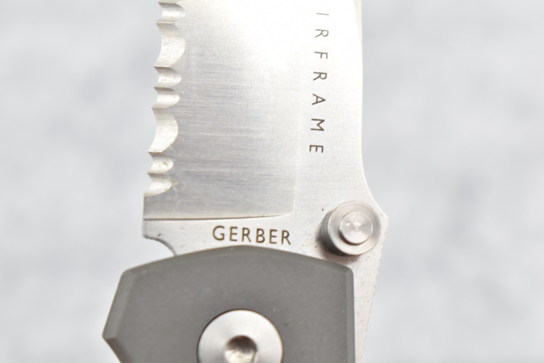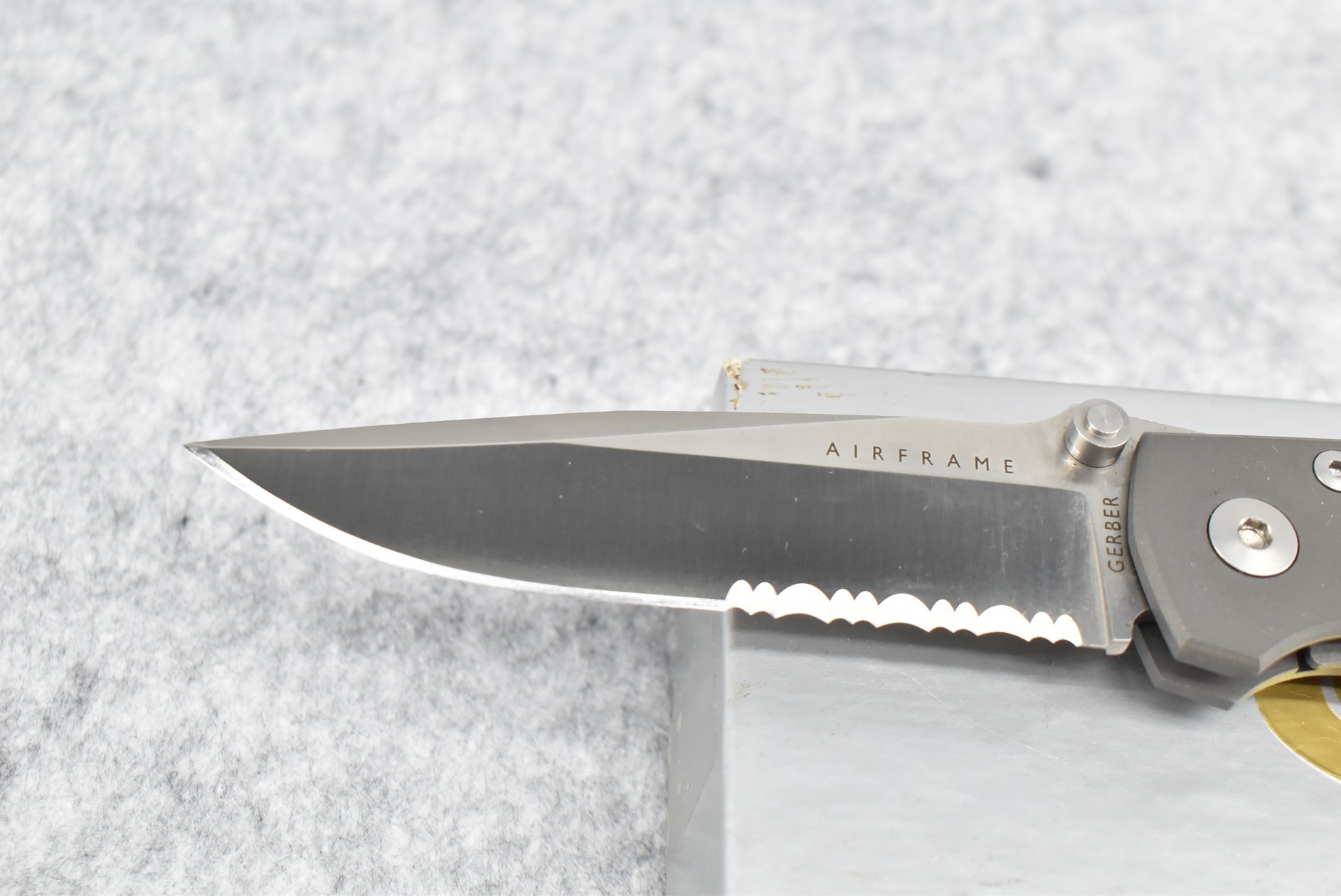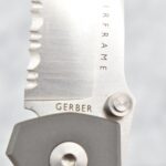 378. Gerber – Airframe W. Harsey “First Production Run” w/3.5” Drop Point Blade – Overall Length 8 7/8” – w/All Titanium Medal Handle – w/Box