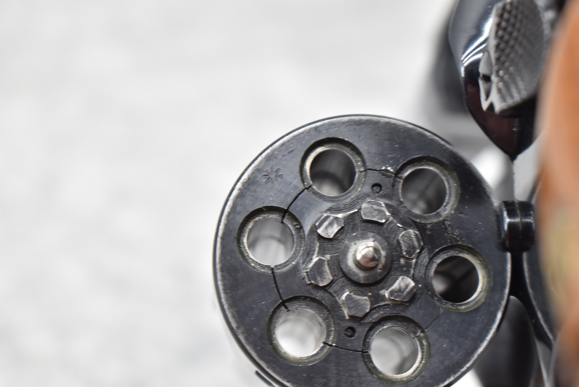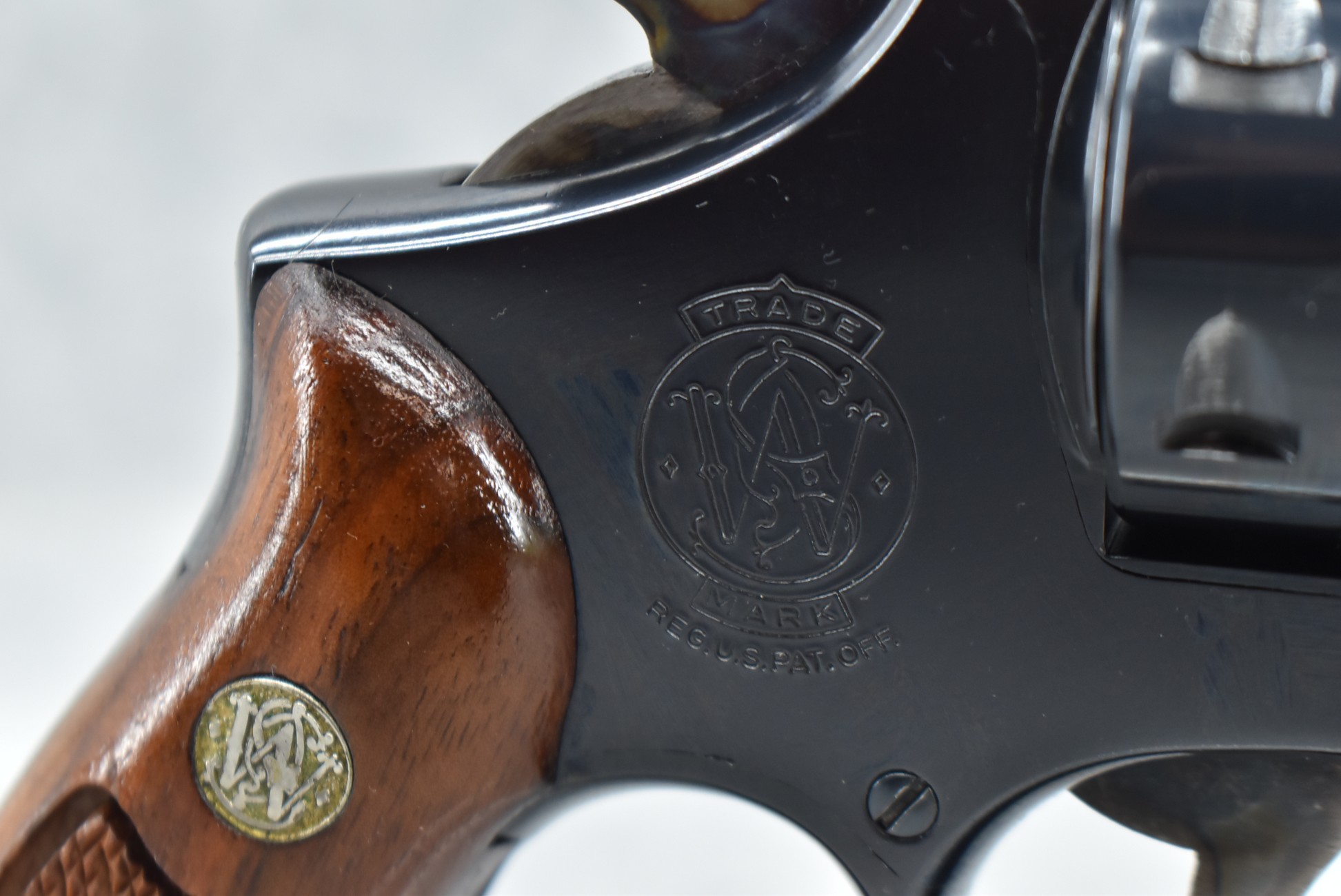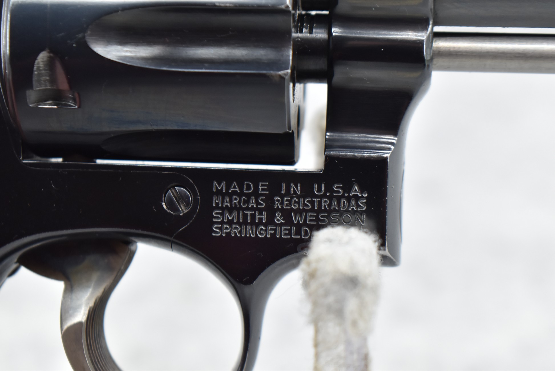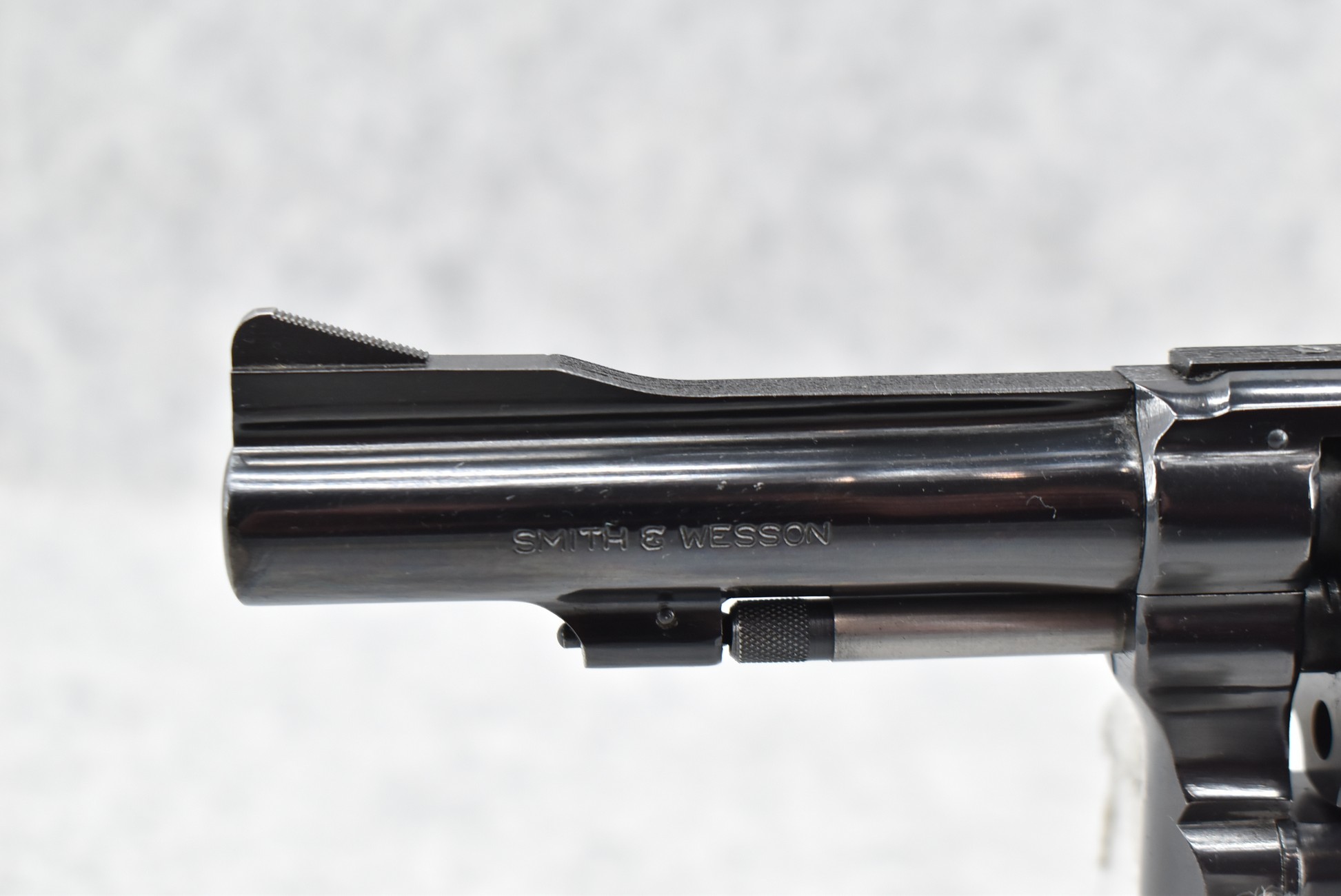 381R. Smith & Wesson – Mod. 18-3 K22 Combat Masterpiece – 22LR Cal. Double Action Revolver – w/4” Ribbed Barrel w/Ramp Blade Front & White Outlined Adj. Rear Notch Sights – Blued Finish – w/Target Hammer & Target Trigger – 2 T’s – w/Original 2pc. Factory Box, Cleaning Tools, Screwdriver & Pamphlets – Mfg. 1975