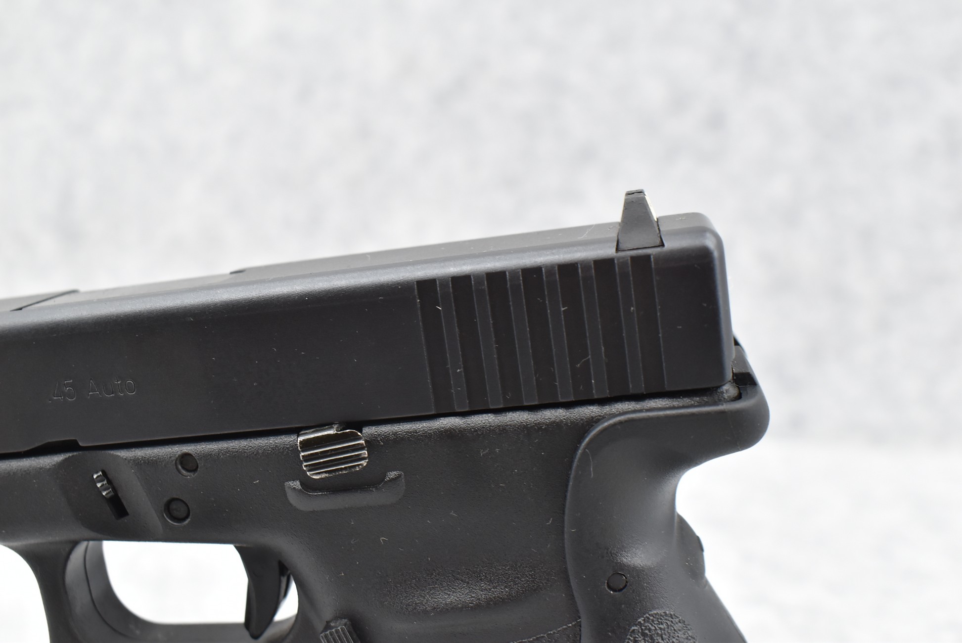 382R. Glock – Mod. 30 Sub Compact – 45 Auto Cal. Semi-Auto Pistol – w/3.5” Barrel w/White Dot Front & Rear White Outline Notch Sights – Matte Blued Finish – w/Factory Grooved Black Polymer Grip & Crimson Trace Grip Red Laser – w/Factory Hard Case – Three 10Rd Mags – w/Manual