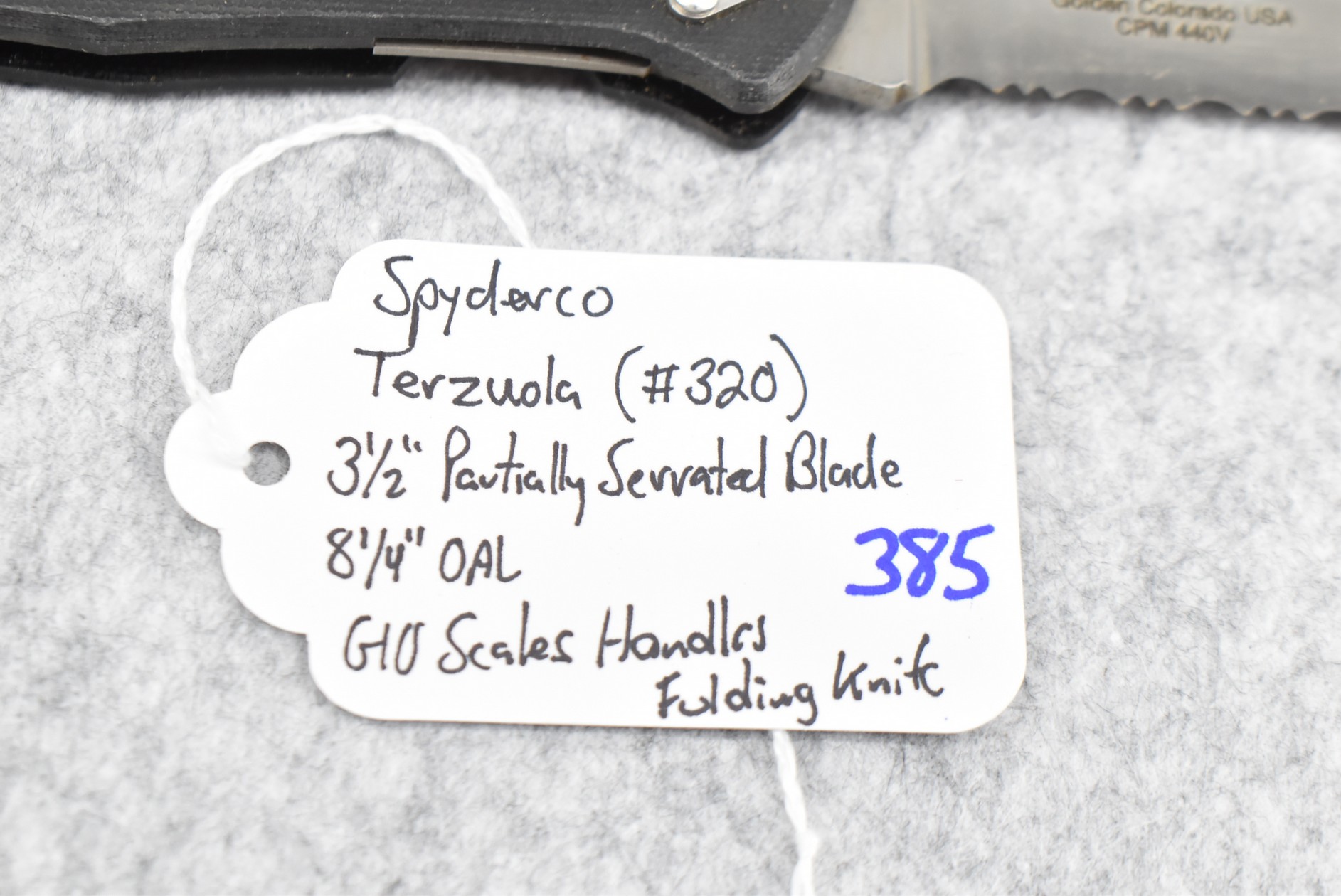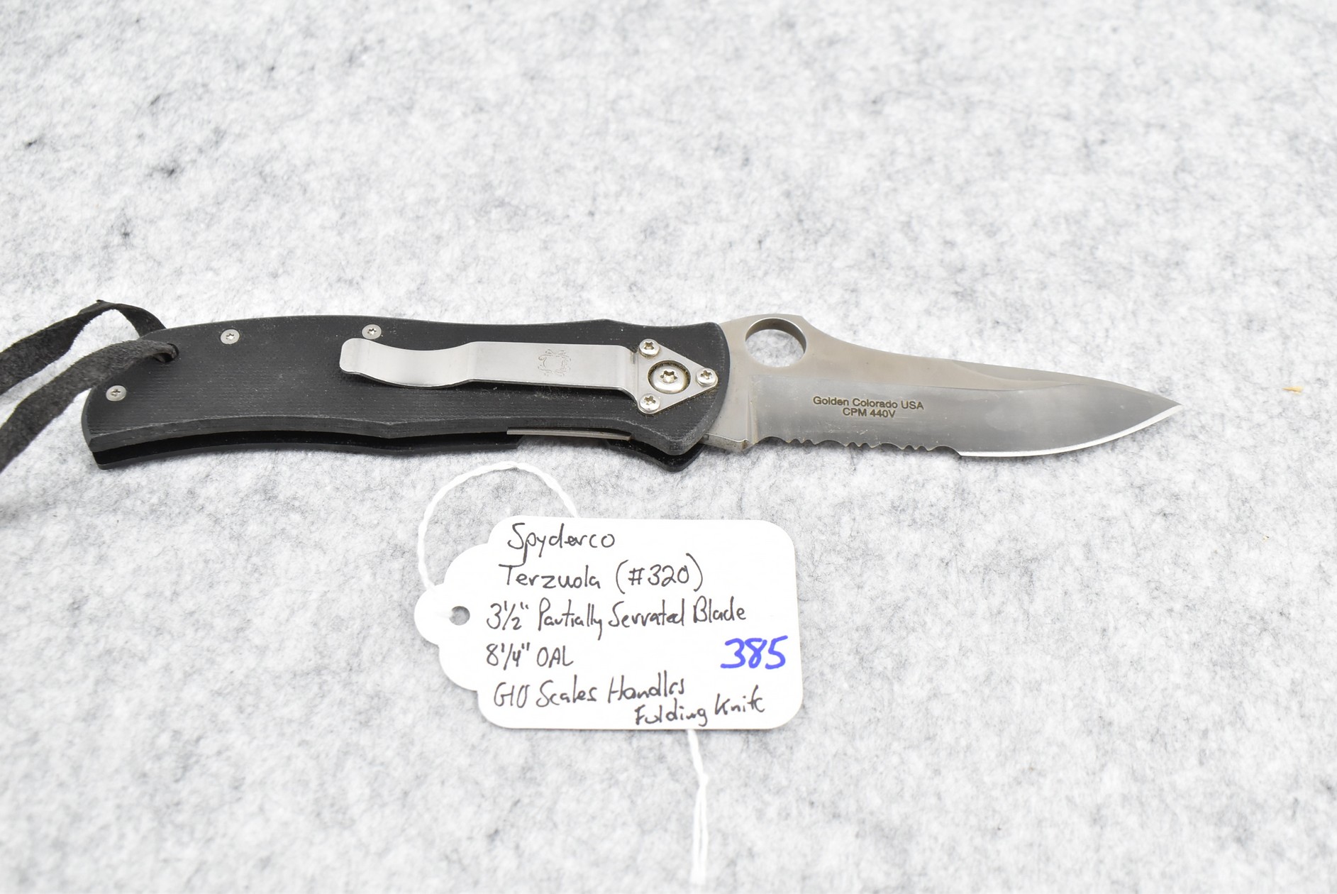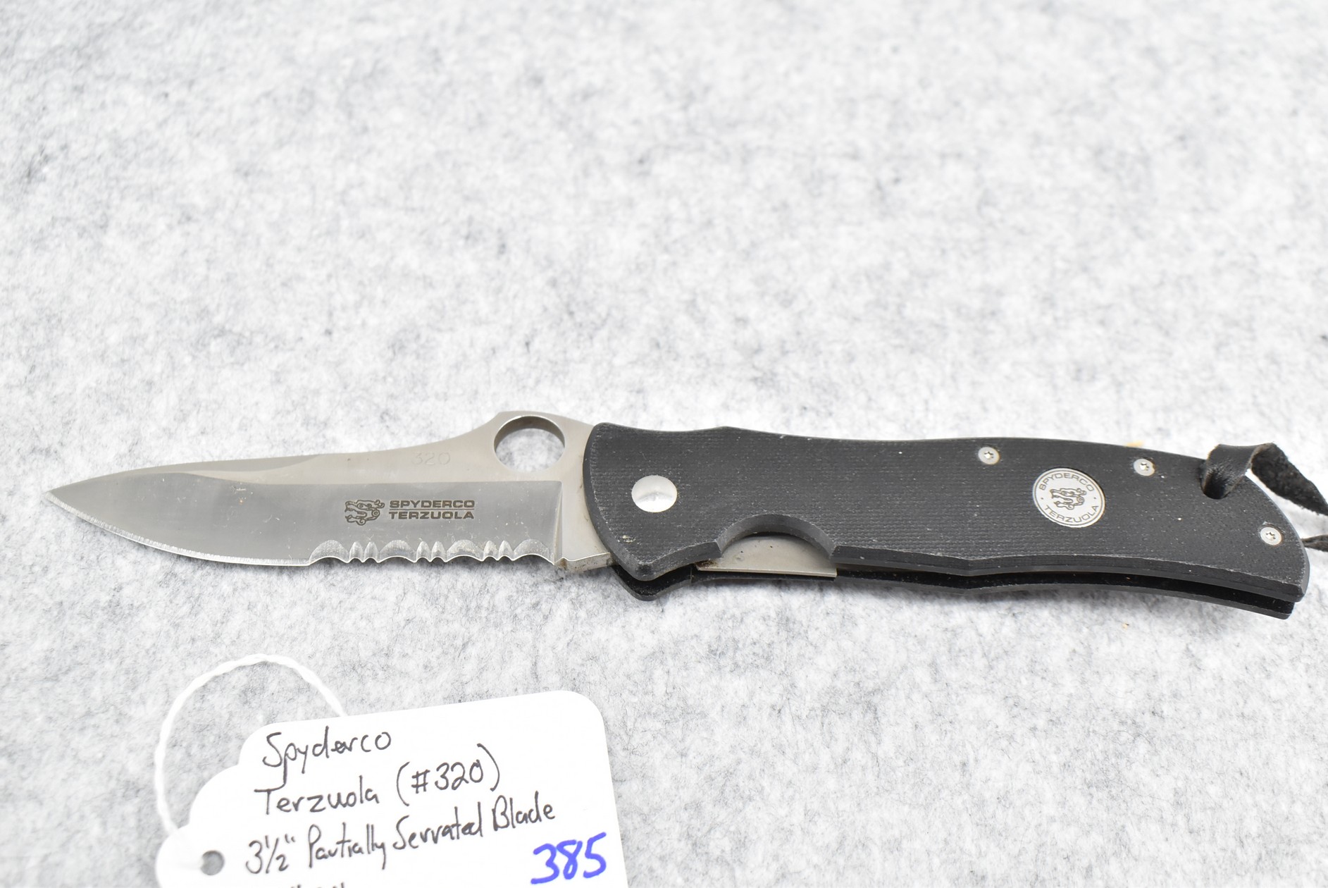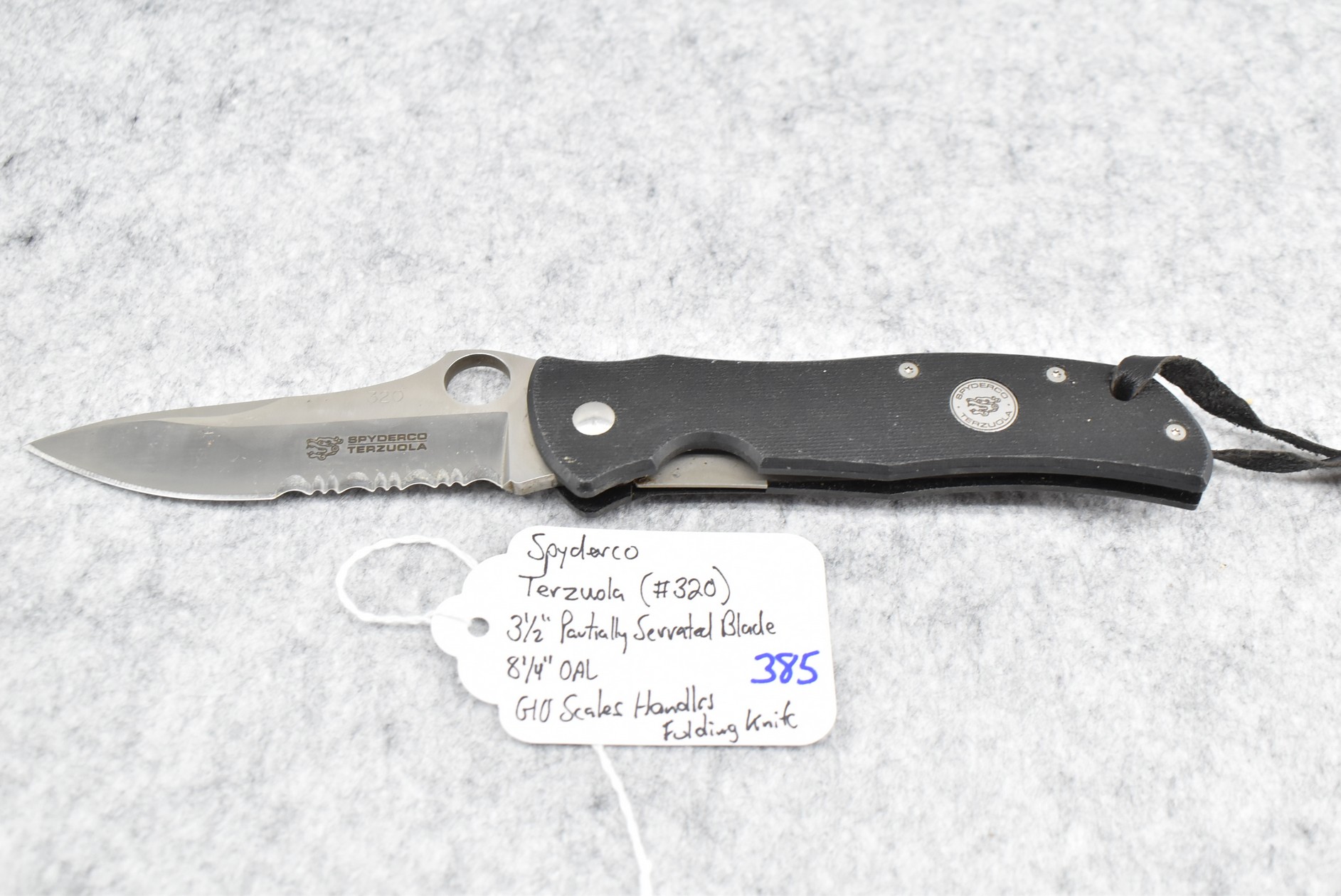 385. Spyderco – Terzuola (#320) Folding Knife – w/3 ½” Partially Serrated Blade – 8 ¼” Overall Length – w/G10 Scales Handles