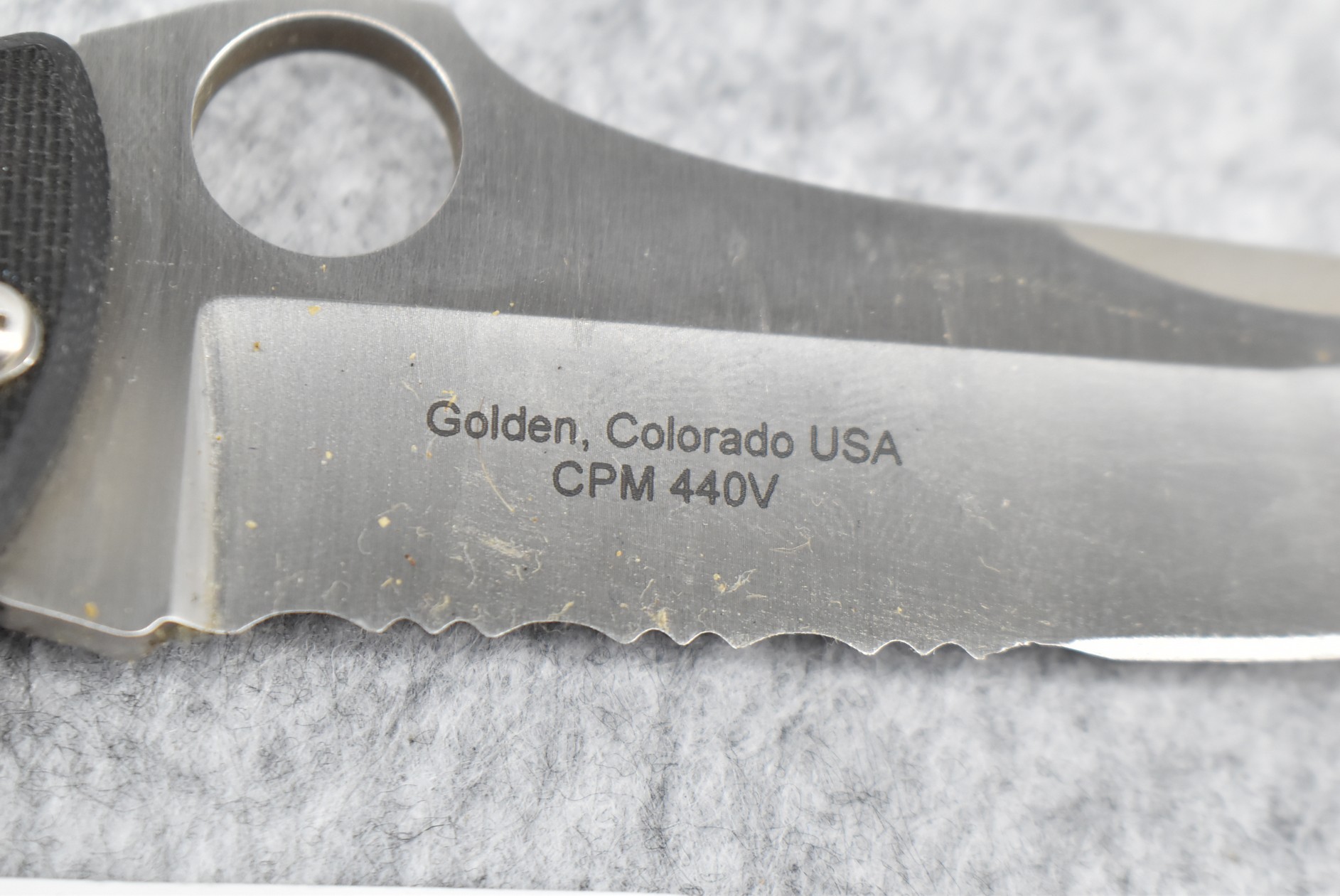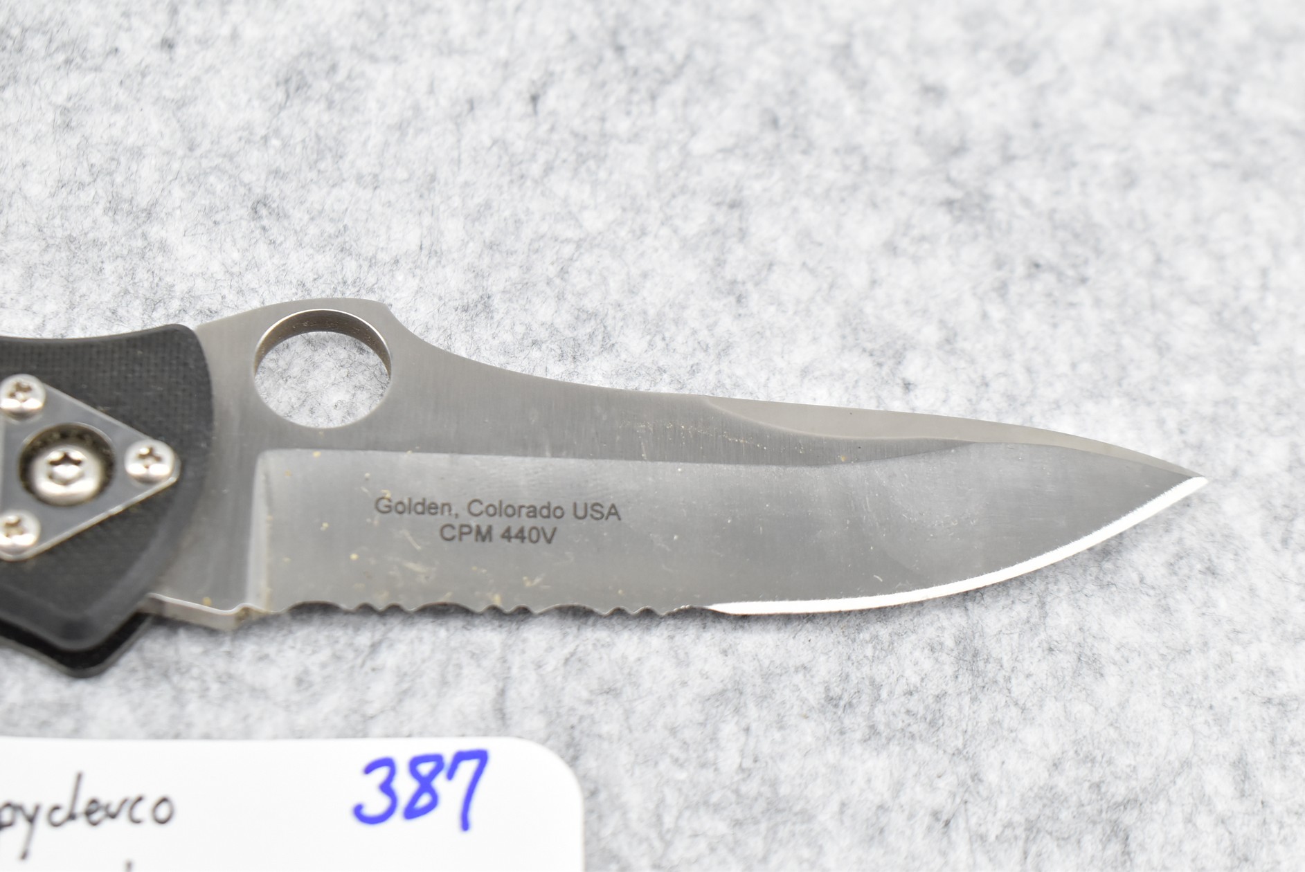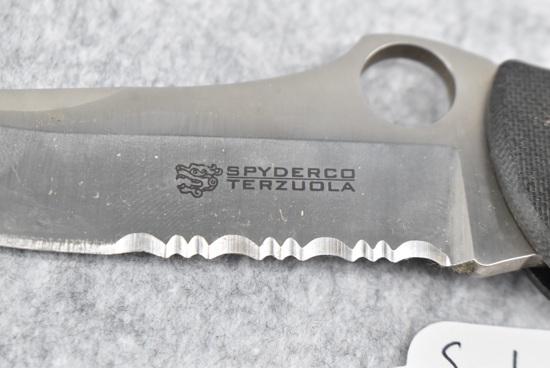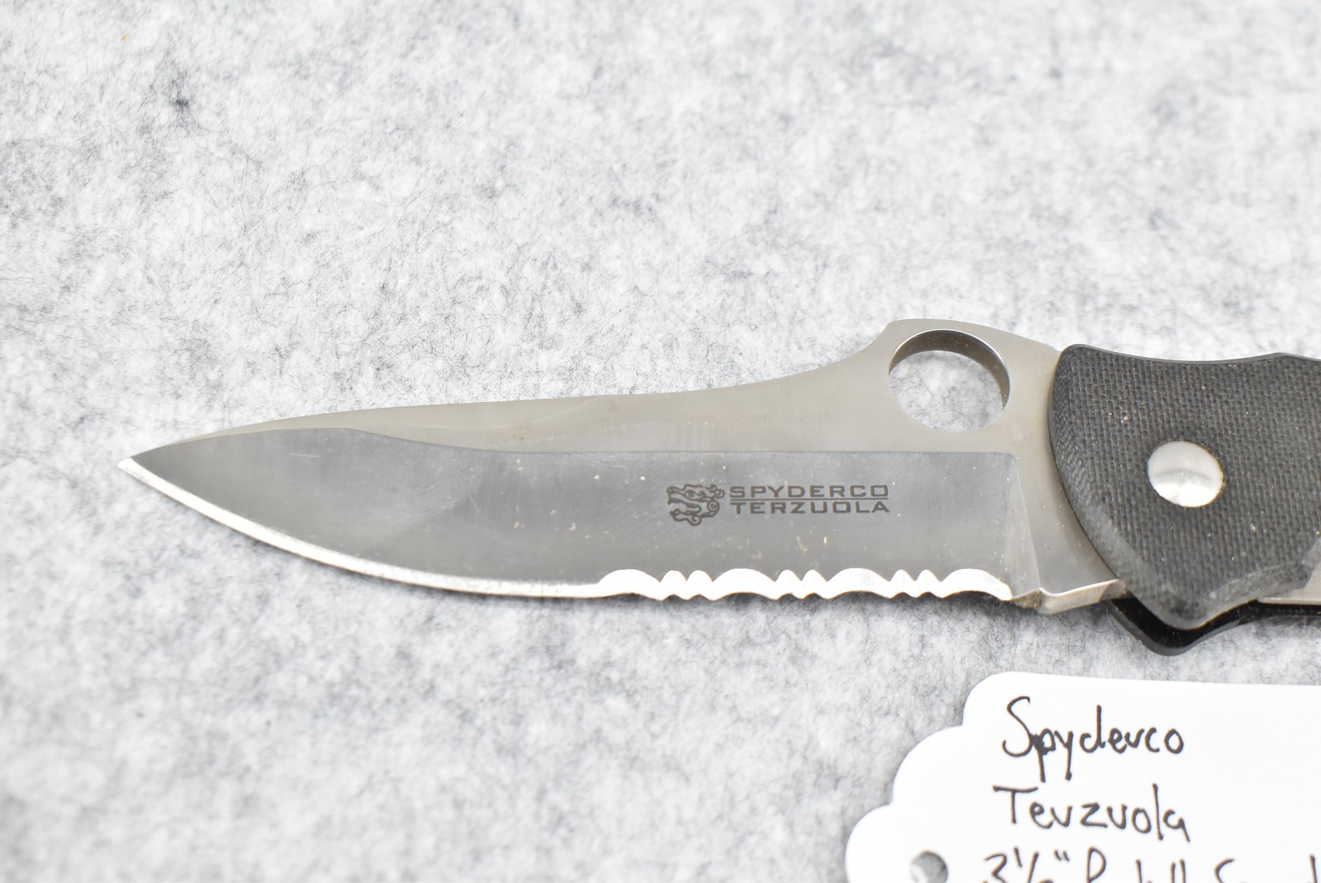 387. Spyderco – Terzuola Folding Knife – w/3 ½” Partially Serrated Blade – 8 ¼” Overall Length – w/G10 Scales Handles