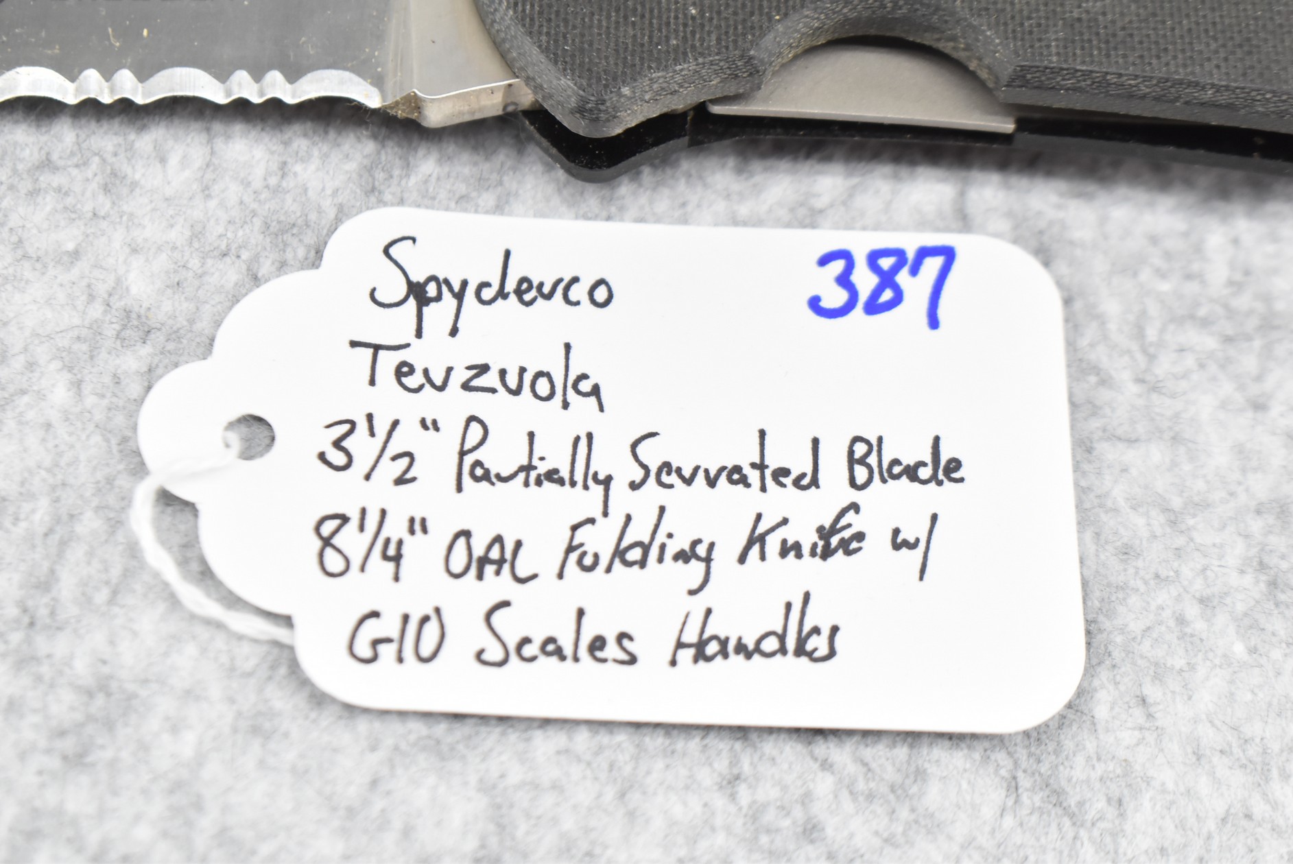 387.     Spyderco – Terzuola Folding Knife – w/3 ½” Partially Serrated Blade – 8 ¼” Overall Length – w/G10 Scales Handles