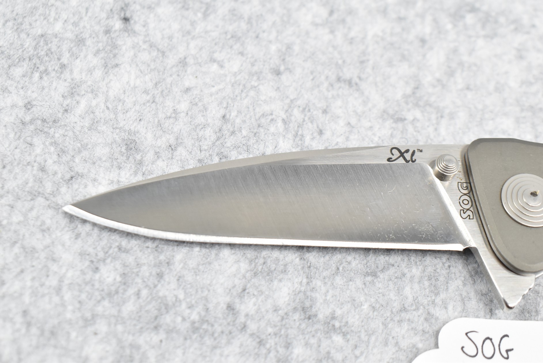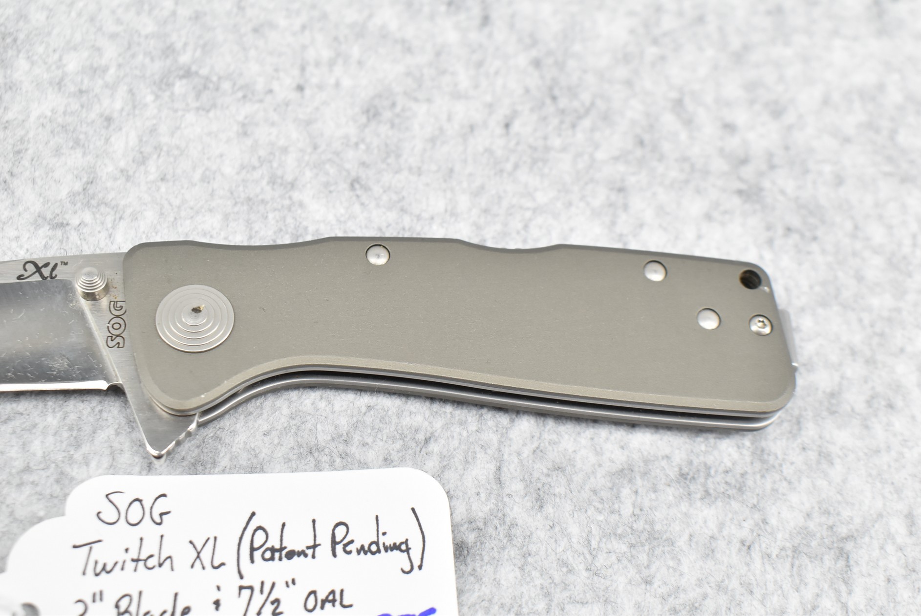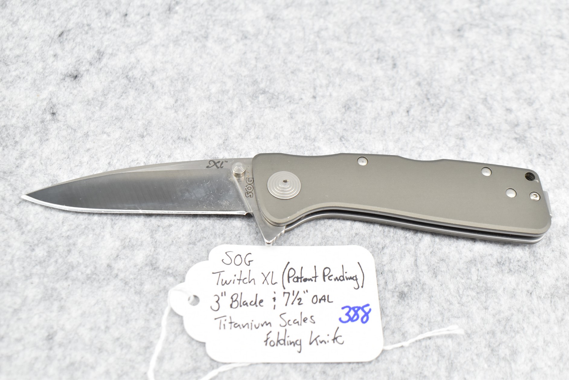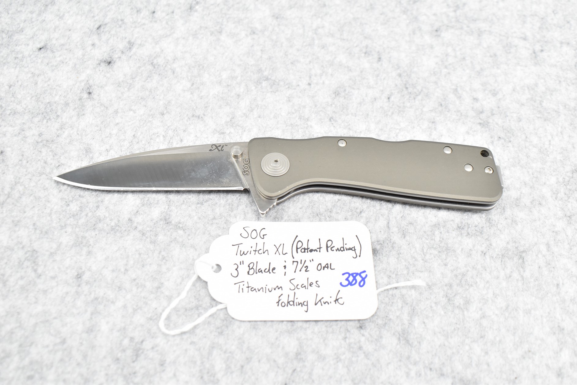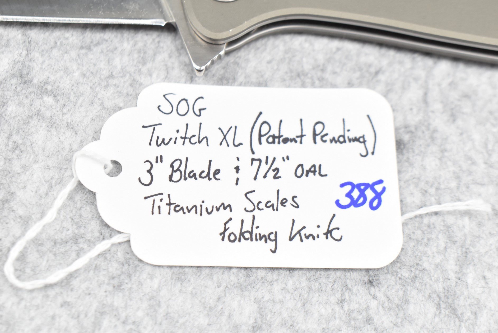 388. SOG – Twitch XL (Patent Pending) Titanium Scales Folding Knife – w/3” Blade – 7 ½” Overall Length