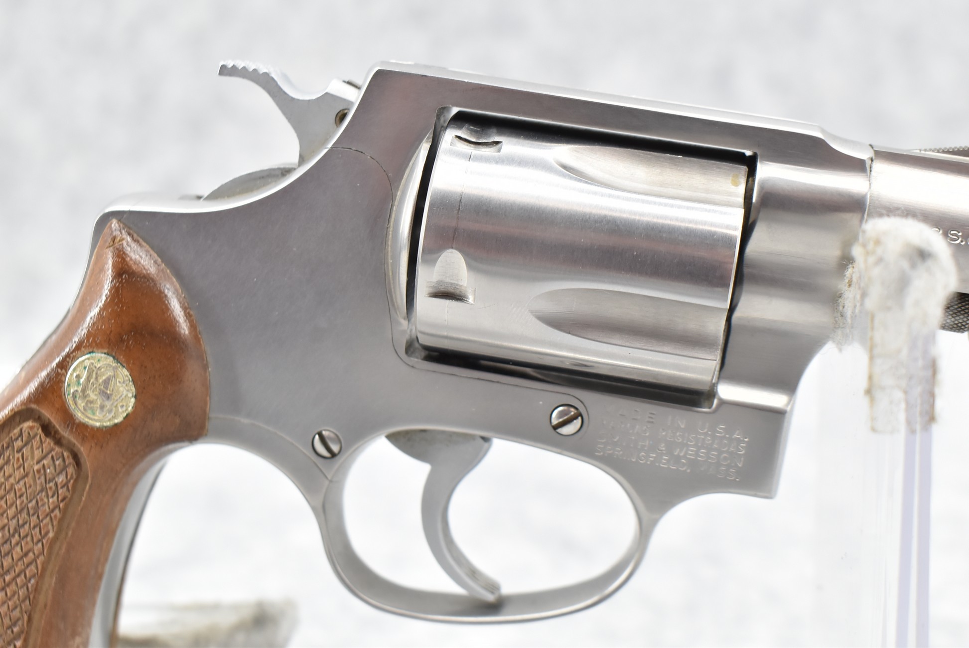 388R. Smith & Wesson – Mod. 60 (.38 Chiefs Special Stainless) – 38 S&W Spl. Cal. Double Action Revolver – w/1.75” Barrel w/Front Blade & Rear Grooved Sights – Stainless Finish – w/Factory Checkered Wood Grips w/S&W Medallion – Mfg. 1982