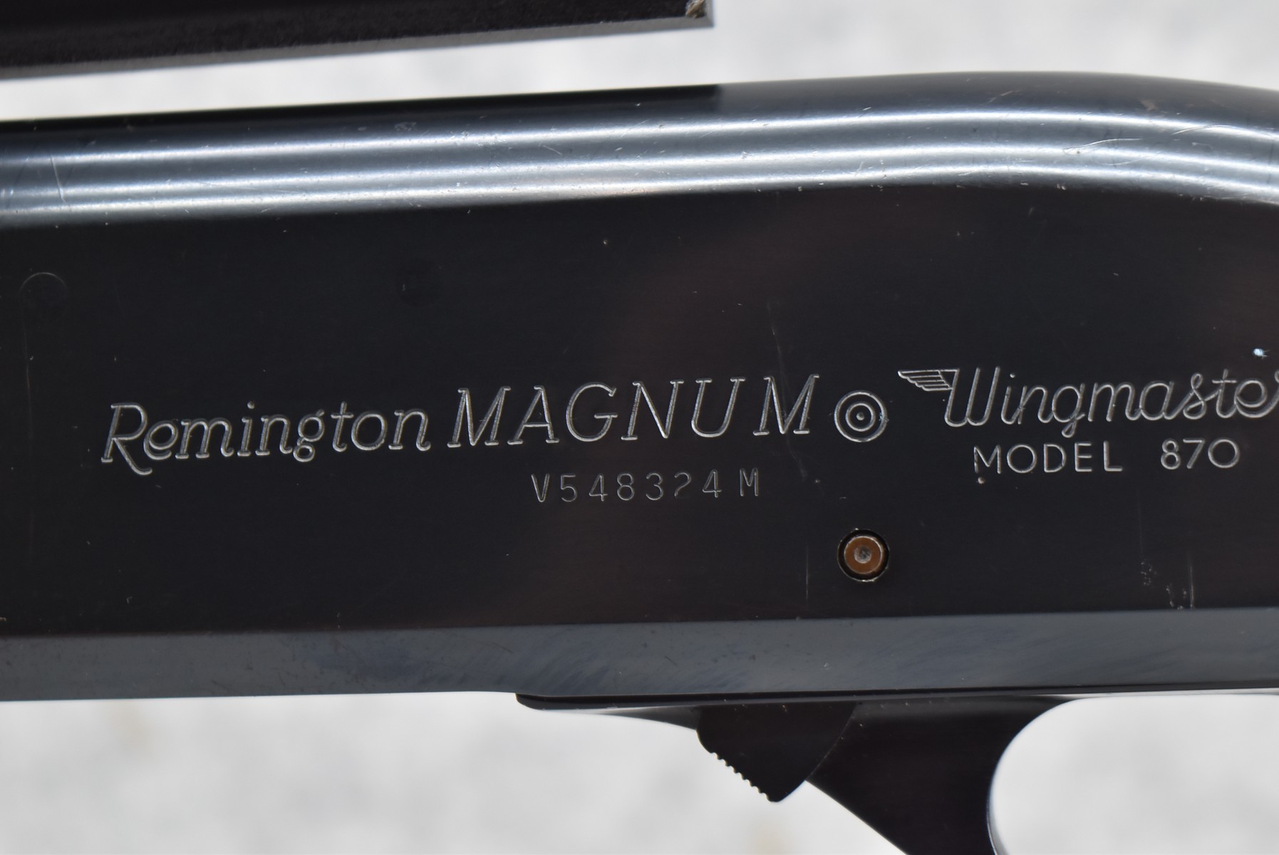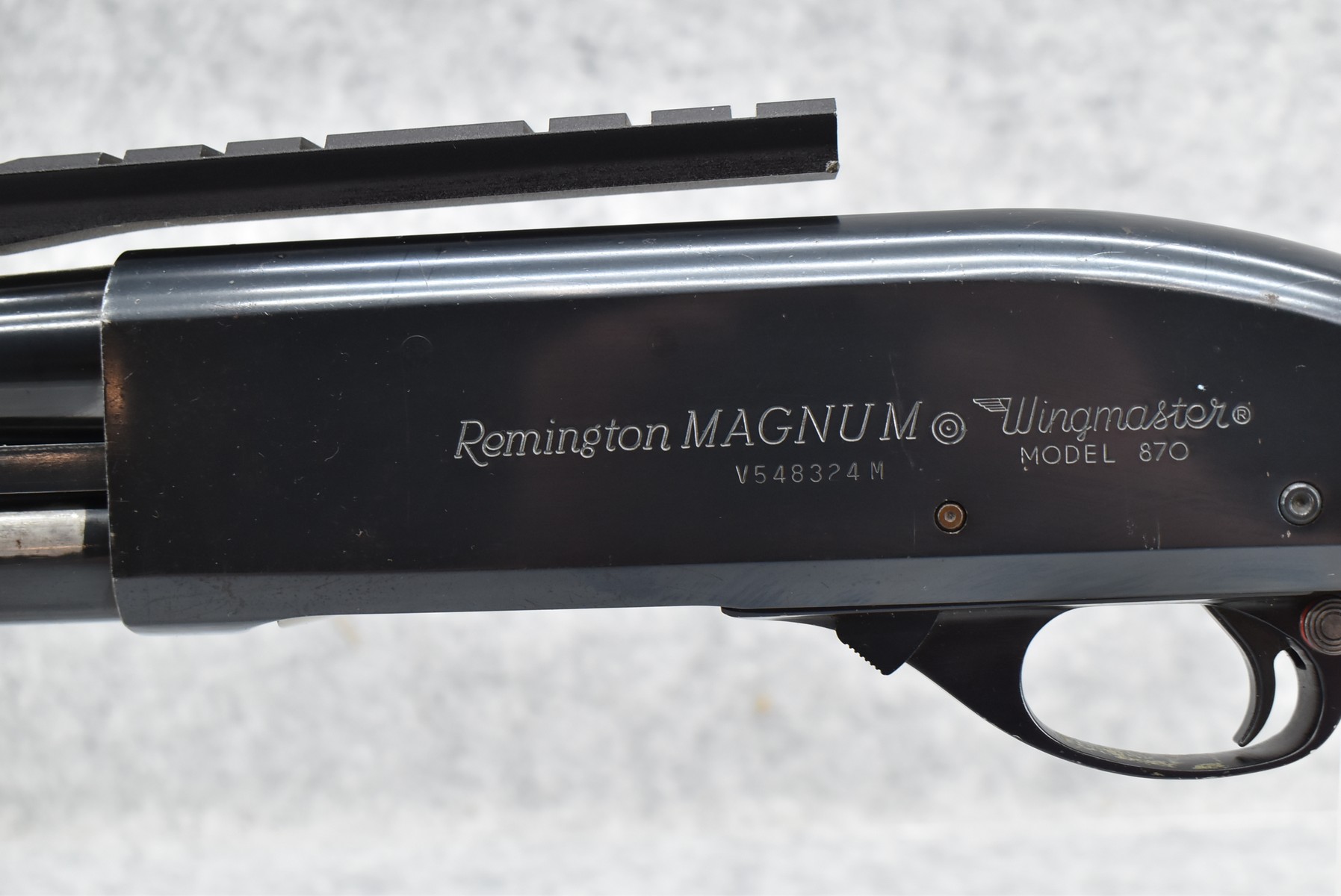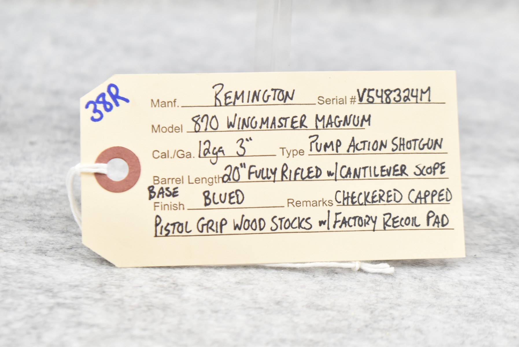 38R. Remington – Mod. 870 Wingmaster Magnum – 12ga. 3” Pump Action Shotgun – w/20” Fully Rifled Barrel – Blued Finish – w/Checkered Capped Pistol Grip Wood Stocks w/Factory Recoil Pad – w/Cantilever Scope Base