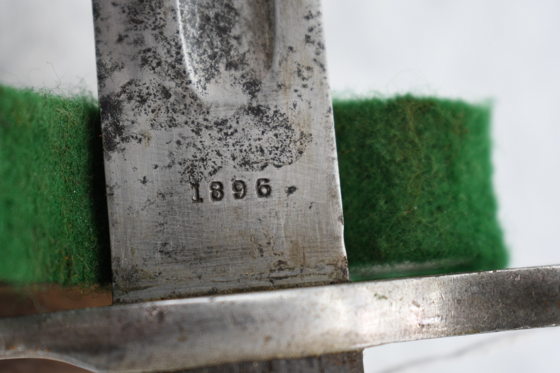 39. U.S. M1892 Krag-Jorgensen Bayonet Flat Rivets w/Hook Scabbard – Dated 1896