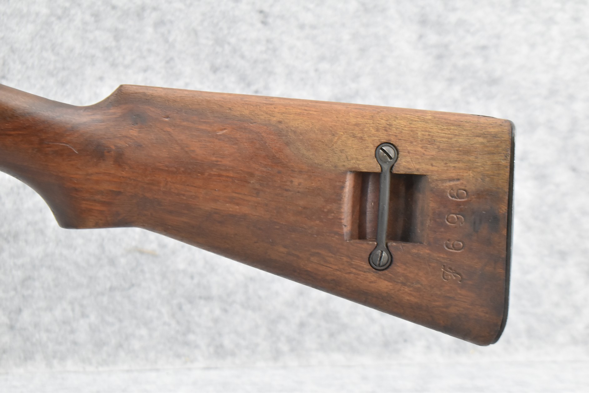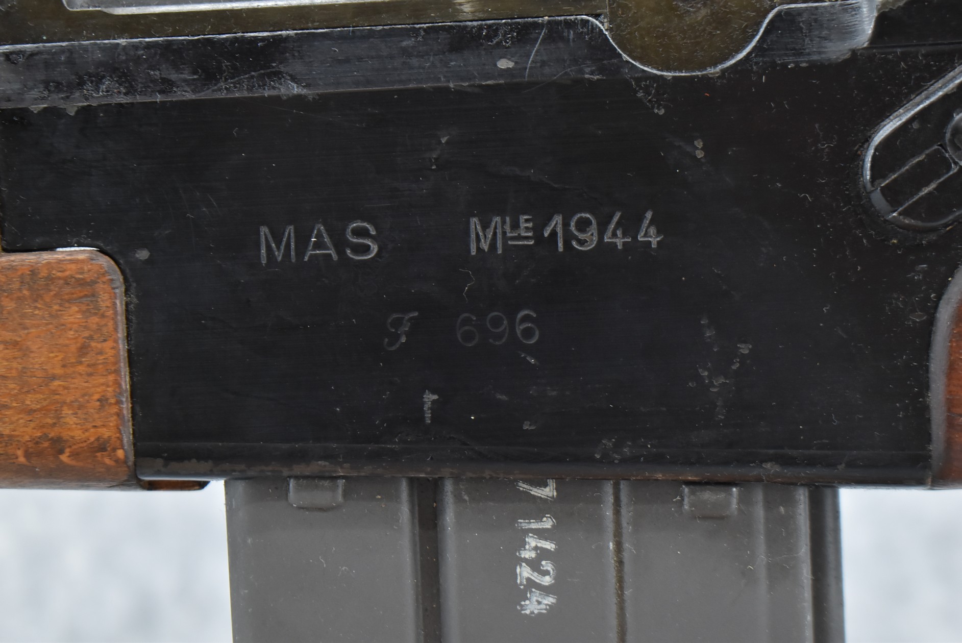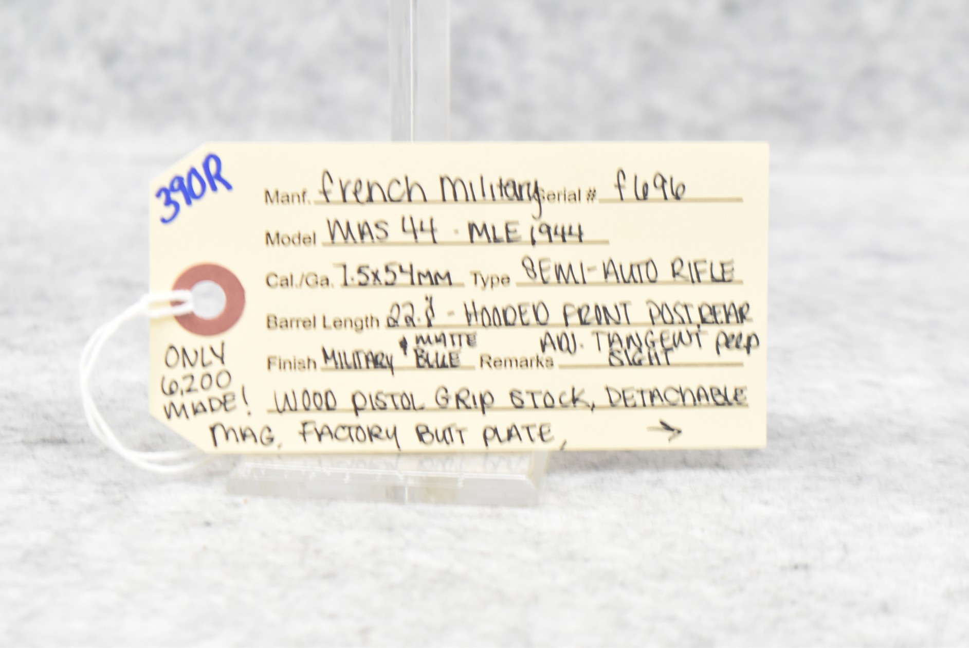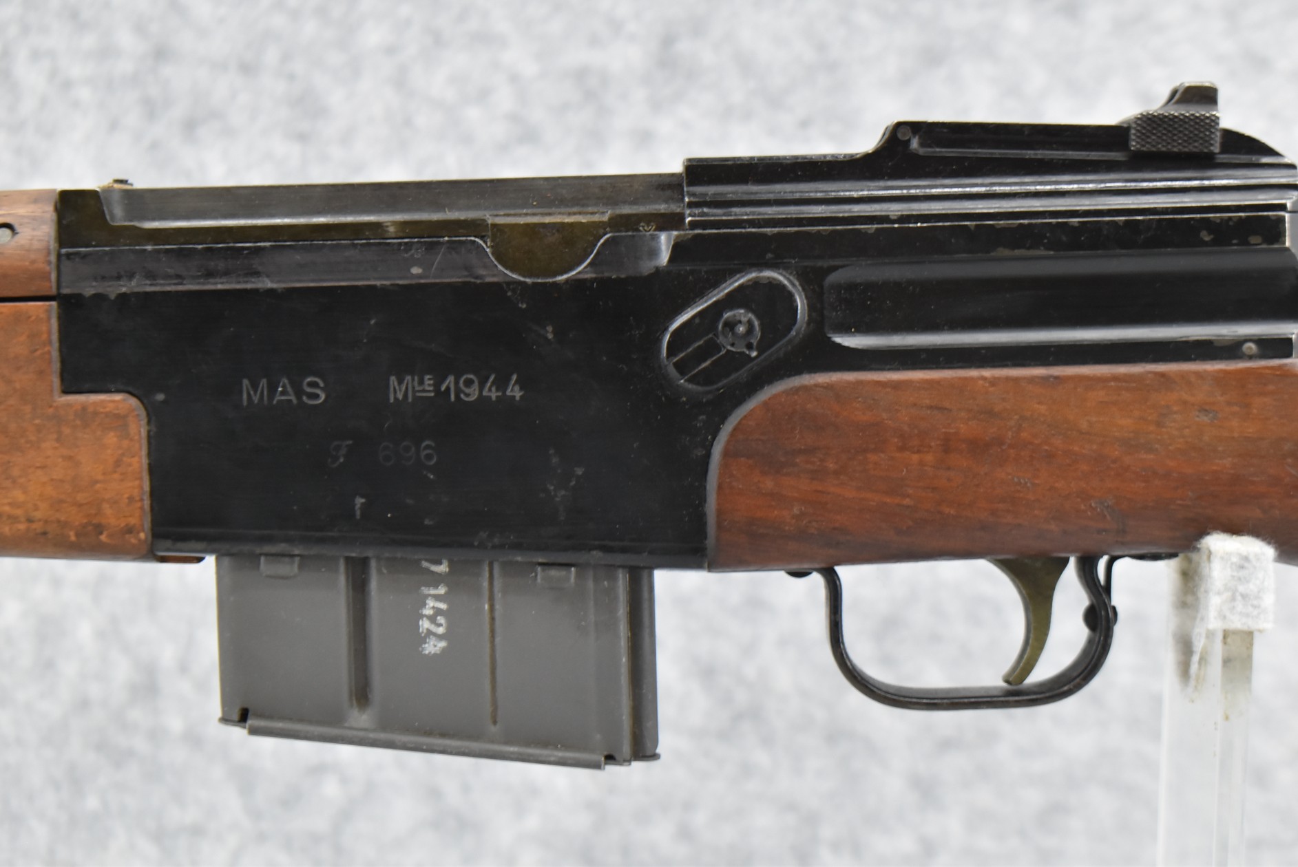 390R. French – Mod. MAS 44 MLE 1944 – 7.5x54mm Cal. Semi-Auto Rifle – w/22” Barrel w/Hooded Front Post & Rear Adj. Tangent Peep Sight – Military Finish – w/Wood Pistol Grip Stock w/Factory Butt Plate – w/Detachable Magazine – w/Sling Mounts – Stocks & Trigger Guard Are Matching Numbers – Only 6,200 Mfg.! – Import Marked
