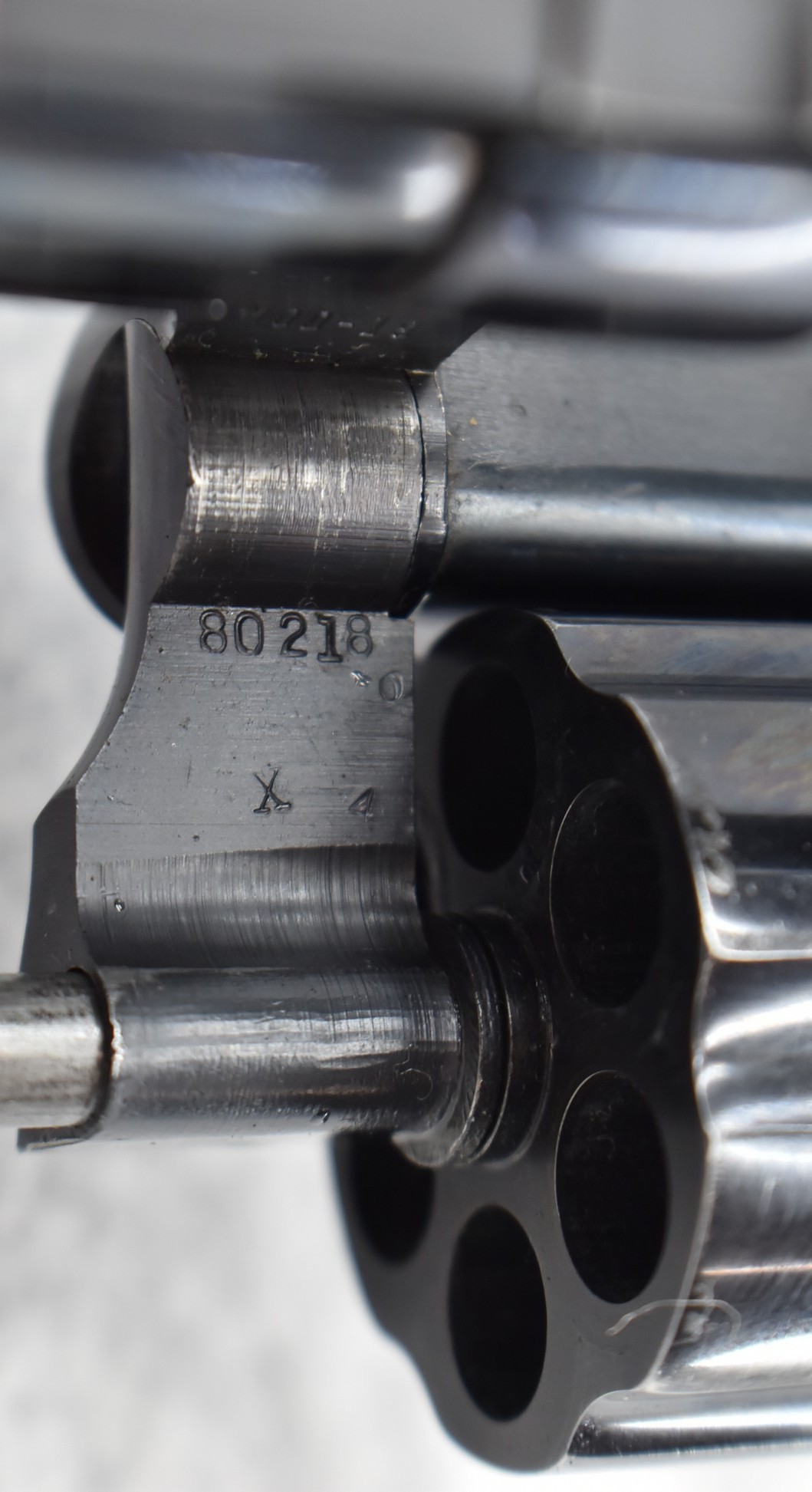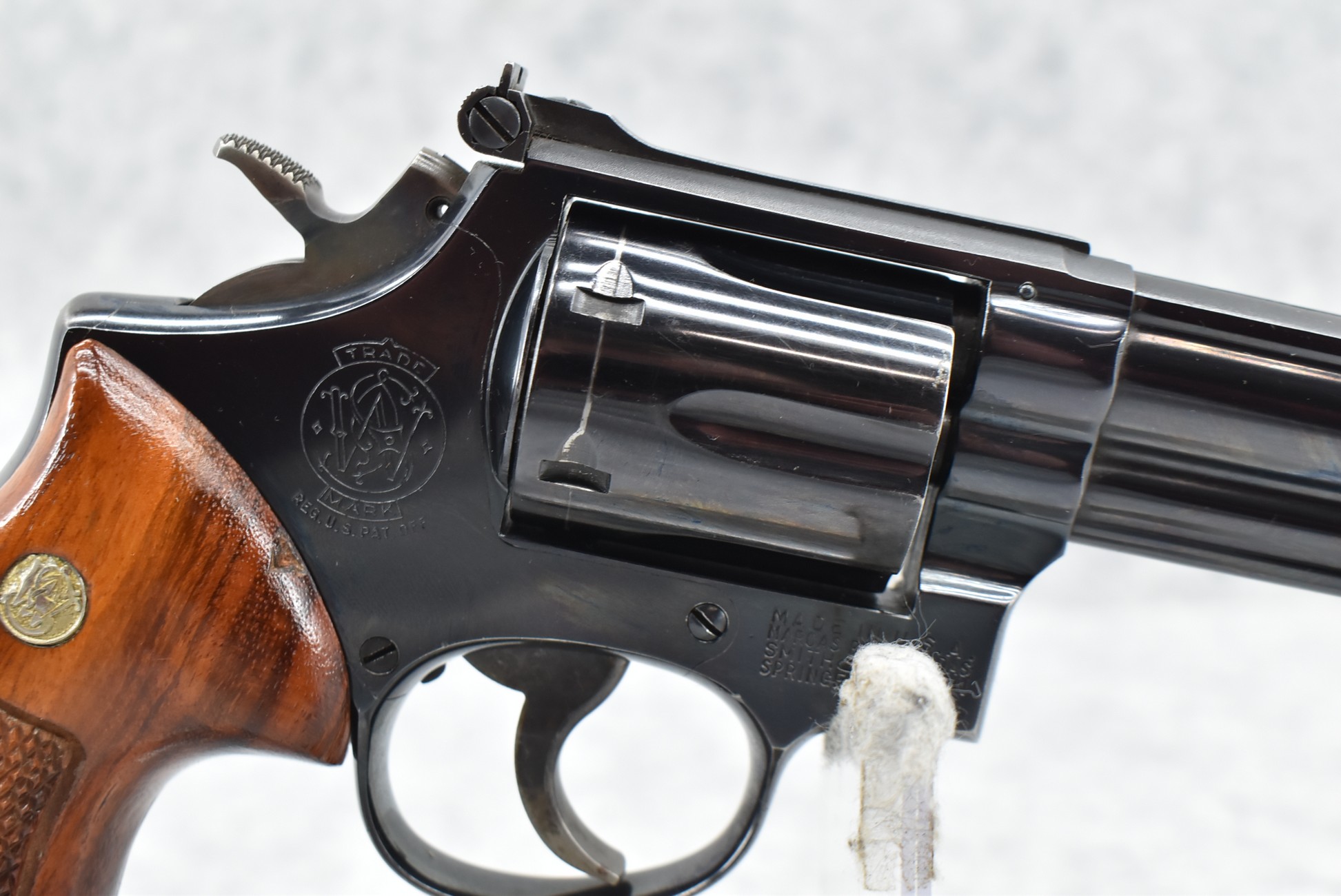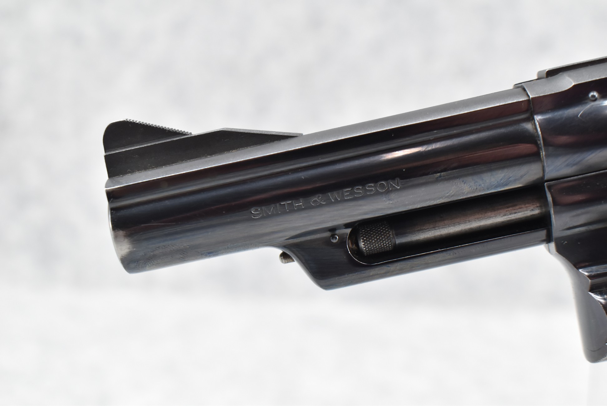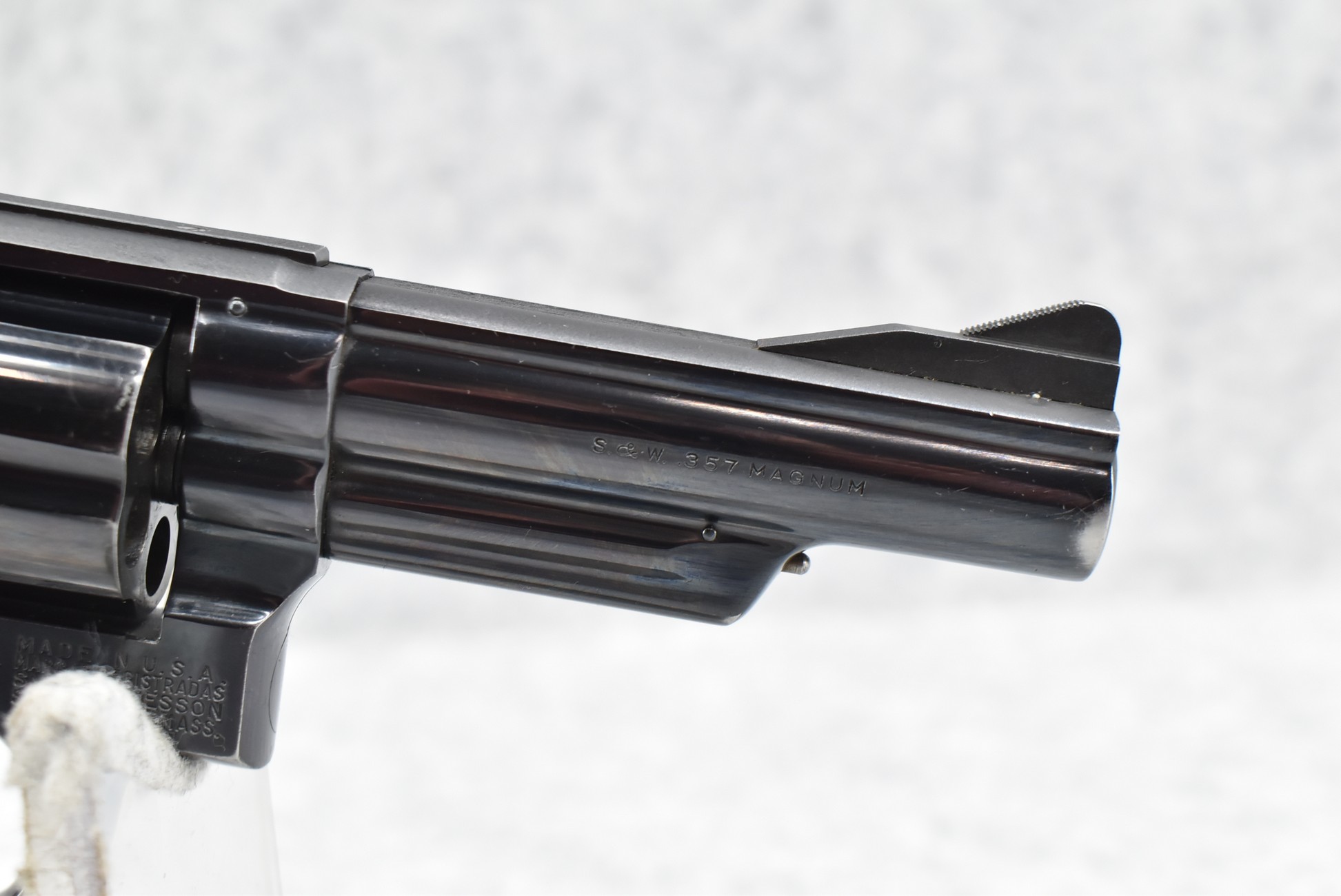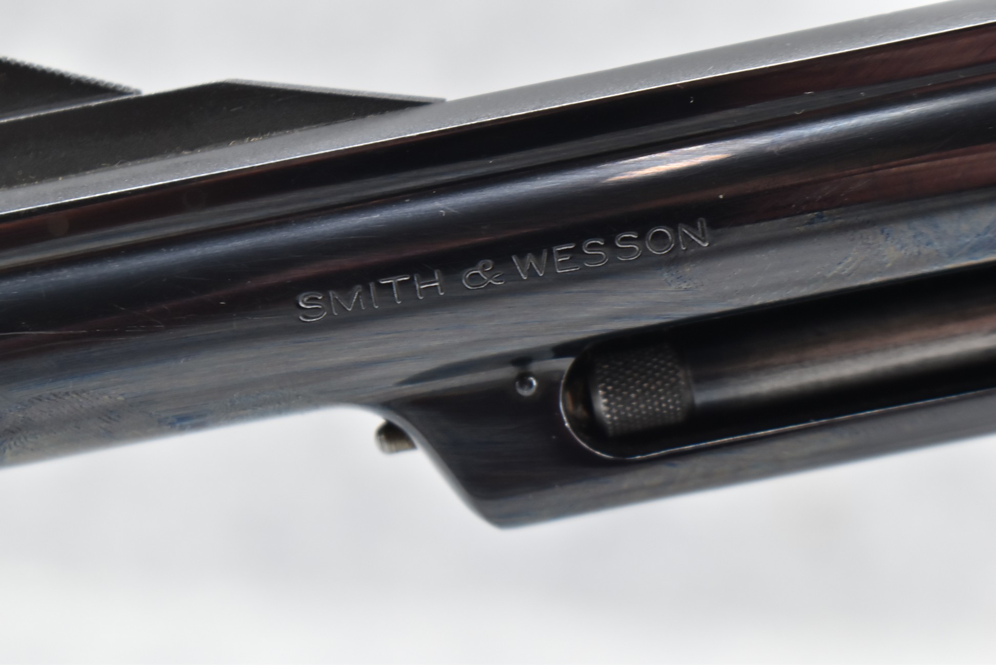 391R. Smith & Wesson – Mod. 19 – 357 Mag. Cal. Double Action Revolver – w/4” Barrel w/Ramp Blade Front & Adj. Rear Notch Sights – Blued Finish – w/Factory S&W Medallion Checkered Target Wood Grips