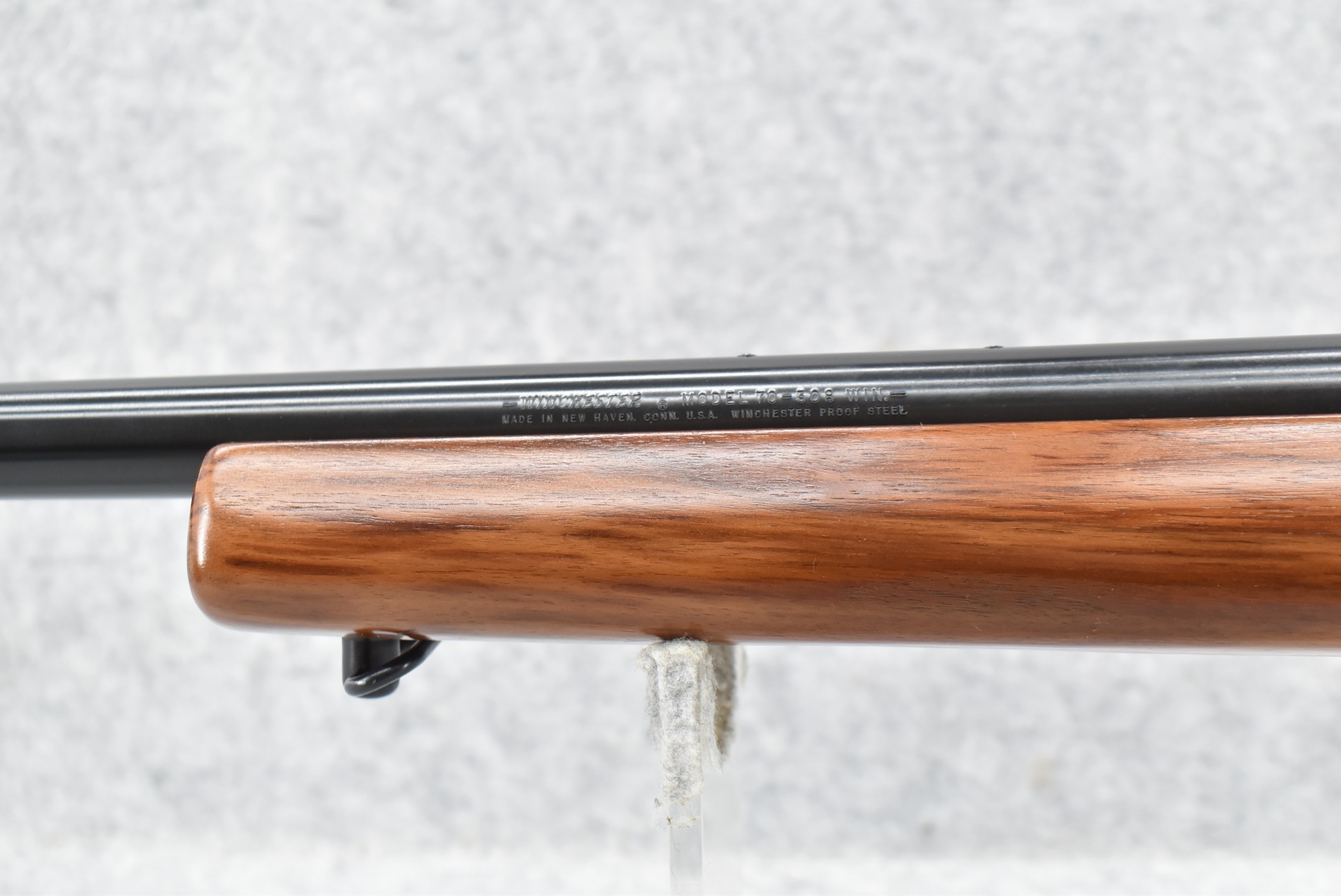 392R. Winchester – Mod. 70 Target – 308 Win. Cal. Bolt Action Rifle – w/24” Heavy Barrel (No Sights) – Blued Finish – w/Heavy Target Pistol Grip Wood Stock w/Factory Butt Pad & Beavertail Forend w/Mounting Rail for Palm Stop – w/Sling Loops – w/Mounting Bases for Optics – Mfg. 1970