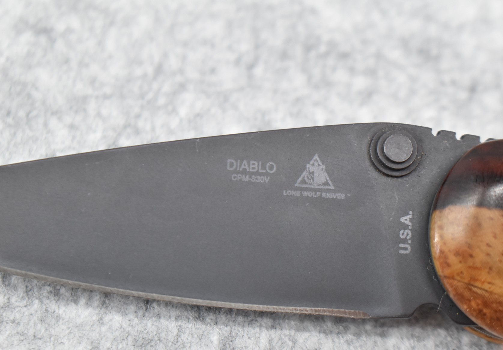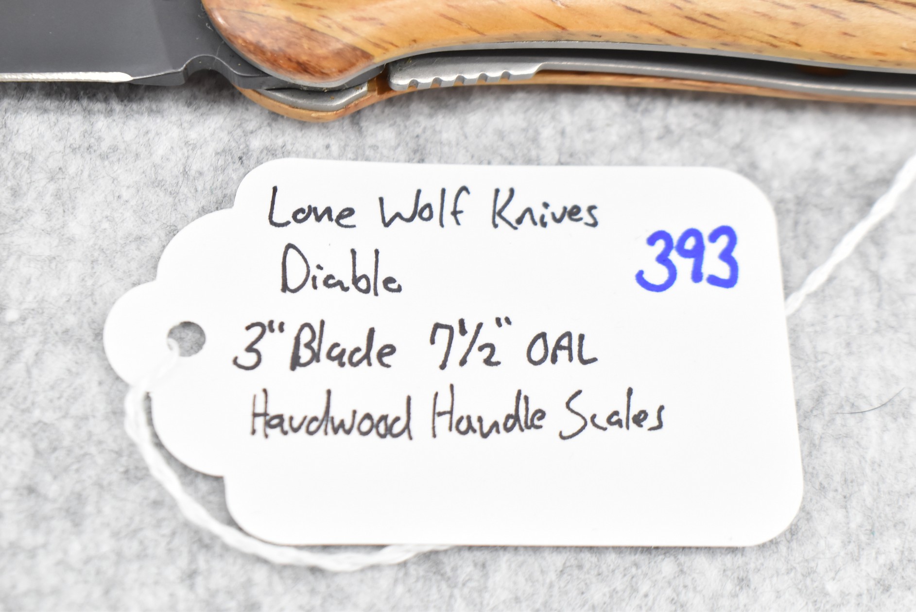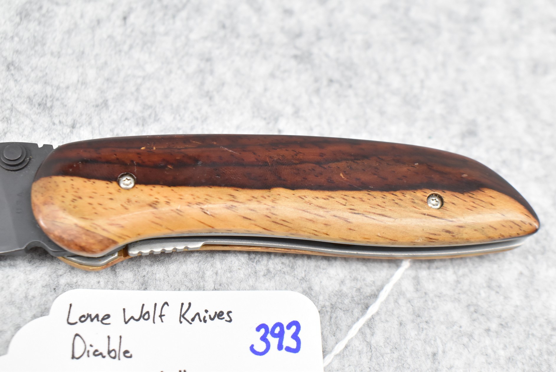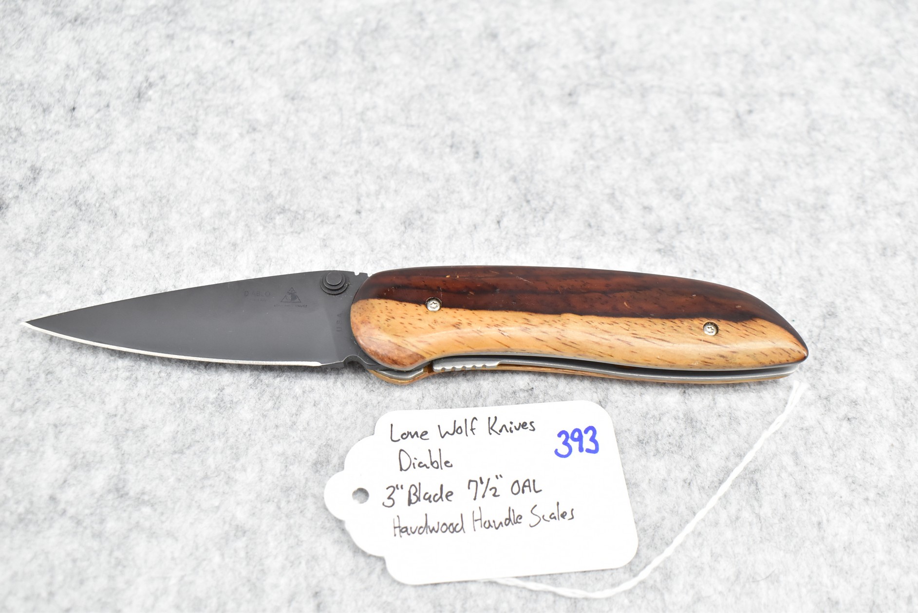 393. Lone Wolf Knives – Diablo Folding Knife – w/3” Blade – 7 ½” Overall Length – w/Hardwood Handle Scales