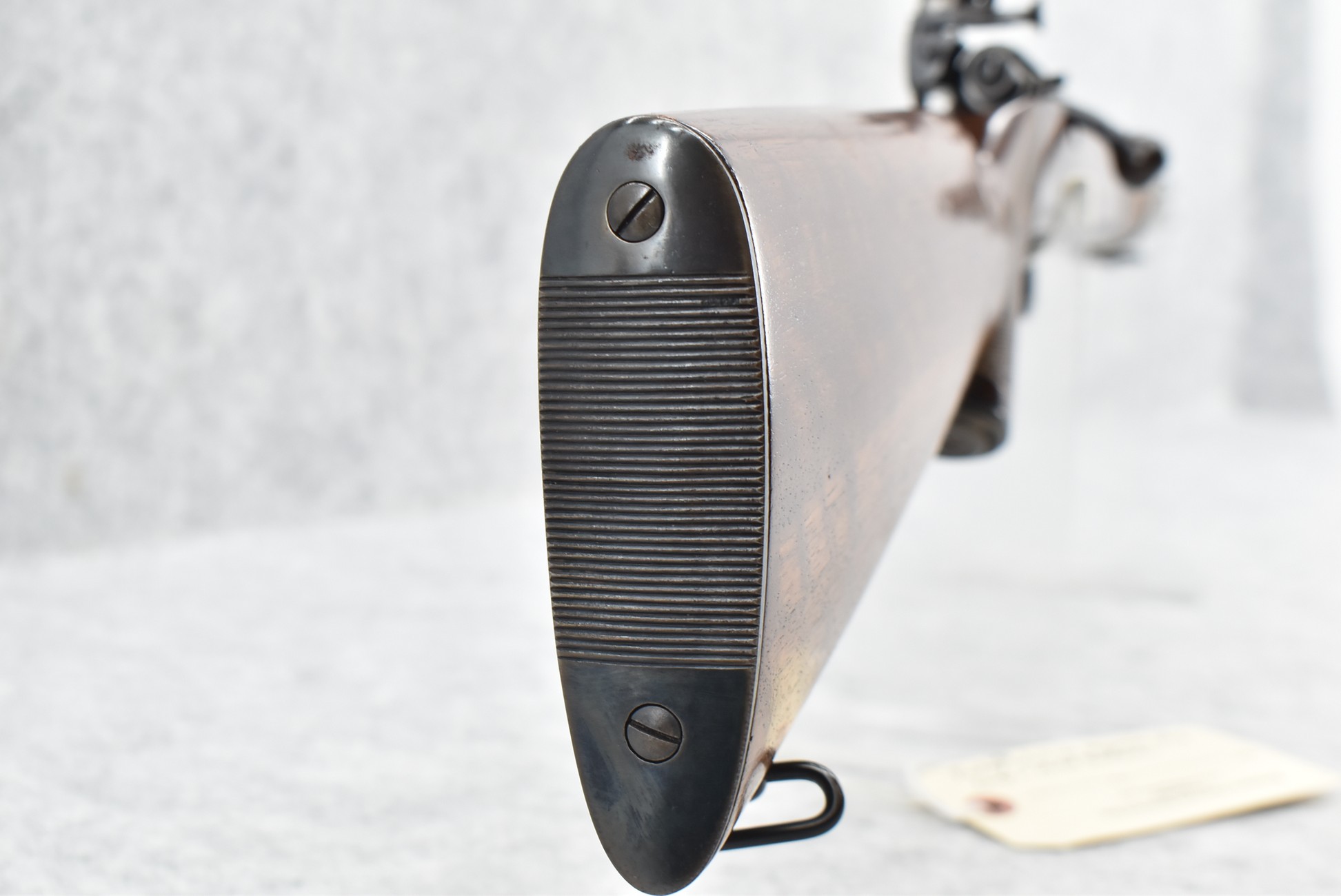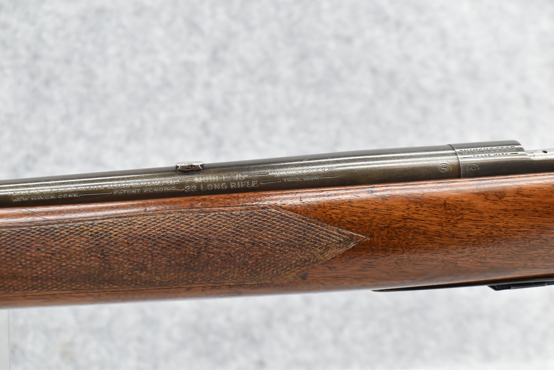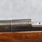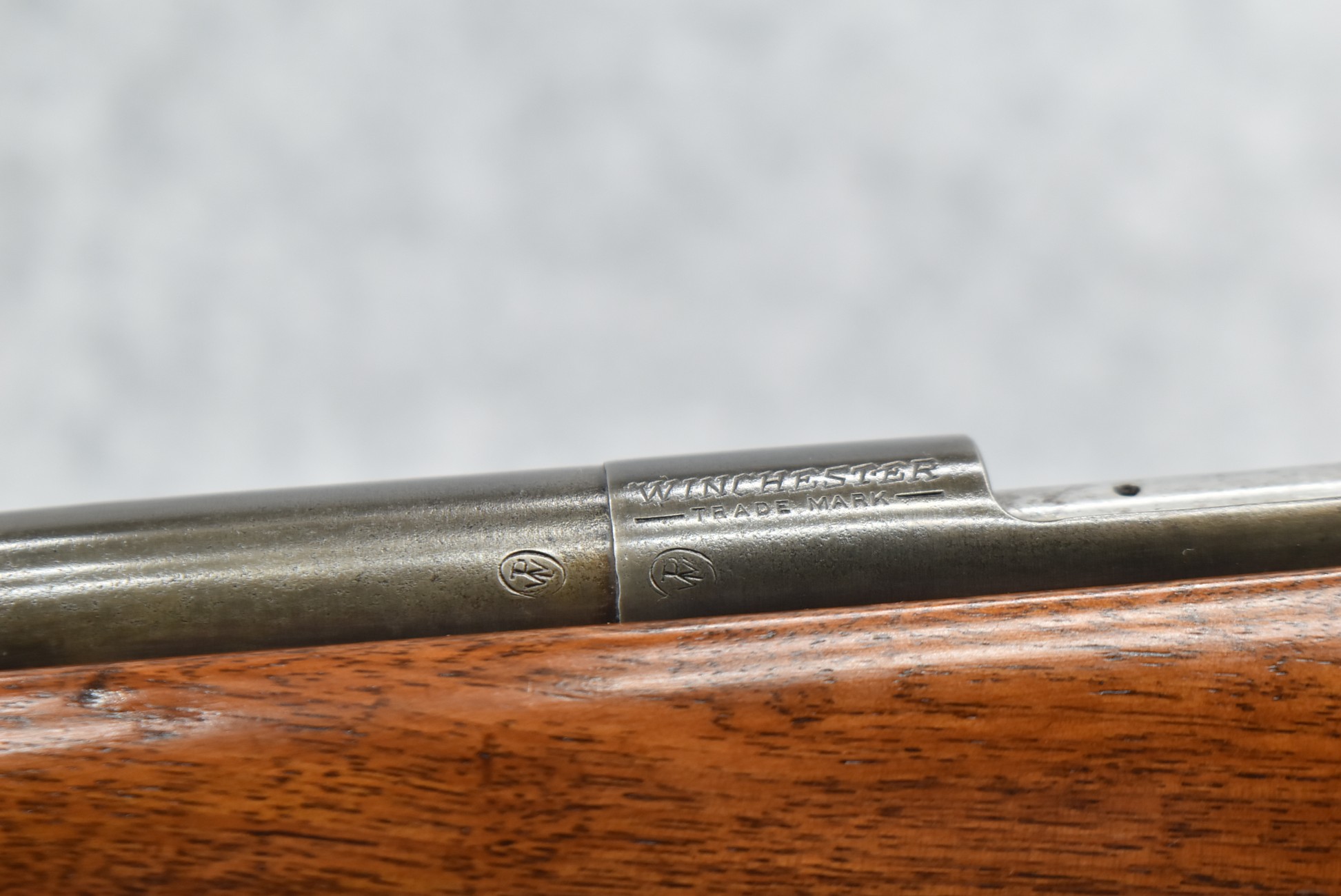 394R. Winchester – Mod. 75 Sporting – 22LR Cal. Bolt Action Rifle – w/24” Barrel w/Hooded Blade Front (Rear Barrel Dovetail Blank) & Lyman 57E Adj. Rear Receiver Peep Sights – Blued Finish – w/Deluxe Checkered Capped Pistol Grip Wood Stock w/Factory Metal Butt Plate & Sling Loops – w/Factory 5Rd Detachable Magazine – Mfg. 1942