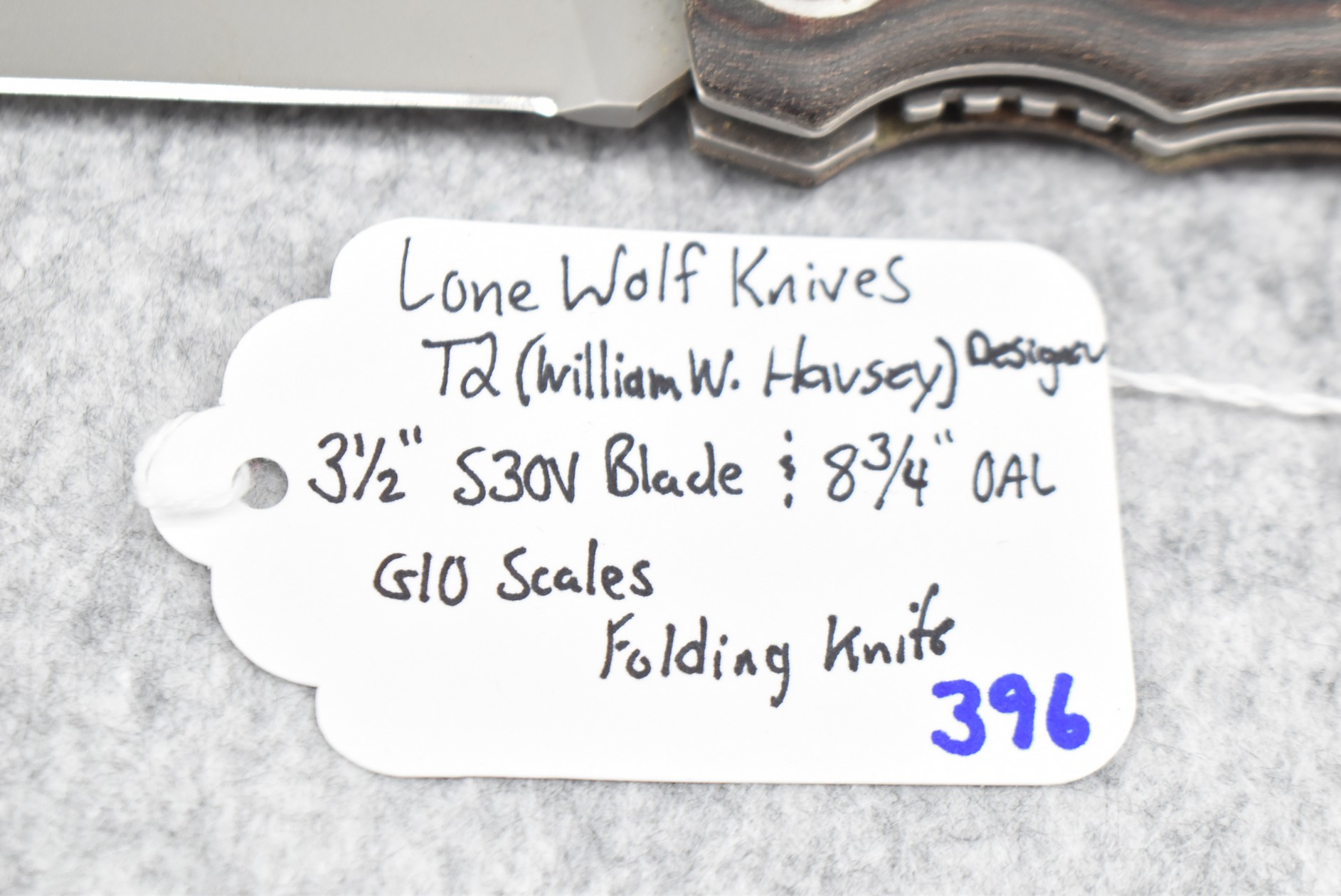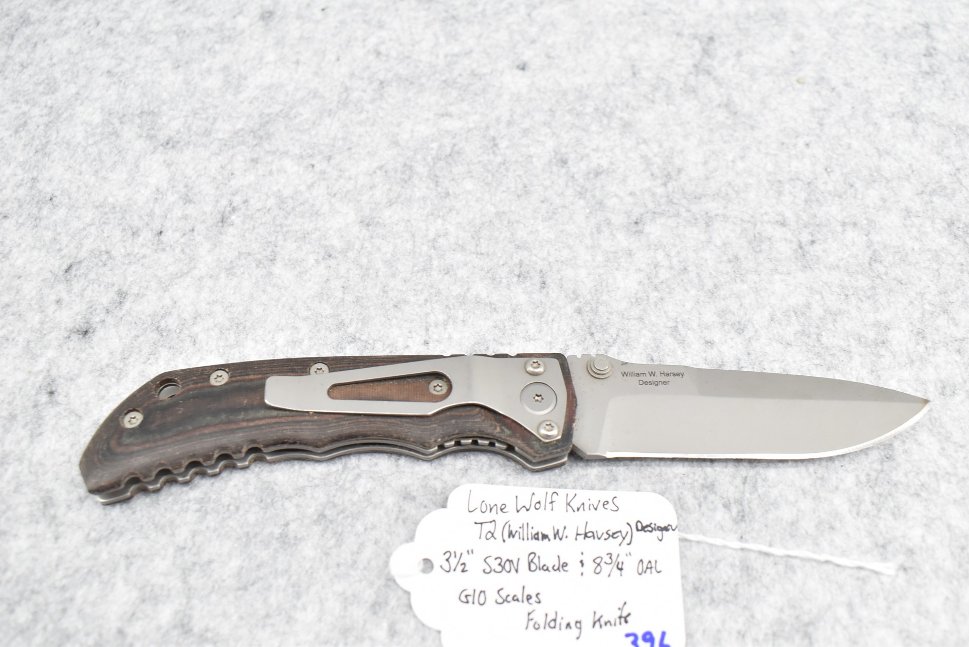 396. Lone Wolf Knives – T2 William W. Harsey Design Folding Knife – w/3 ½” S30V Blade – 8 ¾” Overall Length – w/G10 Scales