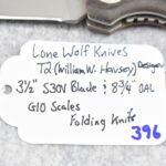 396.     Lone Wolf Knives – T2 William W. Harsey Design Folding Knife – w/3 ½” S30V Blade – 8 ¾” Overall Length – w/G10 Scales