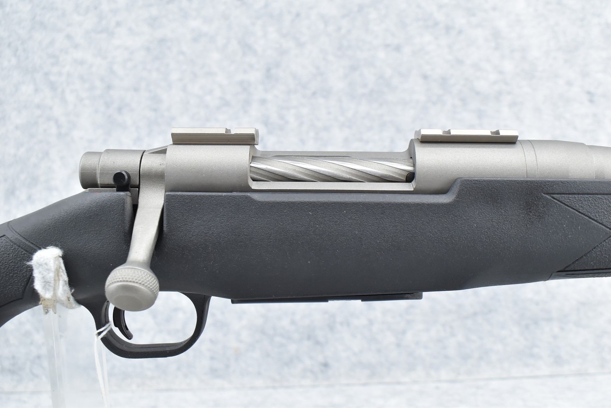 396R. Mossberg – Mod. Patriot – 243 Win. Cal. Bolt Action Rifle – w/22” Fluted Barrel – w/2pc. Scope Rail Mounts – Cerokote Stainless Finish – w/Factory Black Synthetic Pistol Grip Stock w/Factory Butt Pad – Unfired w/Factory Box, Detachable Mag & Manual