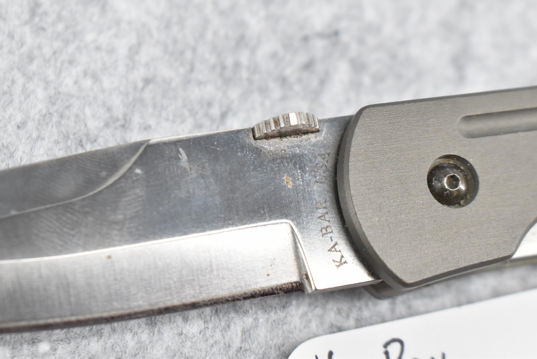 397. Ka-Bar – D2 Folding Knife – w/2 ¾” Dagger Blade – 7 ½” Overall Length – w/Titanium Scales