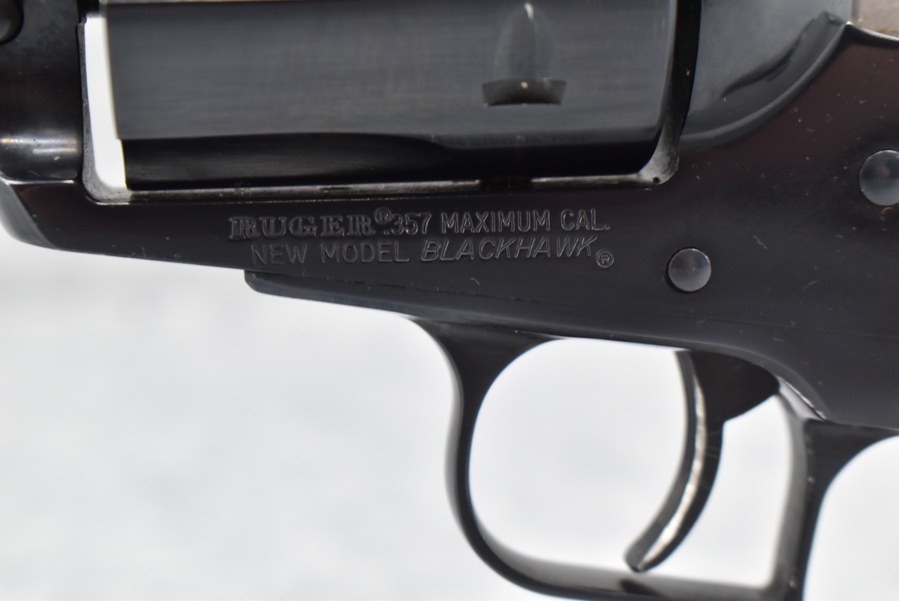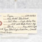 3R. Ruger – New Model Blackhawk – 357 Max Cal. Single Action Revolver – w/10½” Barrel w/Blade Front and Adjustable Rear Notch Sights – Blued Finish – w/Smooth Wood Grips w/Ruger Black Eagle Medallion