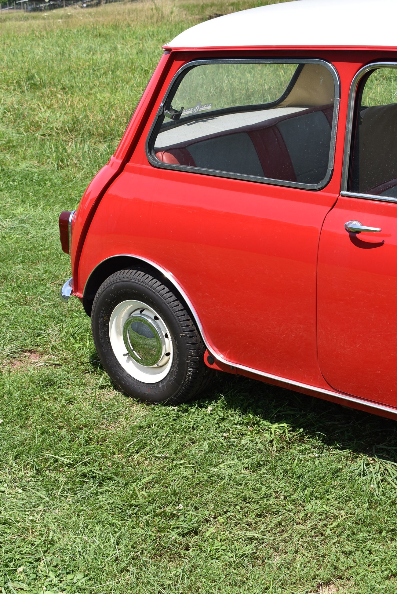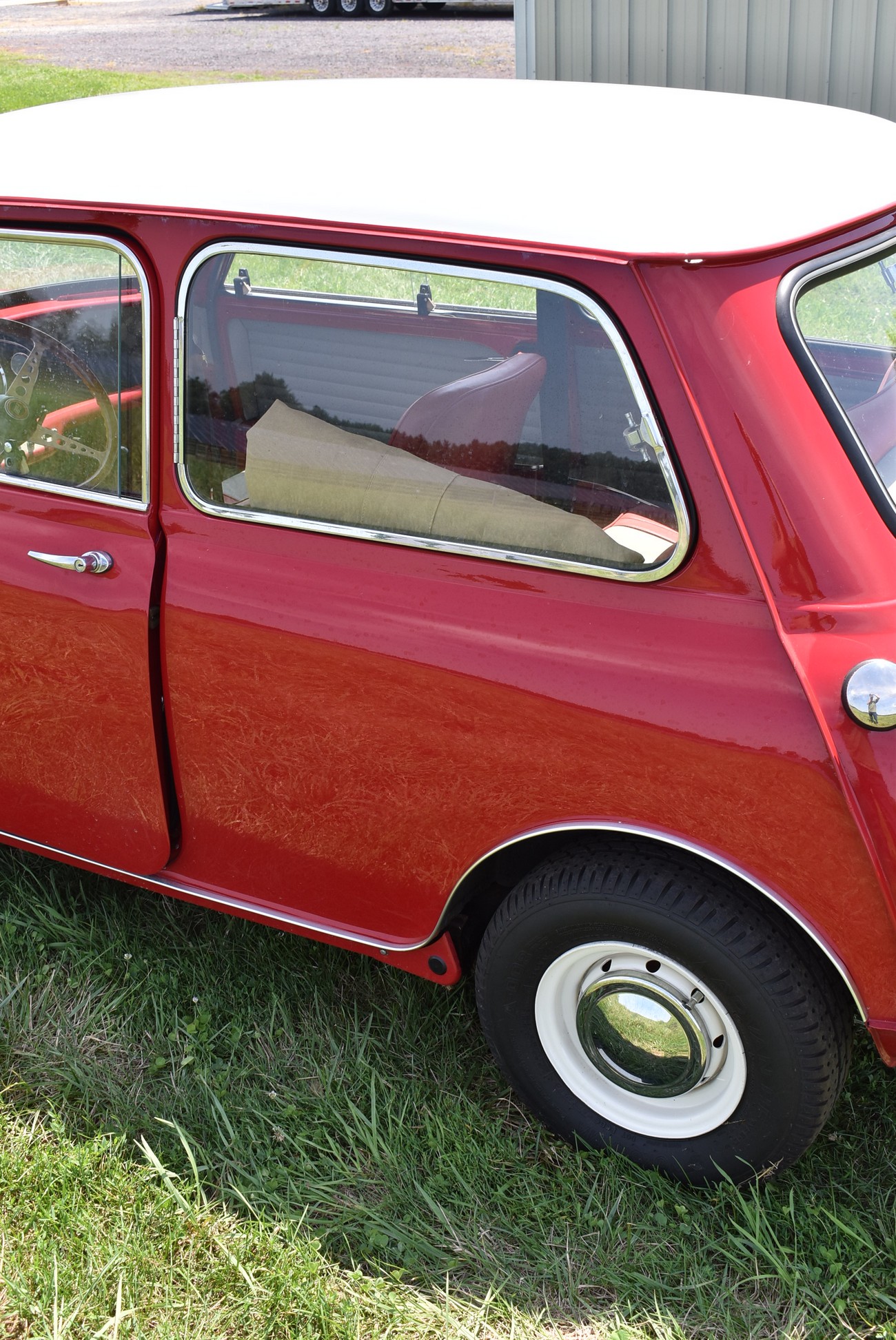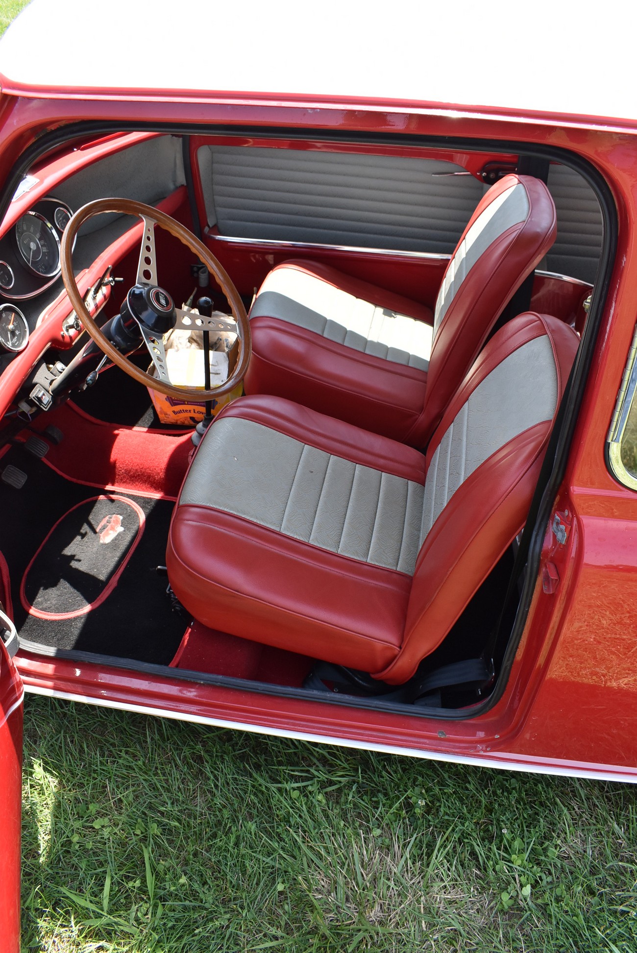 4.       1965 Austin/Cooper Mark I 2-Door Saloon – 1275cc 4cyl. Engine – 16,271 Miles Showing on the Odometer – 4spd. Manual Transmission – Equipped w/Front Disc Brakes, Made to Look Stock, Speedwell Tachometer, Speedwell Steering Wheel & L883 Powder Coated Wheels – Red/White Interior – Red/White Exterior – Vin#:  AA2S7L624004A
