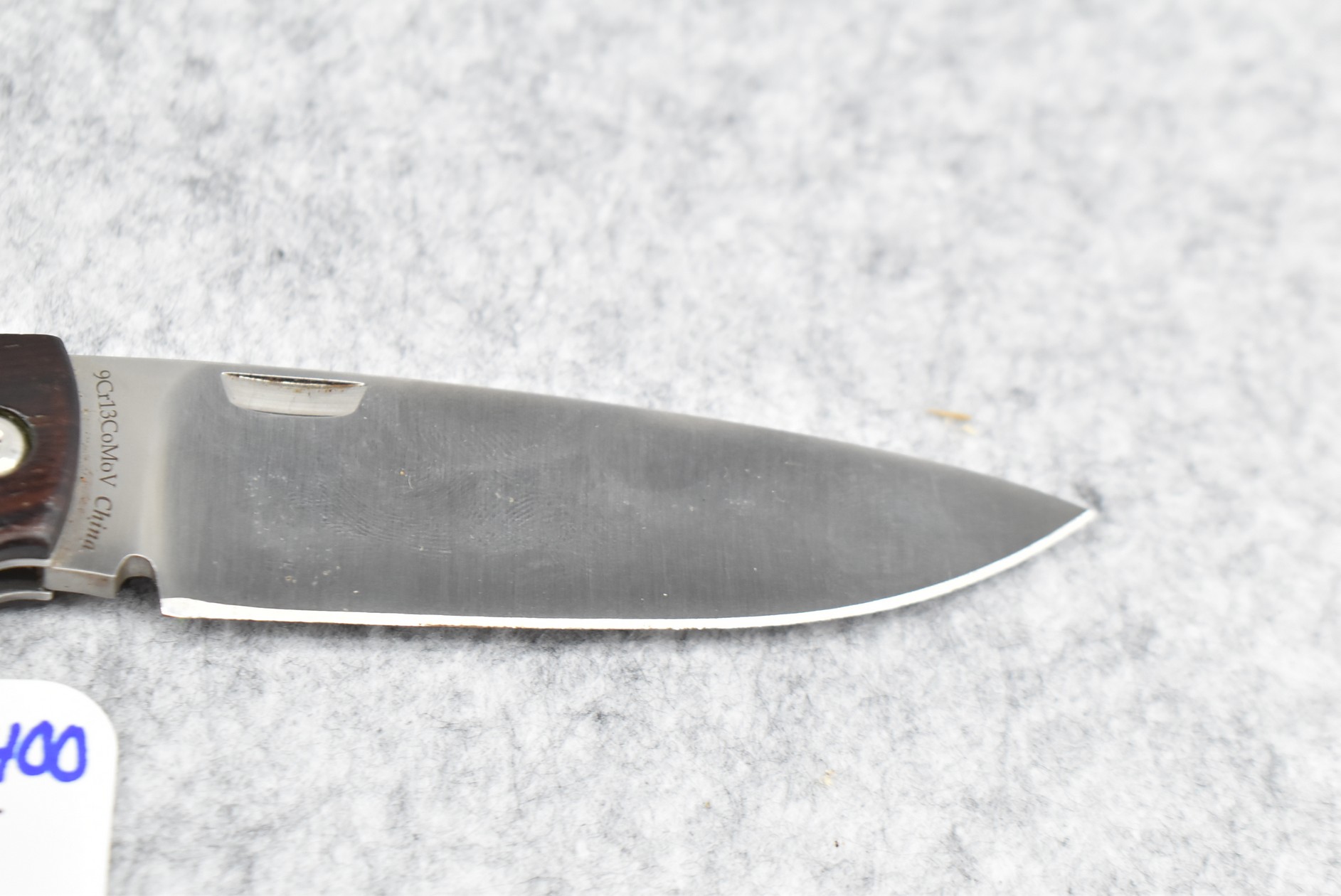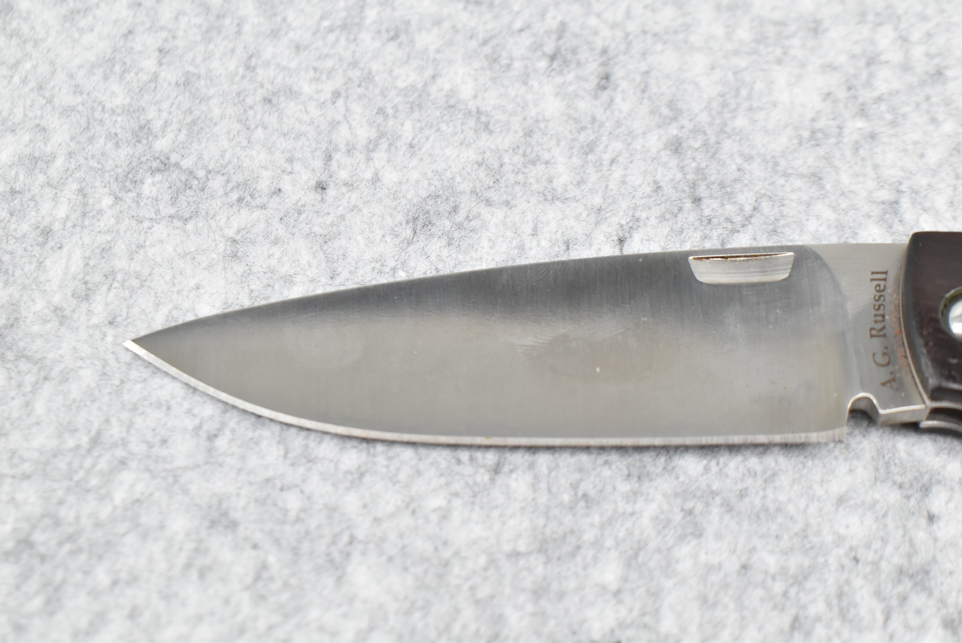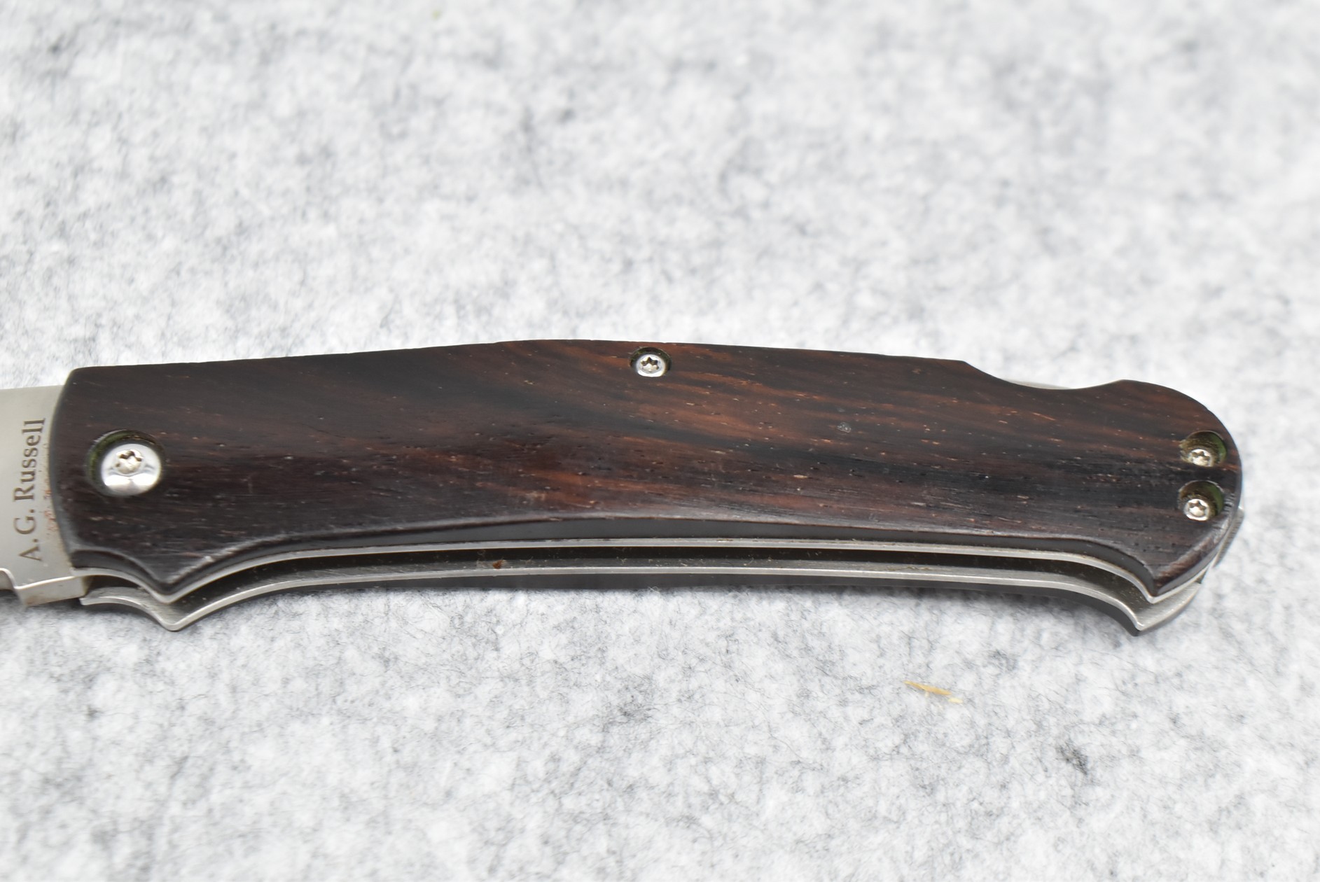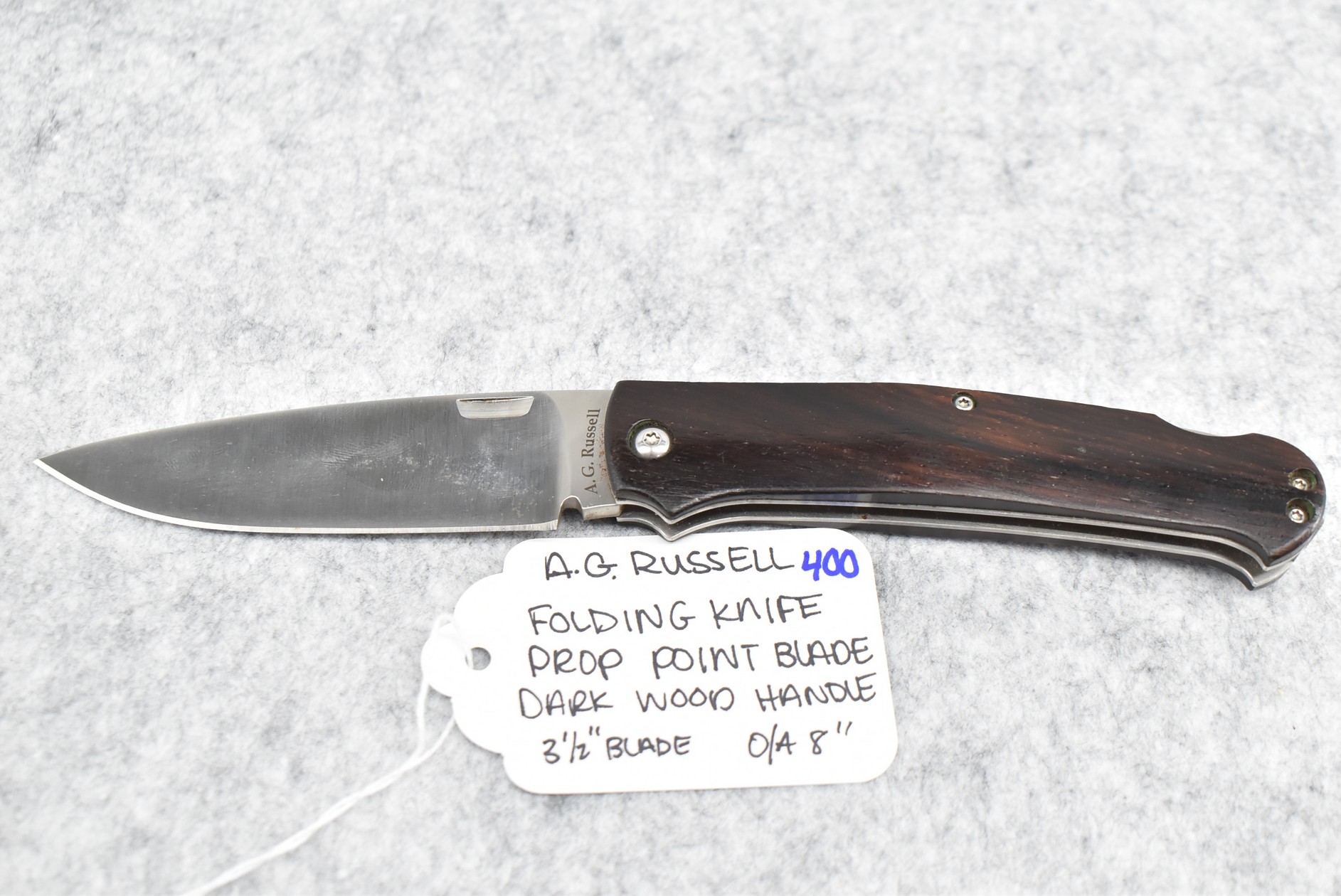 400. A.G. Russel – Folding Knife – w/3 ½” Drop Point Blade – 8” Overall Length – w/Dark Wood Handle