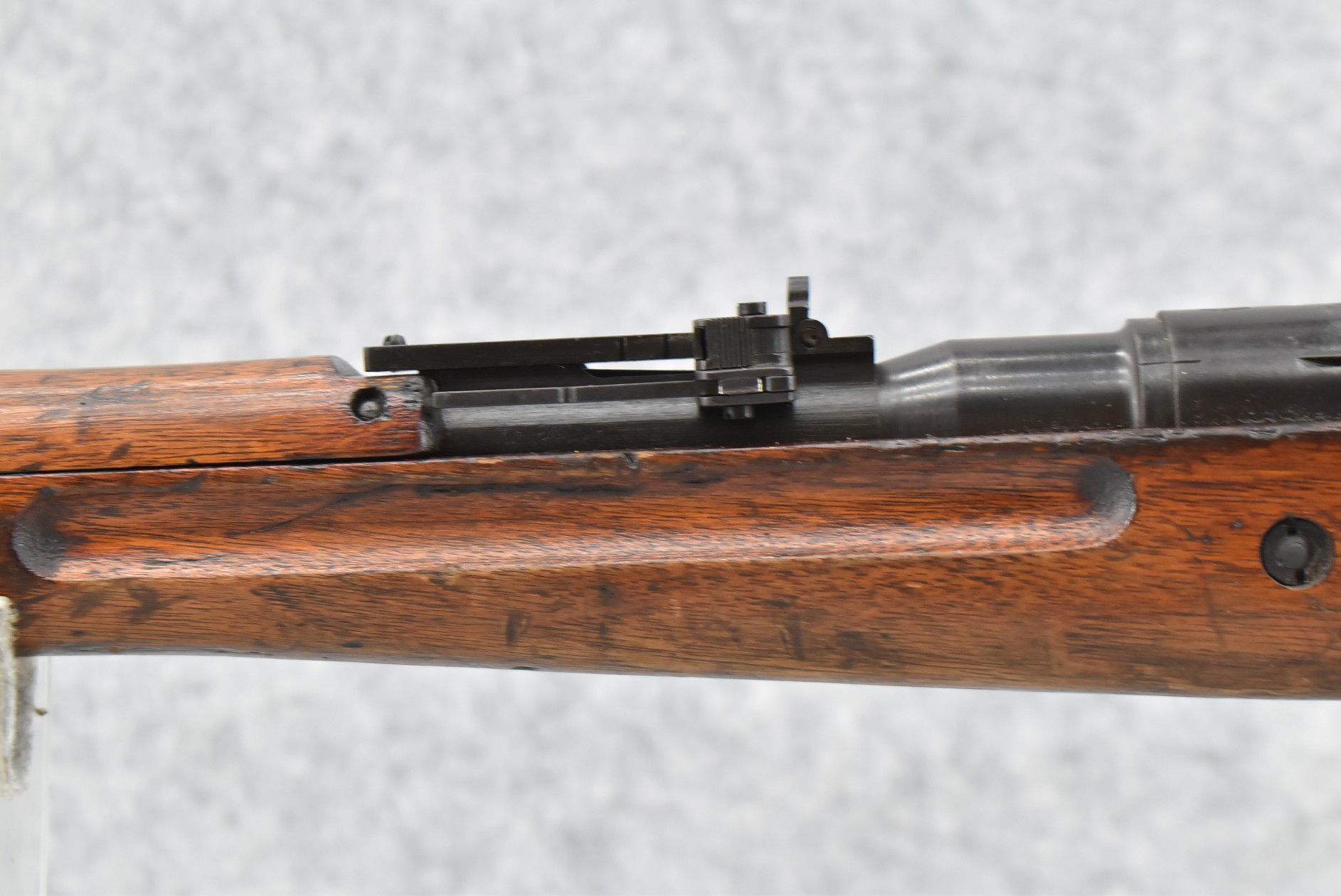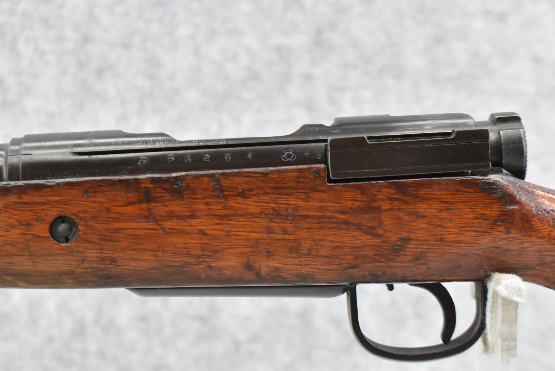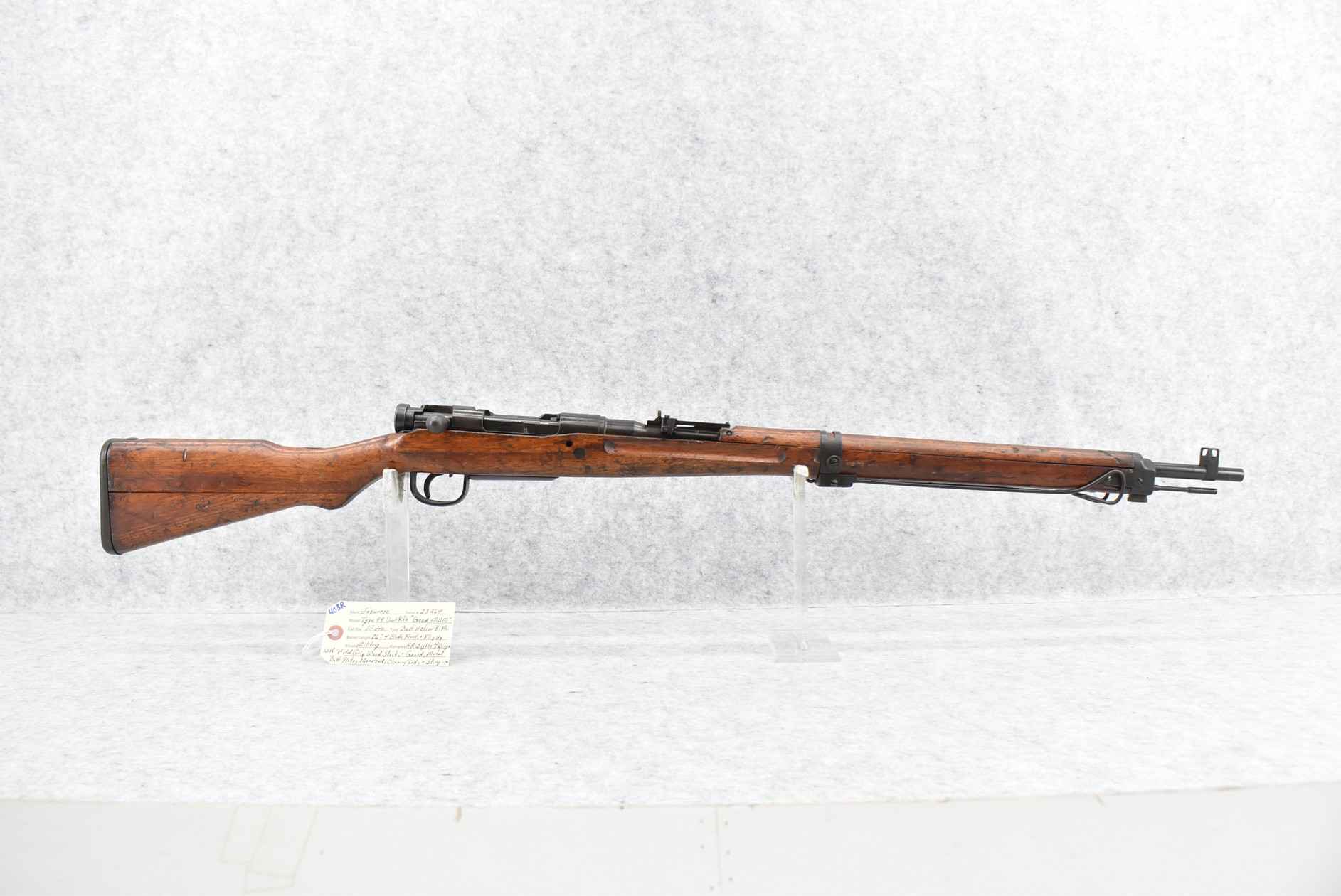 403R. Japanese – Type 99 Short Rifle – 7.7 Jap Cal. Bolt Action Rifle – w/26” Barrel w/Blade Front & Flip Up Anti-Aircraft Sights w/Wings – Military Finish – w/Pistol Grip Wood Stocks w/Metal Butt Plate – w/Sling Loops – w/Cleaning Rod– w/Monopod – Matching Bolt – Unground Mum