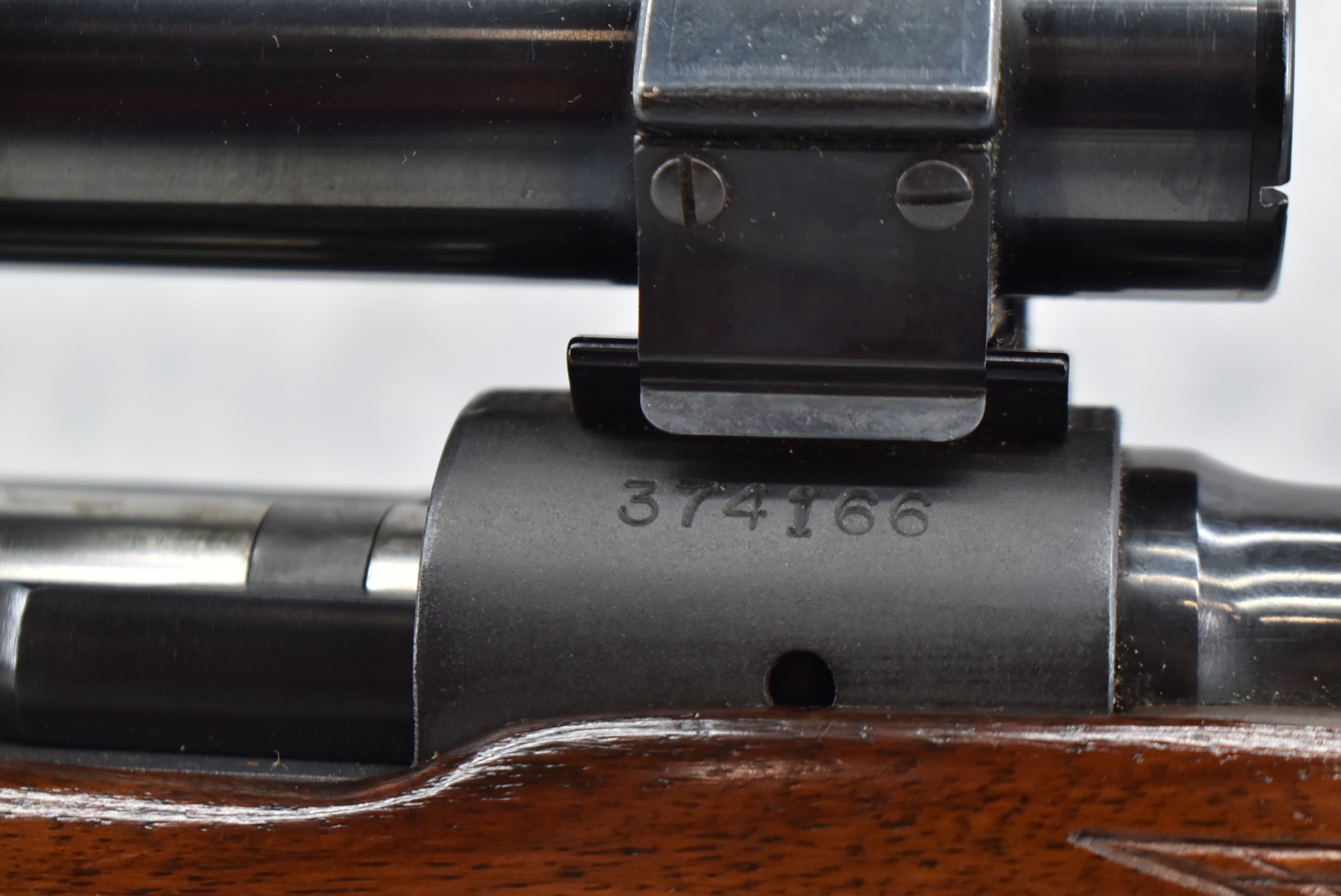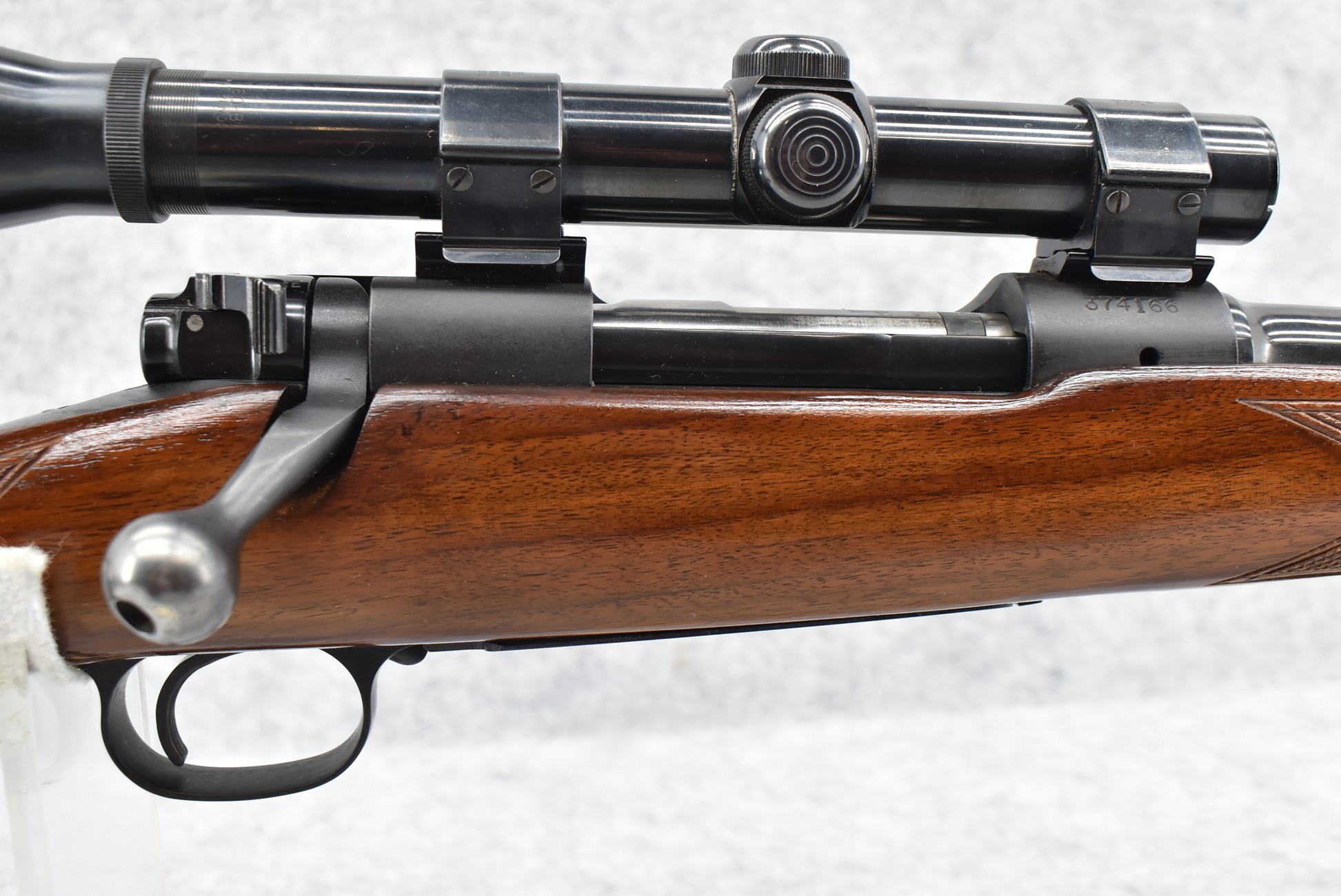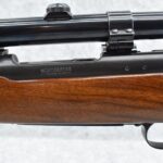 403R. Winchester – Mod. 70 Featherweight (Pre-64) – 243 Win. Cal. Bolt Action Rifle – w/22” Barrel w/Hooded Front & Flip Up Adj. Rear Factory Sights – Blued Finish – w/Checkered Pistol Grip Wood Stock w/Factory Aluminum Butt Plate – w/Sling Loops – w/Weaver K-3 60-B Rifle Scope – w/Weaver Tip Off Scope Rings & Mounting Bases – Mfg. 1956