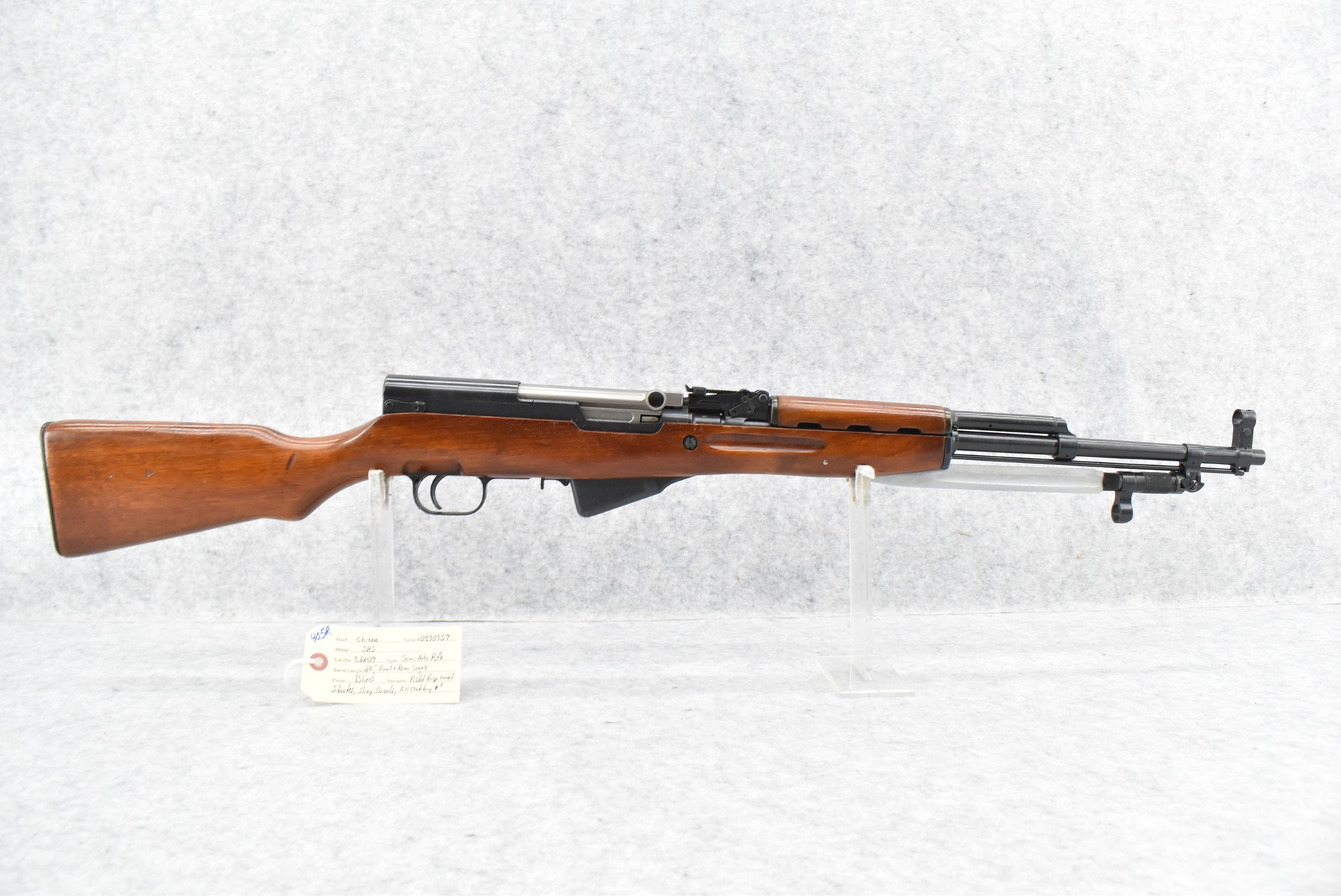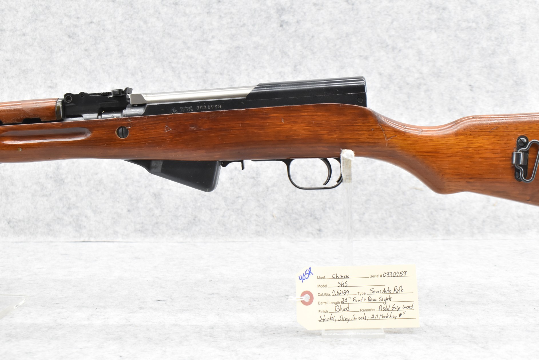 405R. Chinese – Mod. SKS – 7.62×39 Cal. Semi-Auto Rifle – w/20” Barrel w/Front & Rear Sights – Blued Finish – w/Pistol Grip Wood Stocks – w/Sling Swivels – All Matching #s