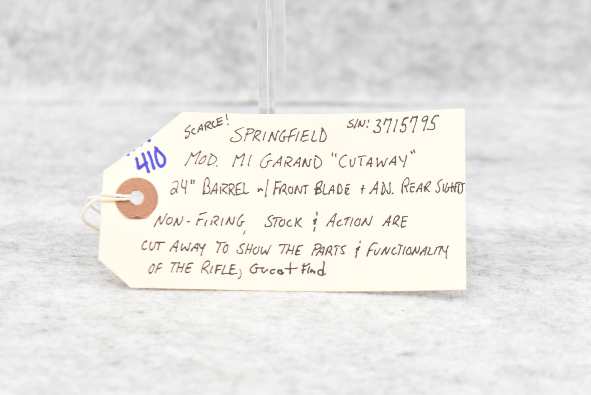 410. Scarce! Springfield Mod. M1 Garand “Cutaway” – w/24” Barrel w/Front Blade & Adj. Rear Sights – Non-Firing – Stock & Action Are Cutaway to Show the Parts & Functionality of the Rifle – Great Find!