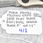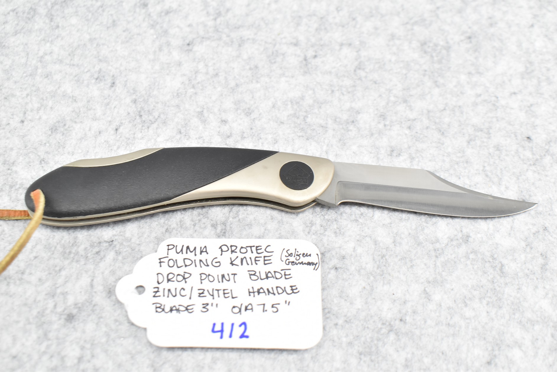 412. Puma Protec (Solingen, Germany) – Folding Knife – w/3” Drop Point Blade – 7.5” Overall Length – w/Zinc/Zytel Handle
