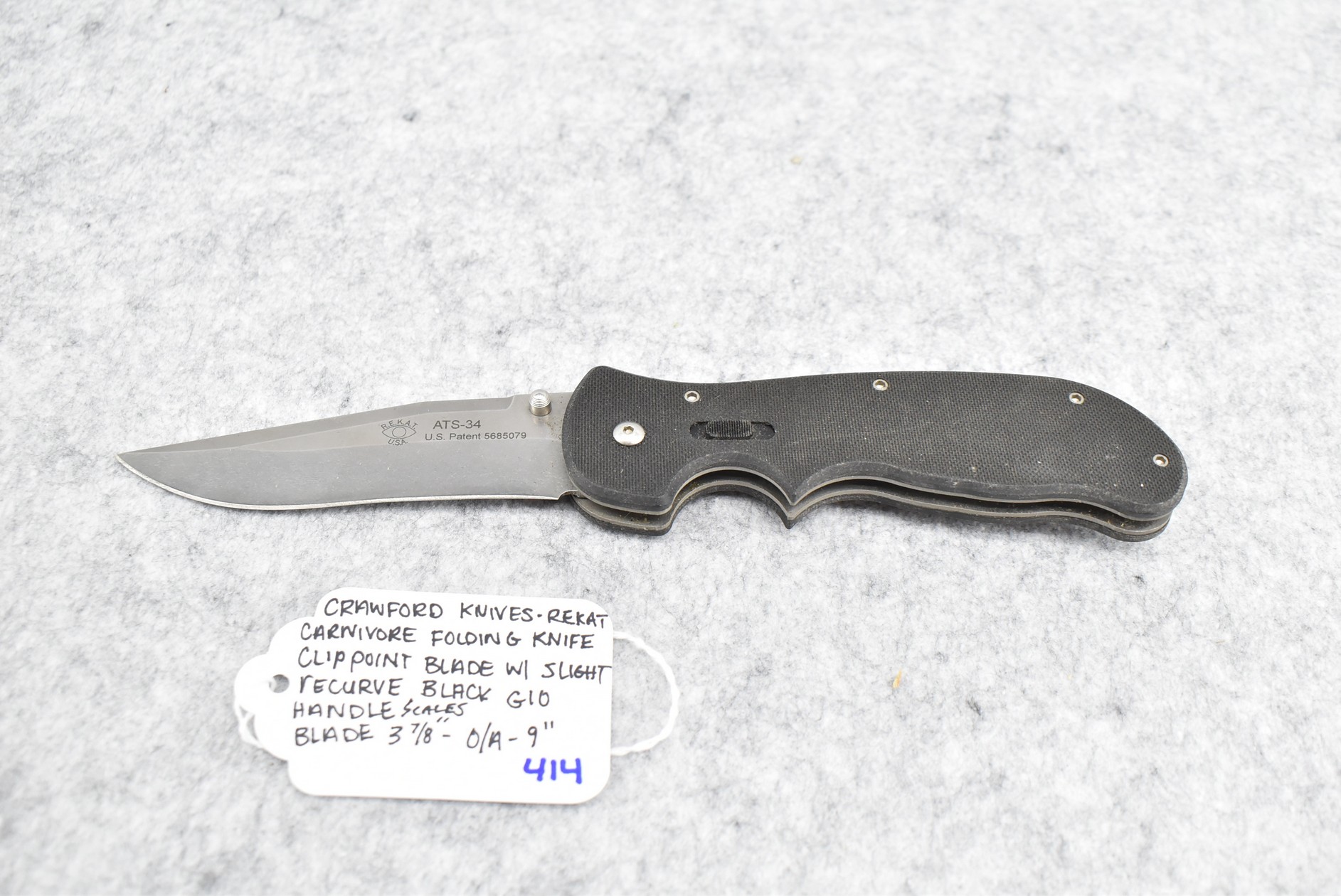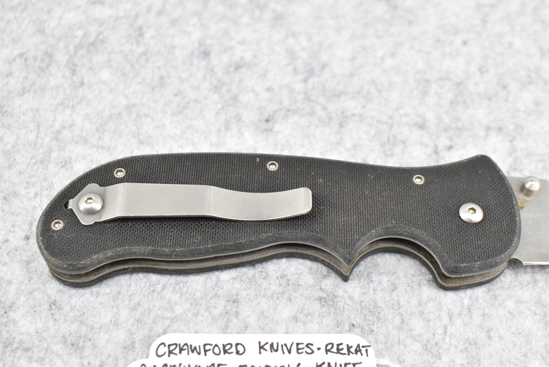414. Crawford Knives – Rekat Carnivore Folding Knife – w/3 7/8” Clip Point Blade w/Slight Recurve – 9” Overall Length – w/G10 Handle Scales