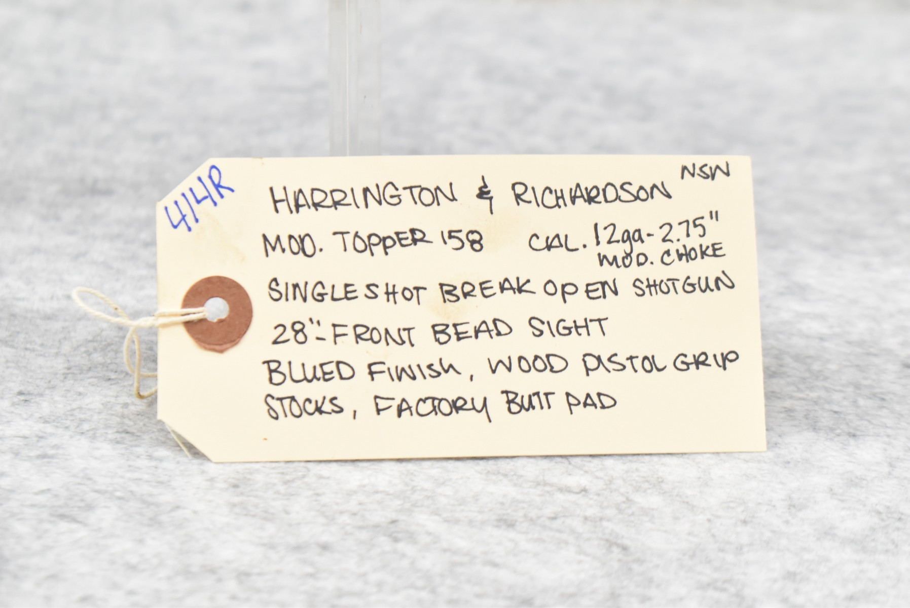 414R. Harrington & Richardson – Mod. Topper 158 – 12ga. 2 ¾” Single Shot Shotgun – w/28” Mod. Choke Barrel w/Front Bead Sight – Blued Finish – w/Pistol Grip Wood Stocks w/Factory Butt Pad