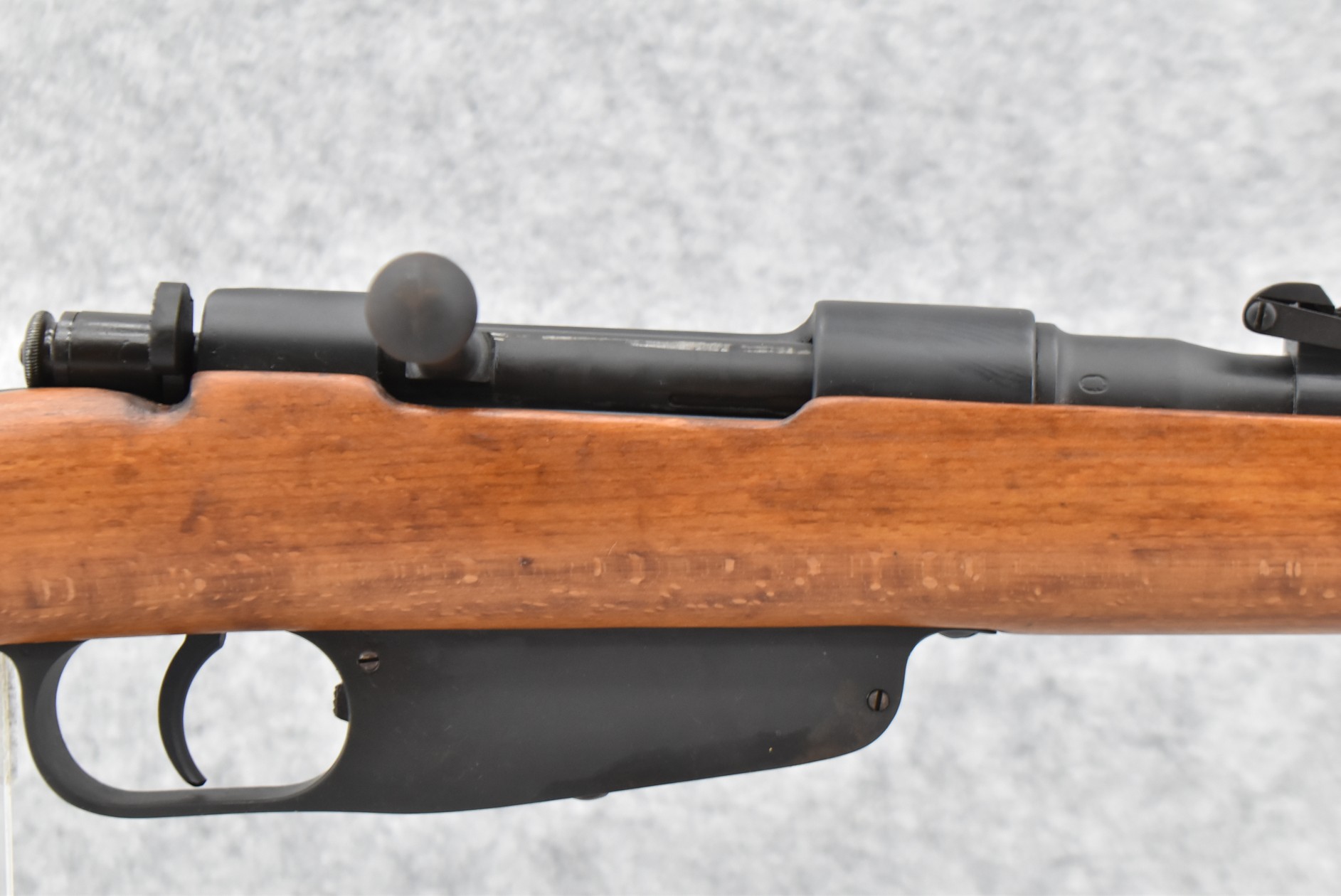 41R. Italian Carcano – 6.5 Cal Bolt Action Rifle – w/27 ¼” Barrel w/Blade Front & Adj. Rear Sights – Matte Blued Finish – w/Sporterized Customized Straight Grip Wood Stock w/Metal Butt Plate – Dated 1941