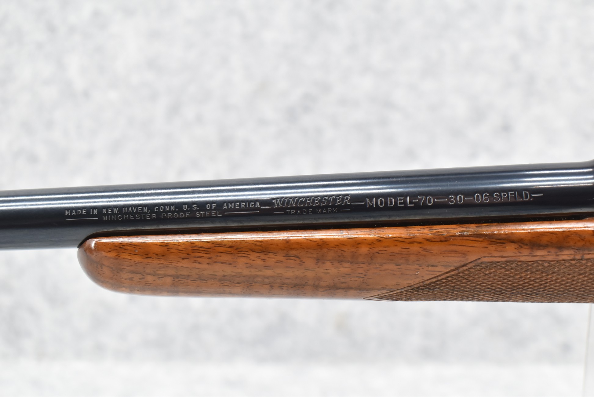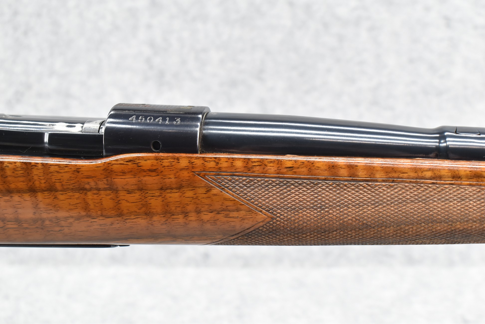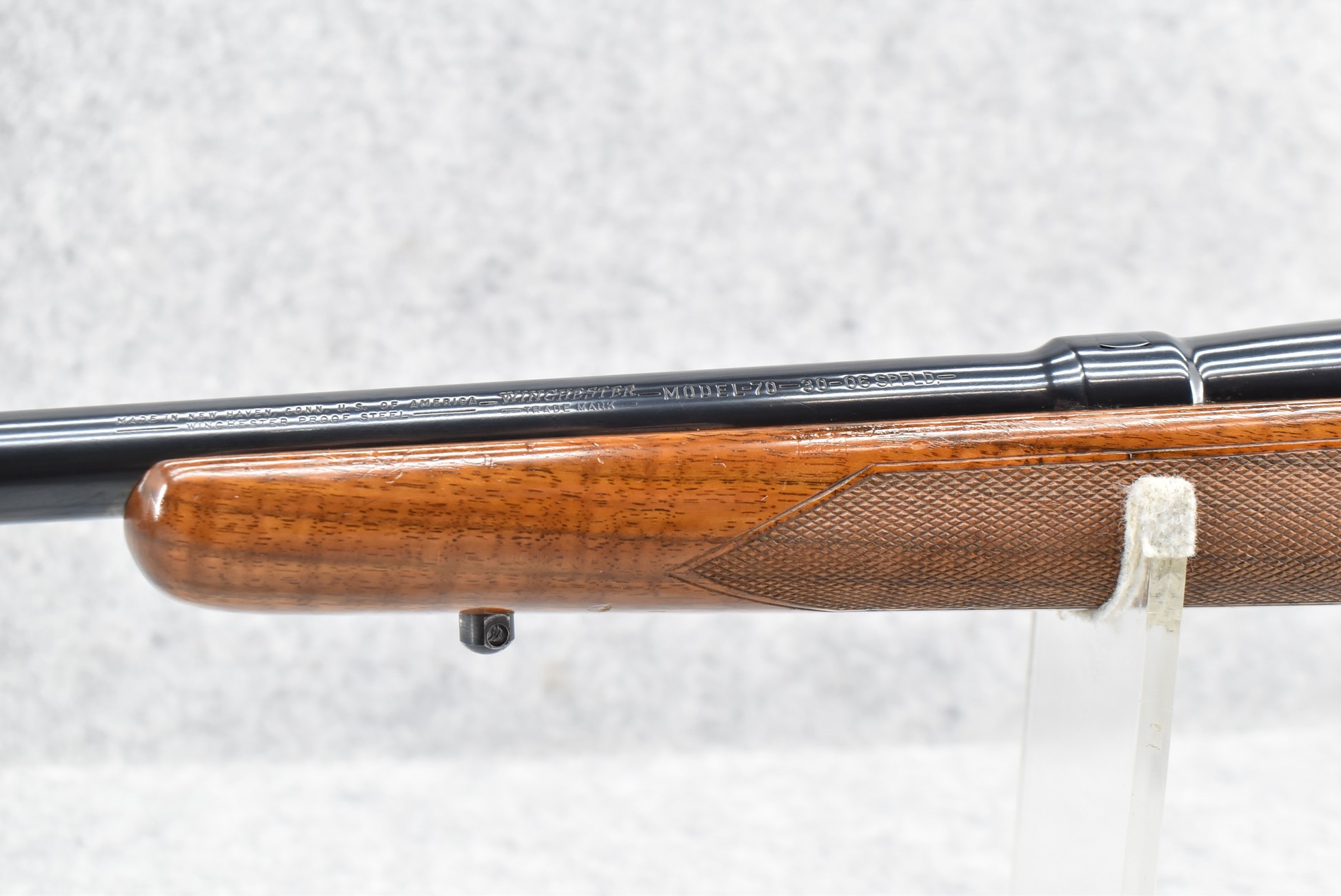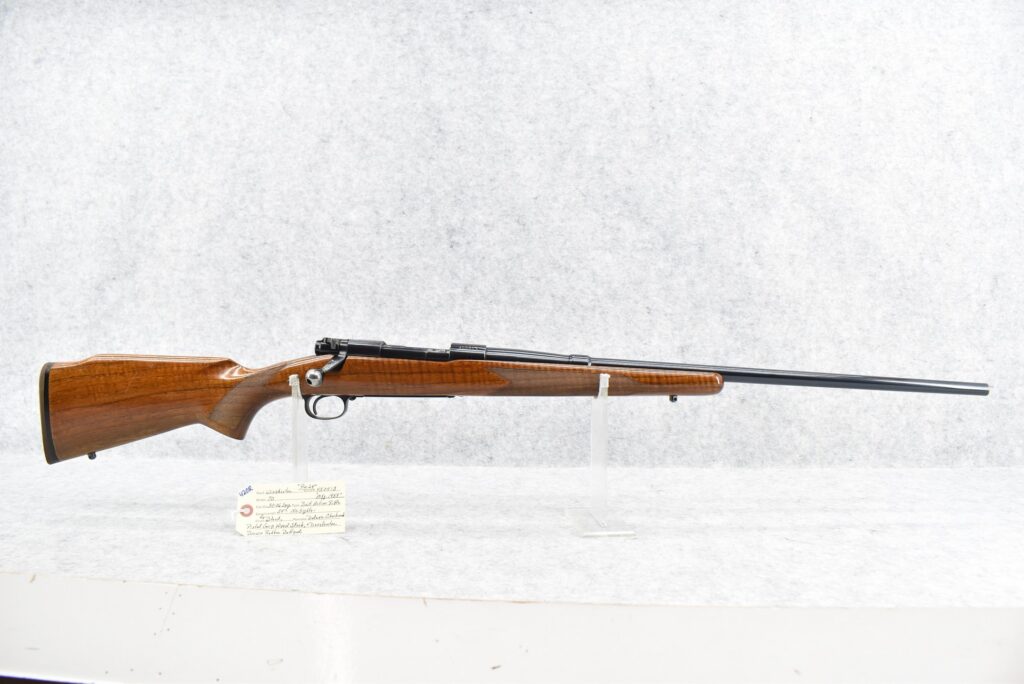 420R. Winchester – Mod. 70 (Pre-64) – 30-06 Sprg. Cal. Bolt Action Rifle – w/24” Barrel (No Sights) – Re-Blued Finish – w/Deluxe Checkered Pistol Grip Wood Stock w/Decelerator Butt Pad – Mfg. 1959