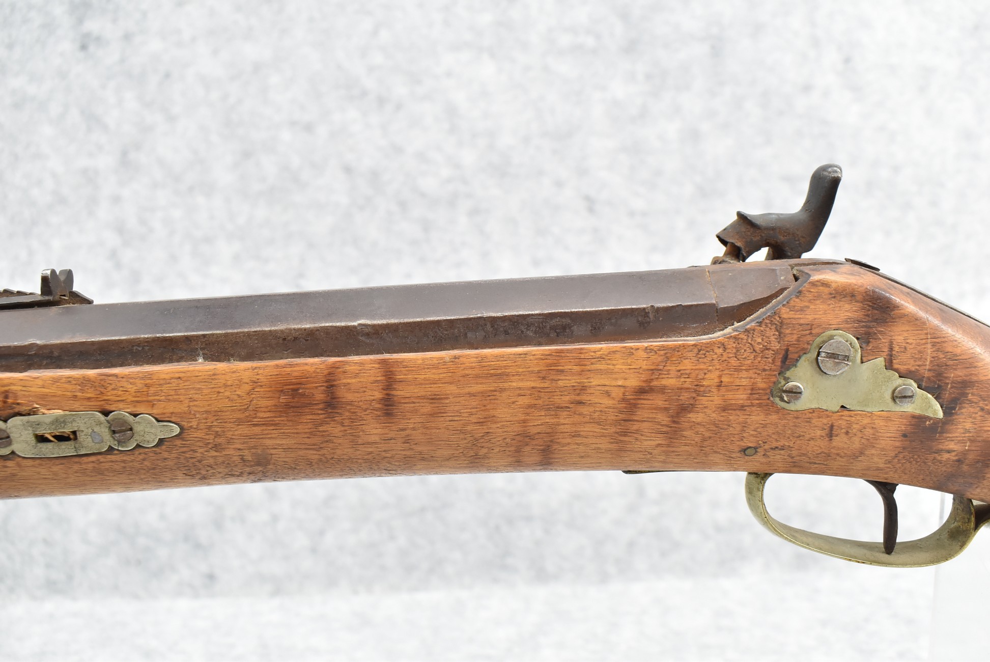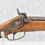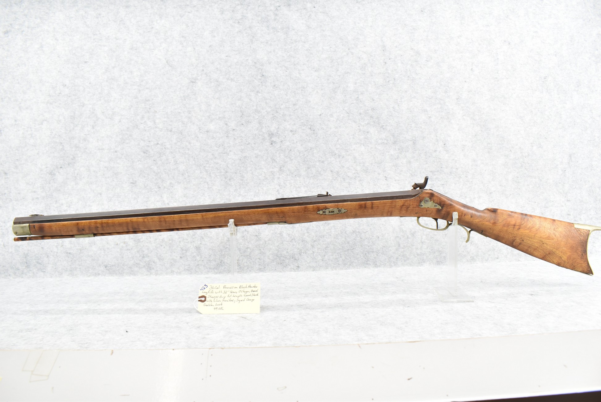 423. 36 Cal. Black Powder Percussion Long Rifle – w/32” Heavy Octagon Barrel w/Sights – w/Straight Grip Full Length Wood Stock w/Silver Furniture – w/Signed George Goulcher Lock – Overall Length 49”