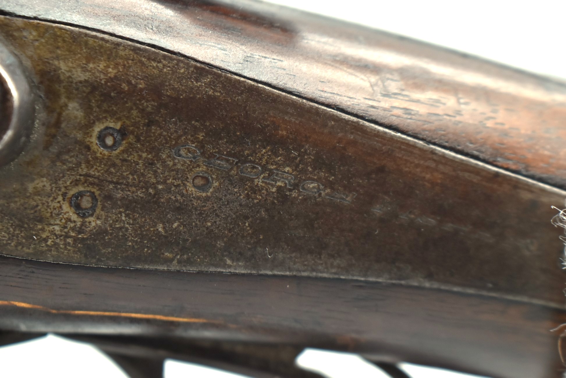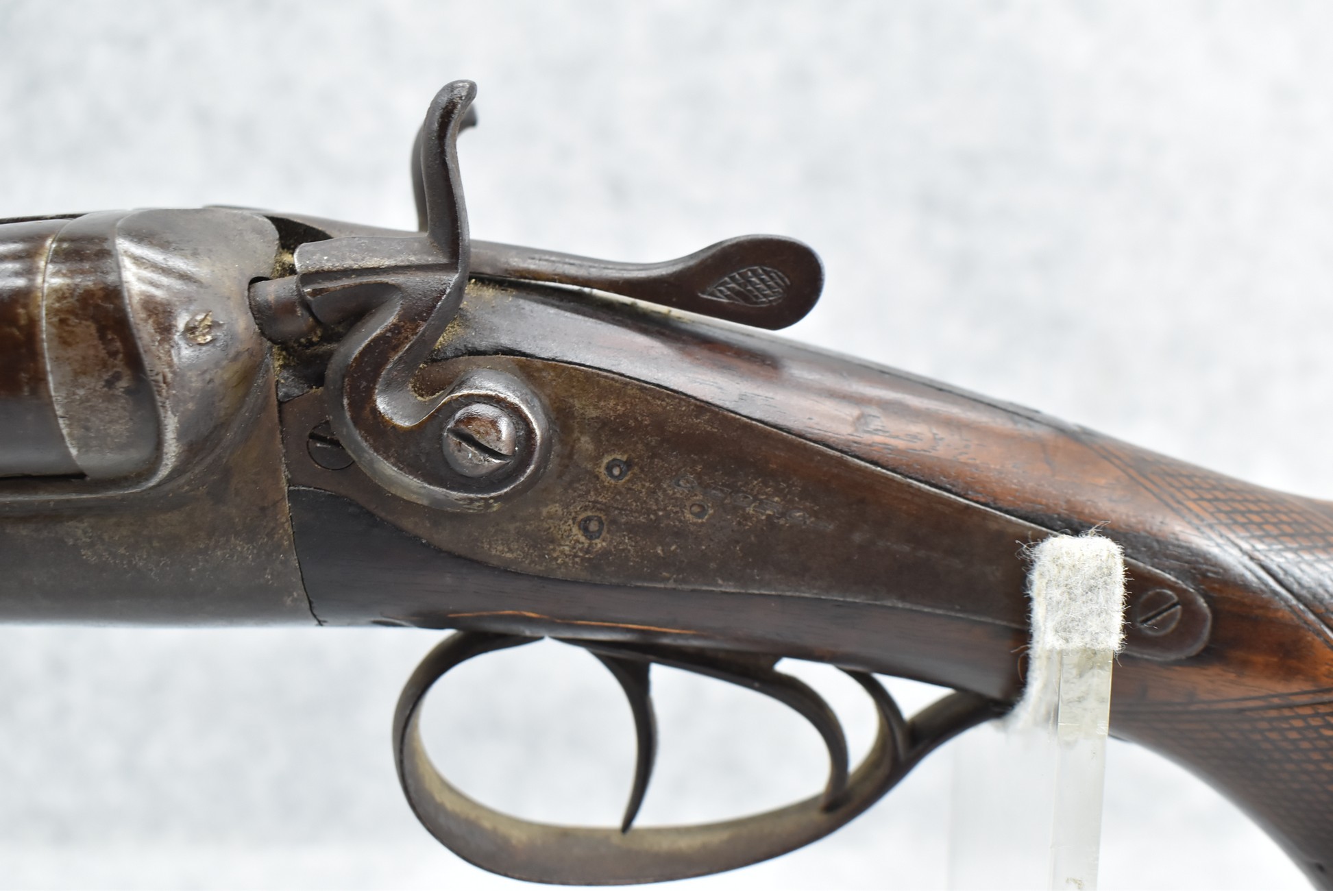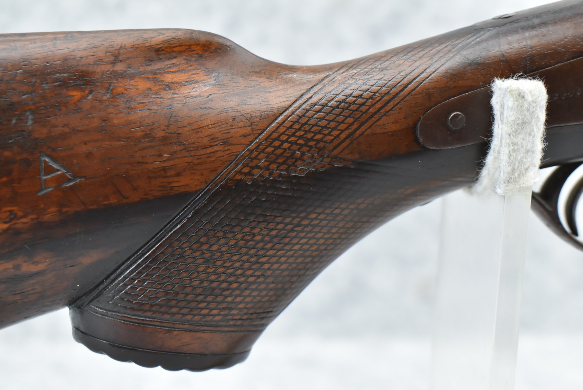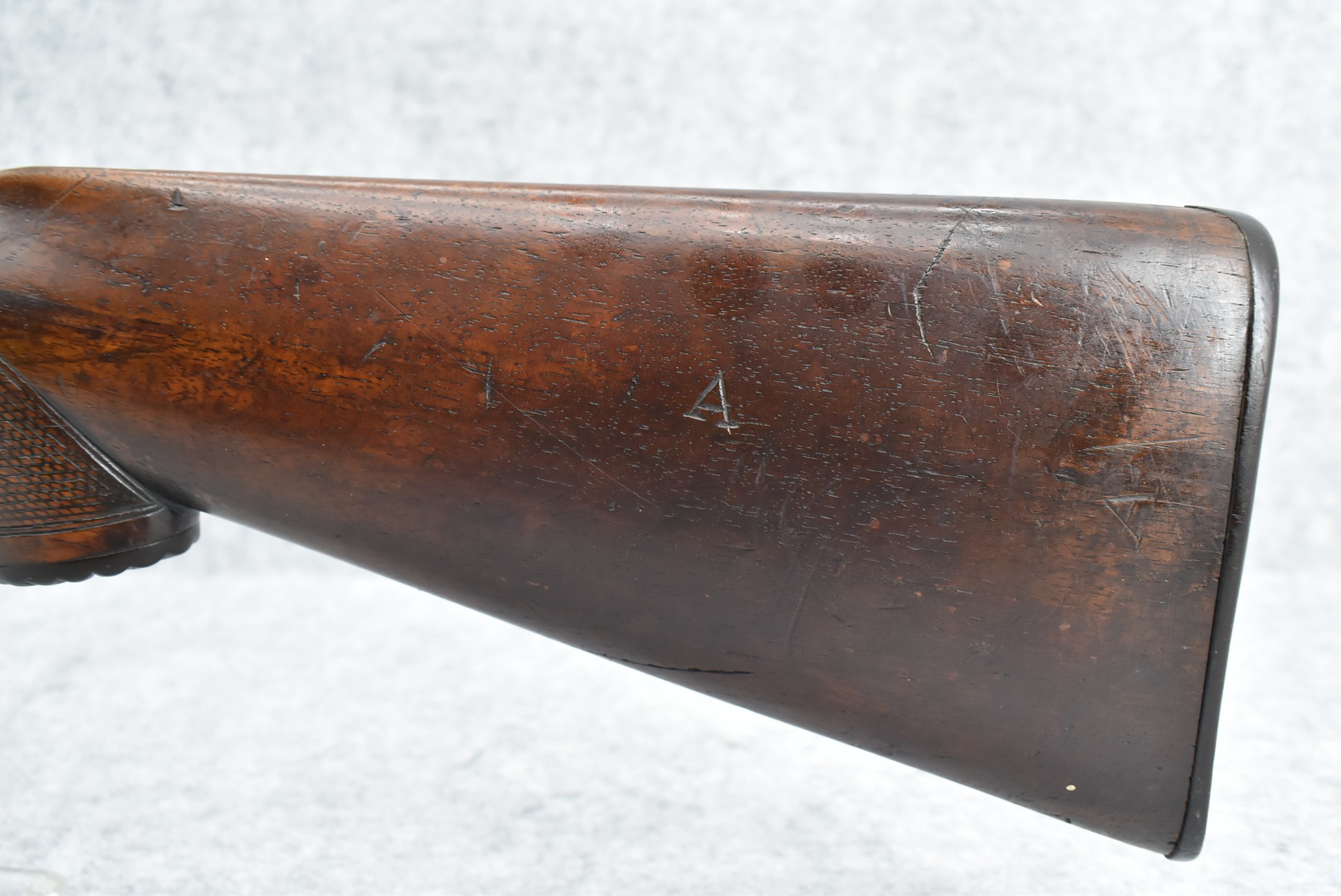 425. Belgian – 12ga. Percussion Double Barrel Shotgun – w/30” Solid Rib Barrels w/Front Bead Sight – w/Checkered Capped Wood Pistol Grip Stocks w/Game Scene on Butt Plate – Marked for English Retailer George Fisher