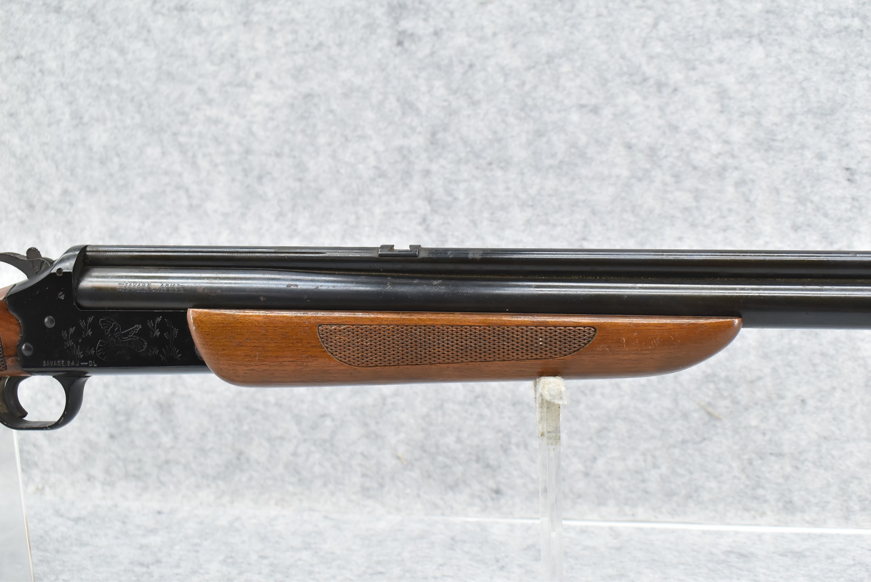 427R. Savage – Mod. 24J-DL – 22 WMR/20ga. 3” Over/Under Rifle/Shotgun Combination – w/24” Over/Under Barrels w/Blade Front Sight – Blued Finish – w/Checkered Capped Pistol Grip Wood Stock and Forearm w/Factory Butt Plate – w/Hammer Mounted Barrel Selector