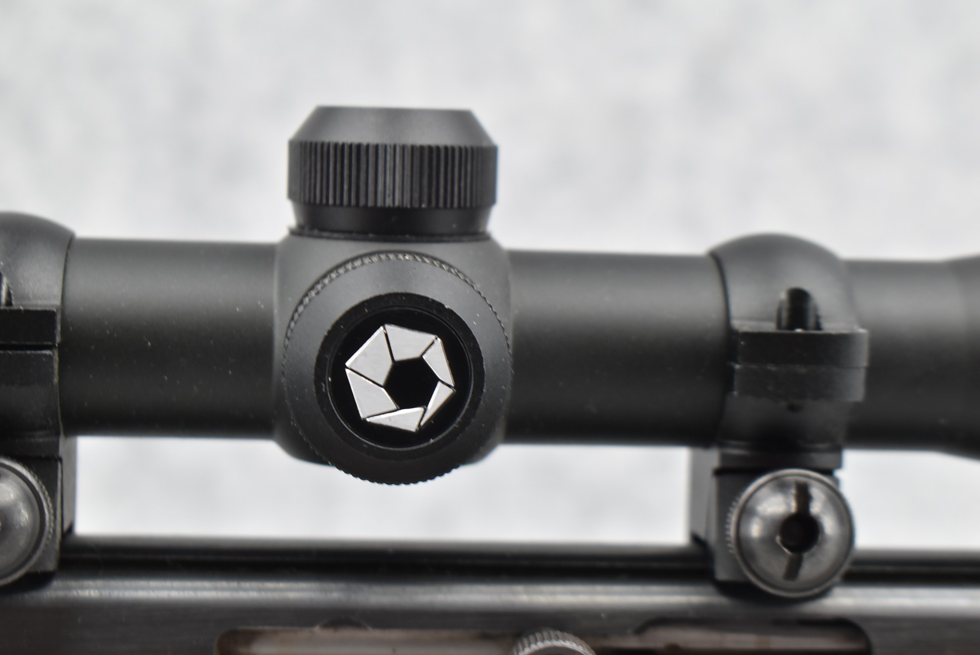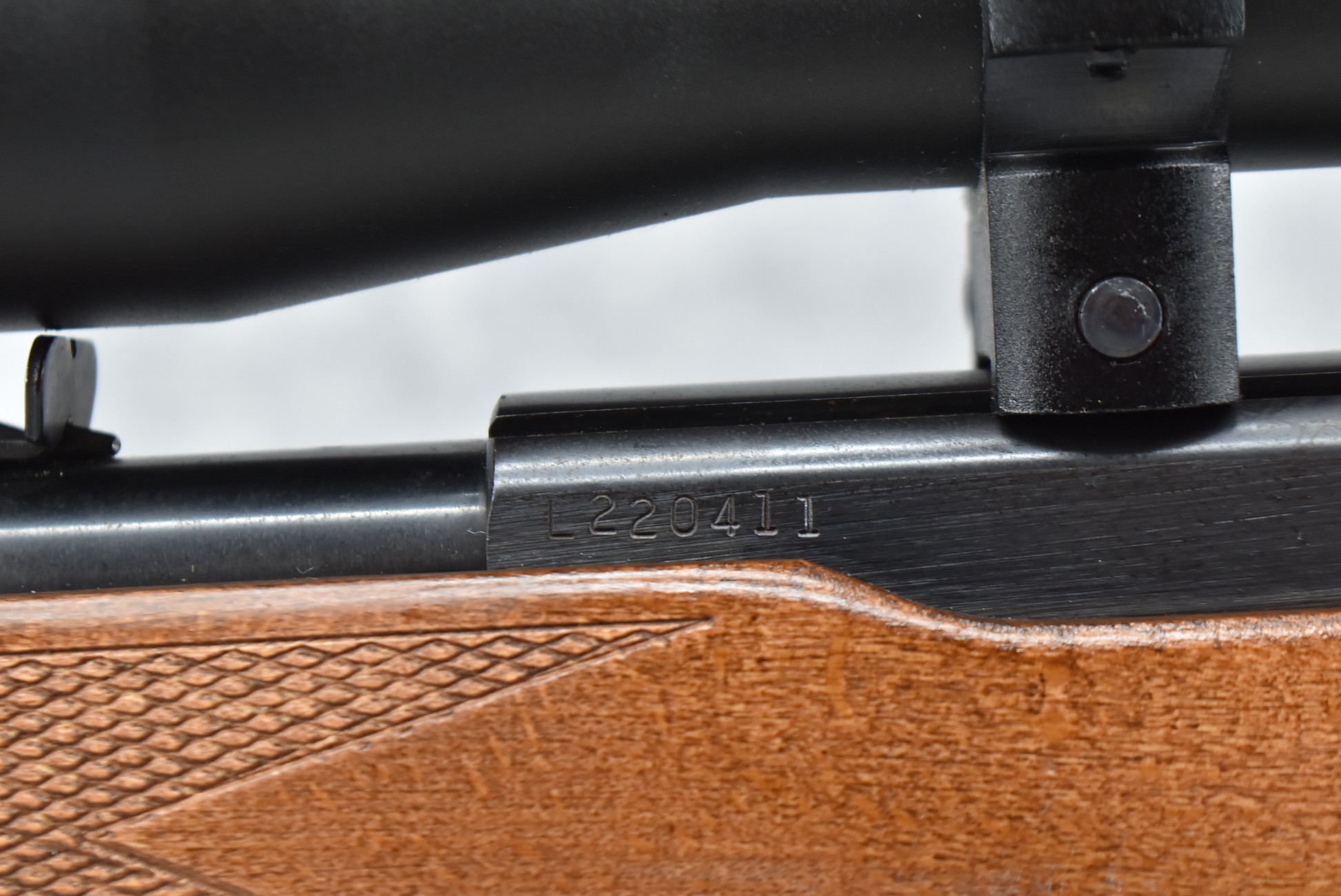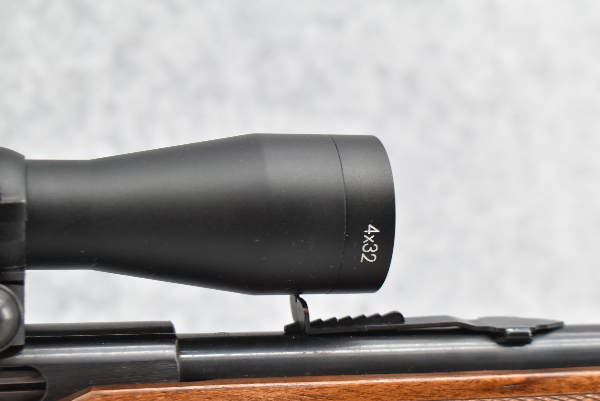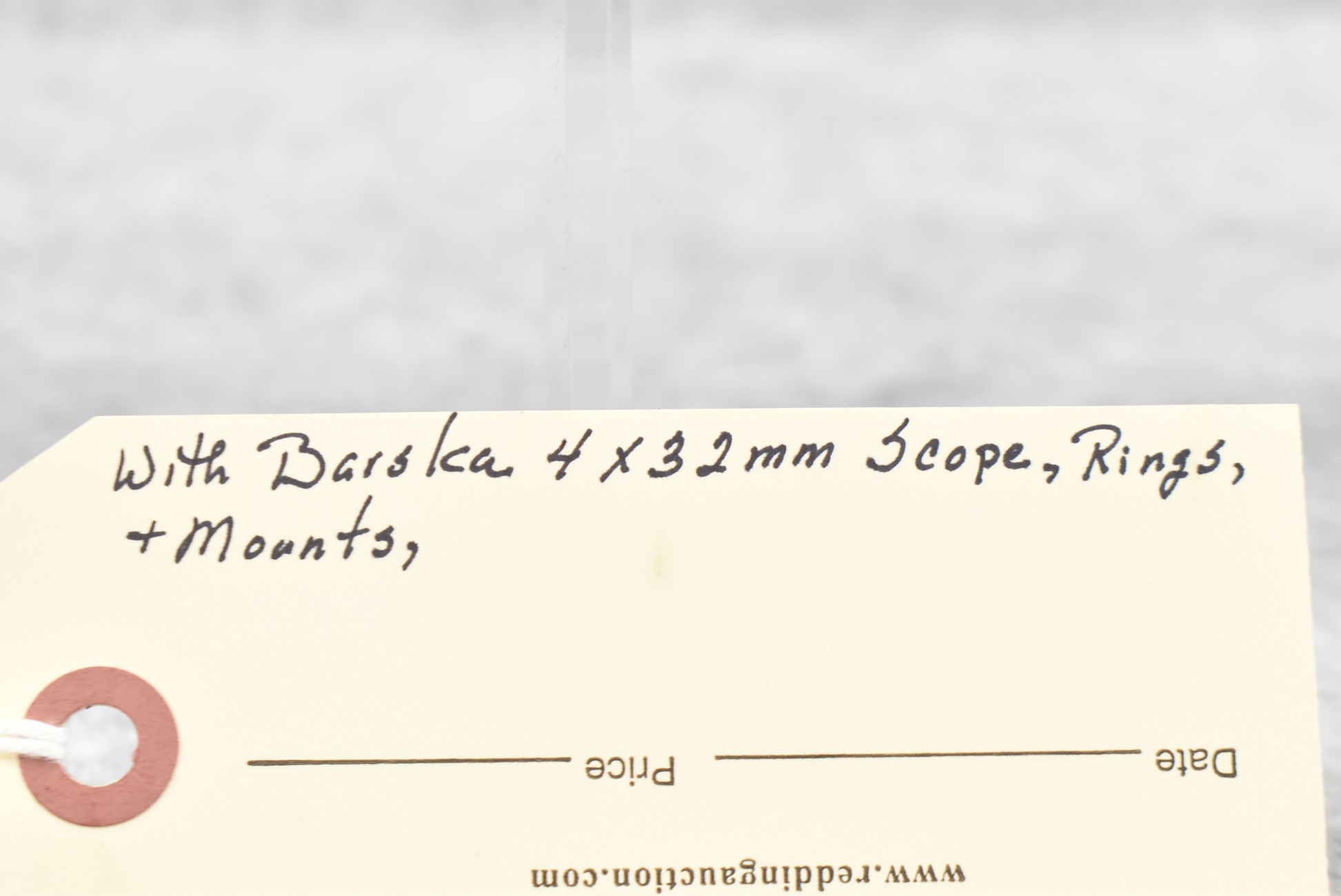 428R. Stevens – Mod. 954 – 22LR Cal. Semi-Auto Rifle – w/20 ¼” Barrel w/Blade Front & Adj. Rear Sights – Blued Finish – w/Checkered Pistol Grip Wood Stock w/Butt Plate – w/Detachable Magazine – w/Barska 4x32mm Scope, Rings & Mounts