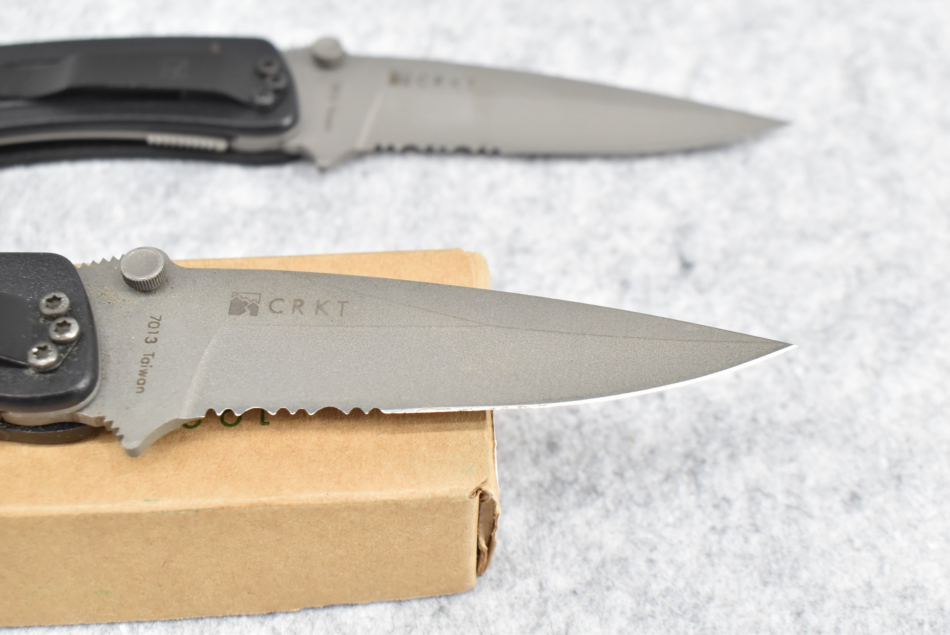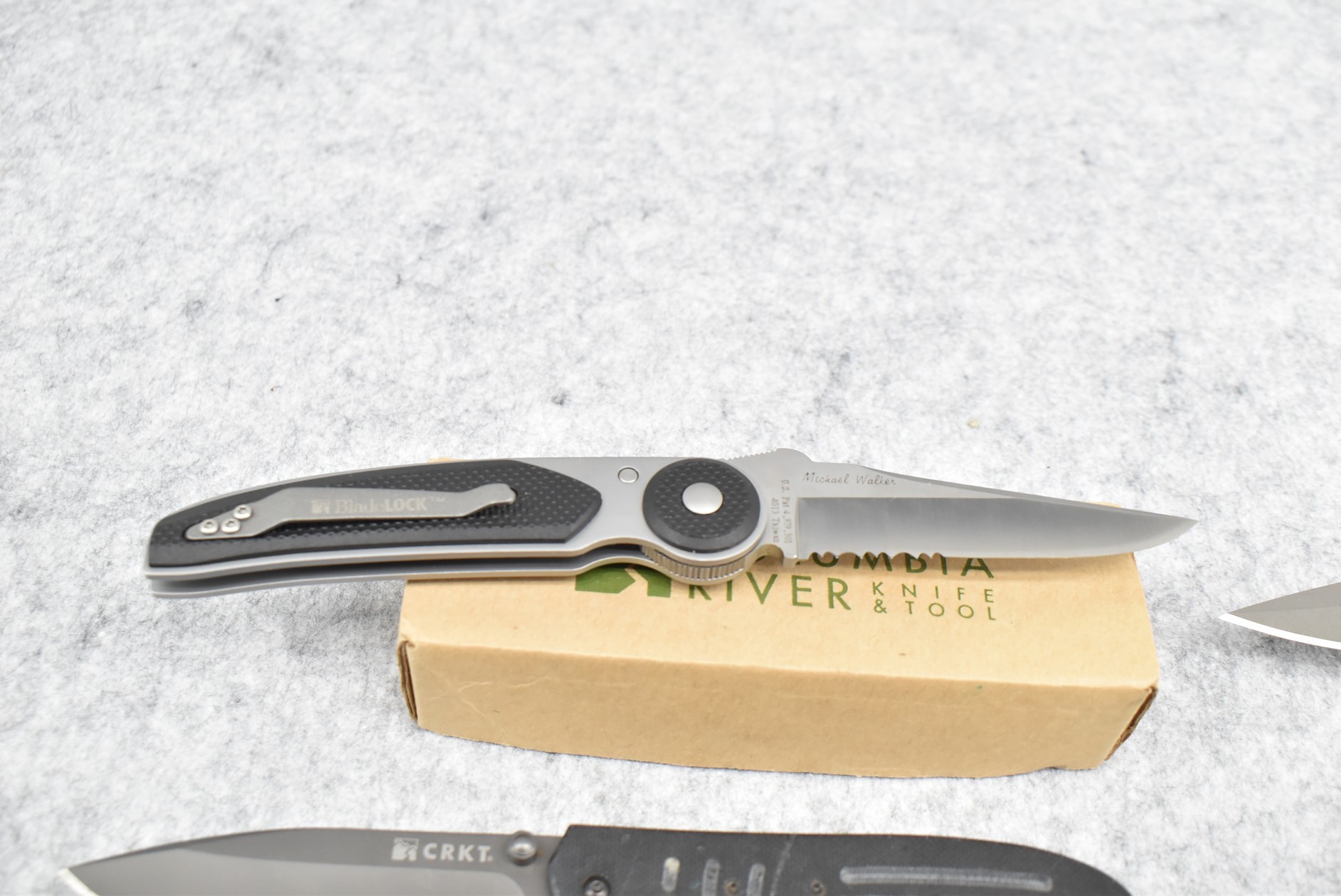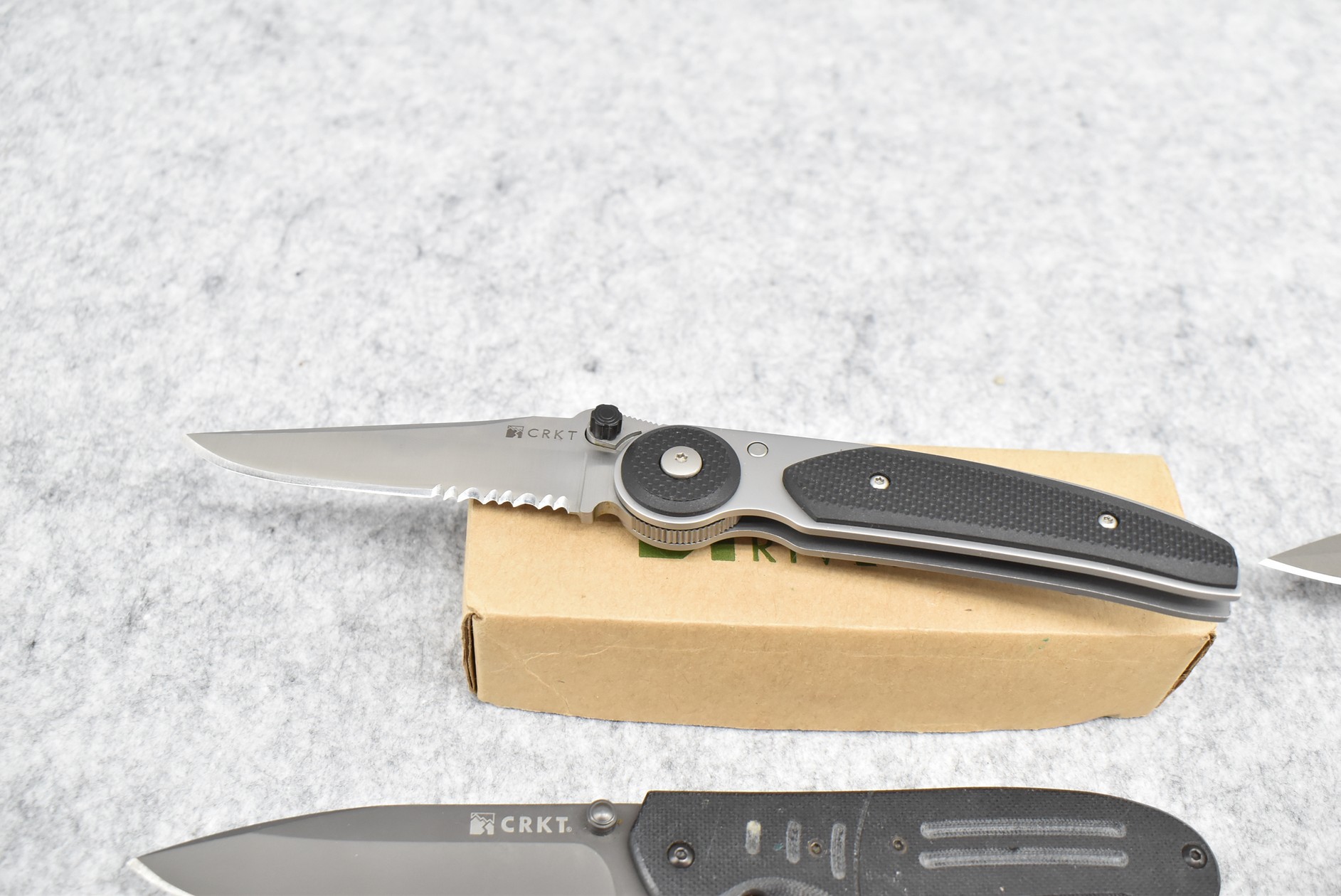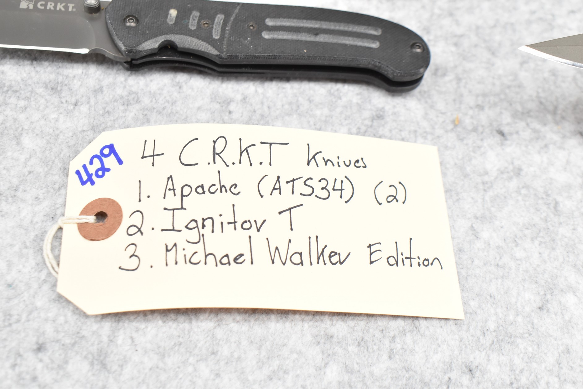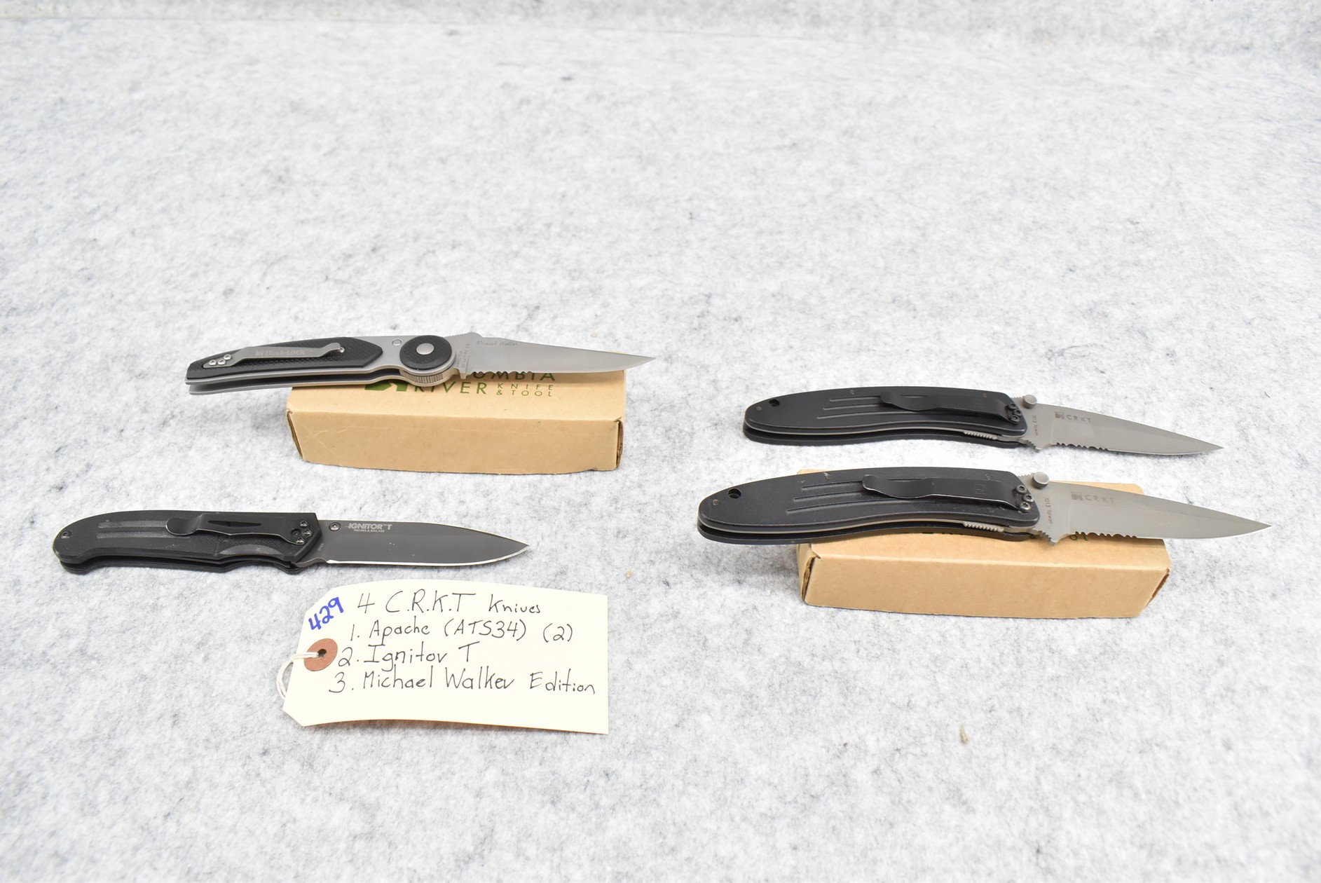 429. Lot of 4 C.R.K.T. Folding Knives: 1) Two Apache (ATS34). 2) Ignitor T. 3) Michael Walker Edition