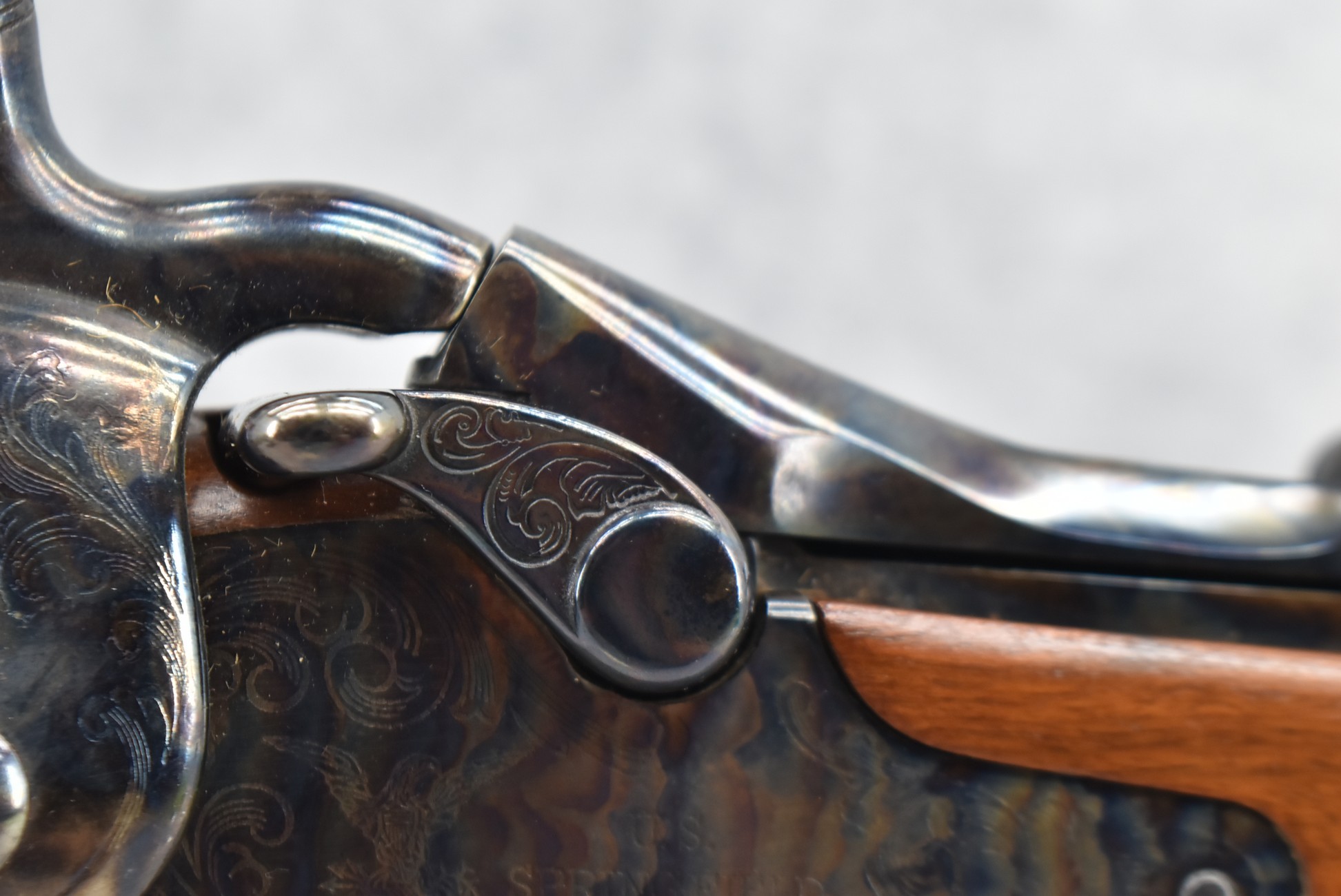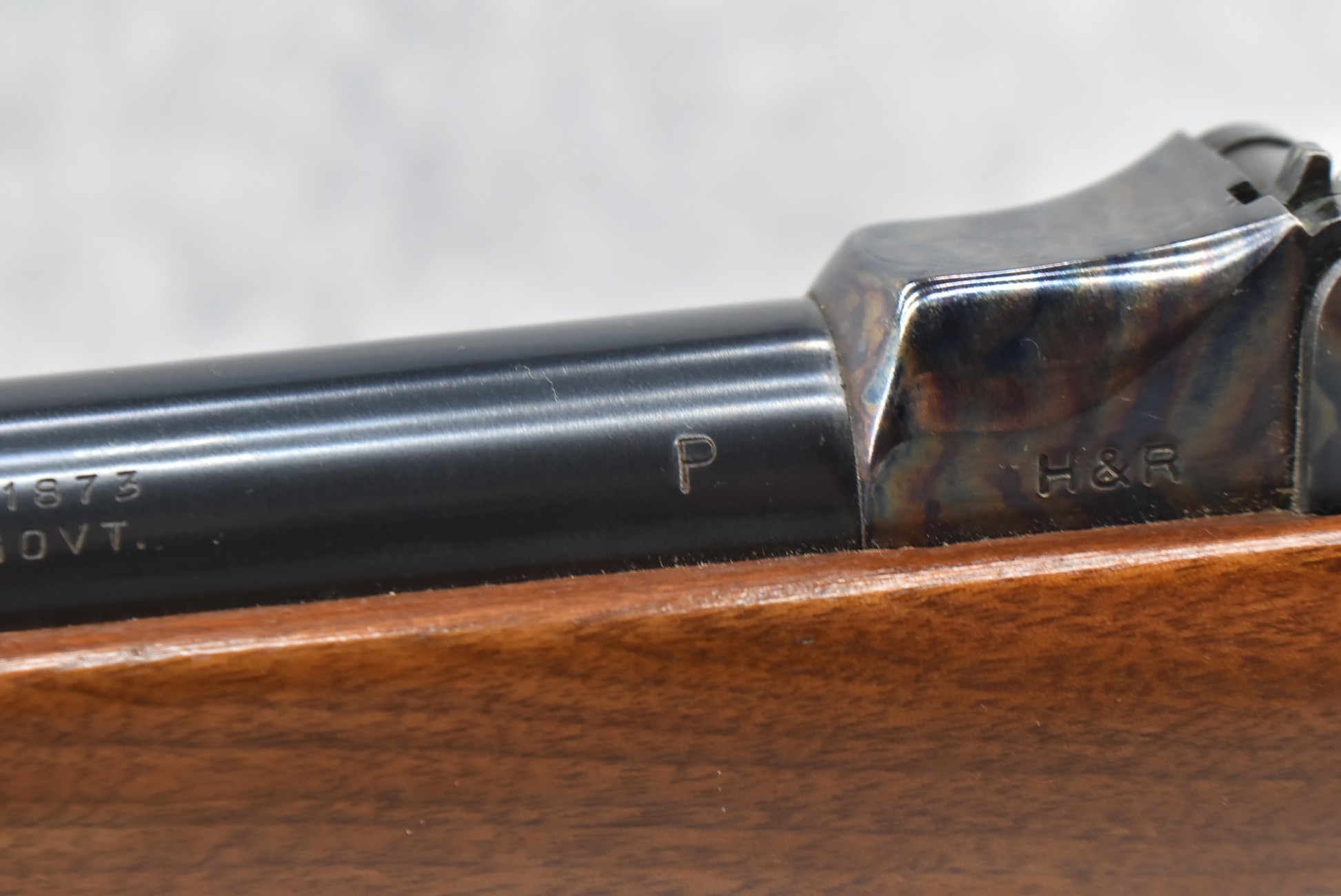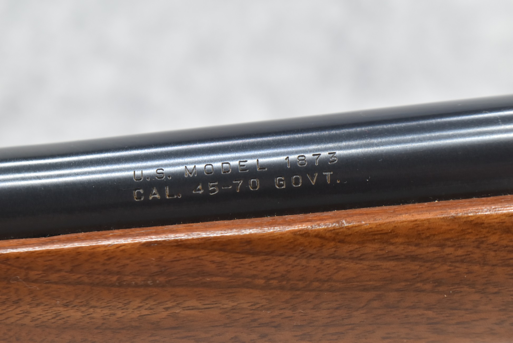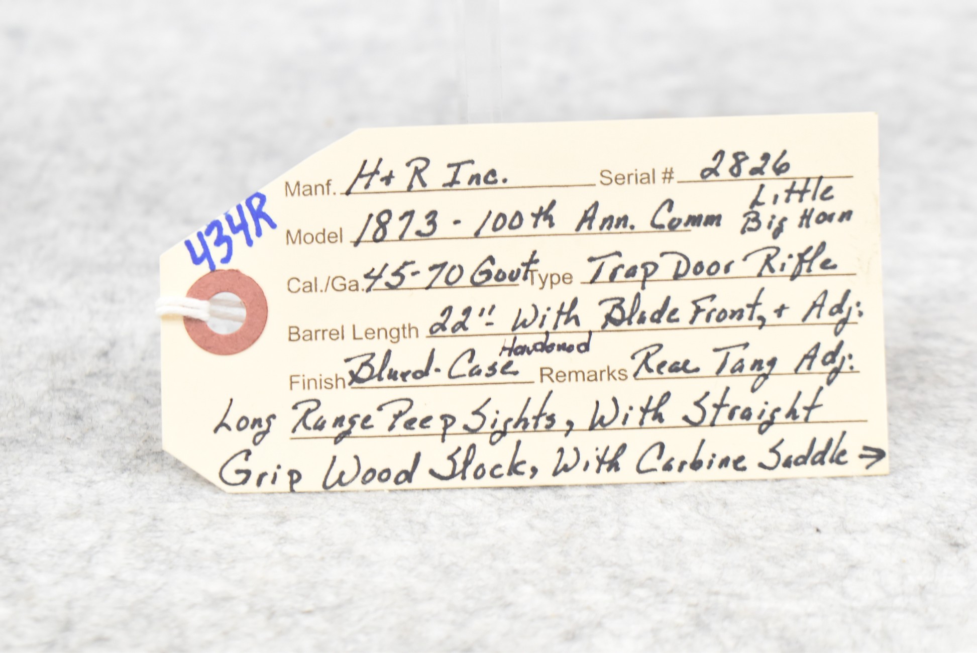 434R. H. & R. Inc. – Mod. 1873 – 100th Anniversary Little Big Horn Commemorative – 45-70 Govt Cal. Trap Door Rifle – w/22” Barrel w/Blade Front & Adj. Rear Tang Adj. Long Range Peep Sights – Blued/Case Hardened Finish – w/Straight Grip Wood Stock w/Carbine Saddle Ring & Carbine Butt Plate
