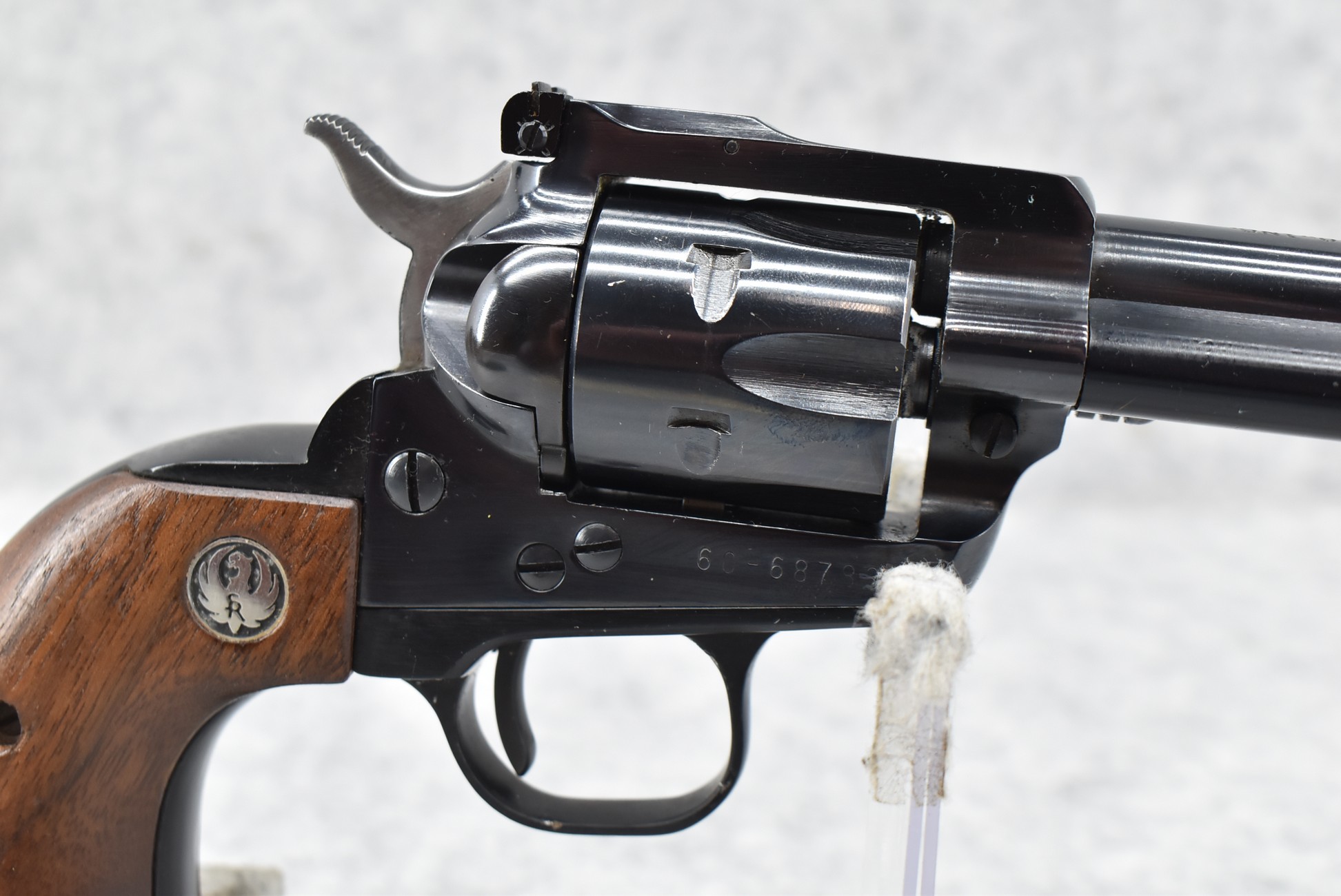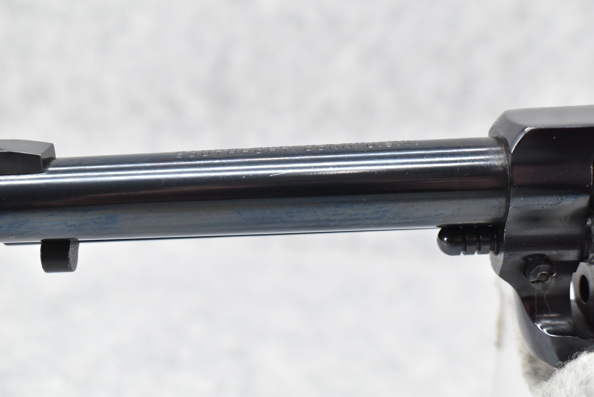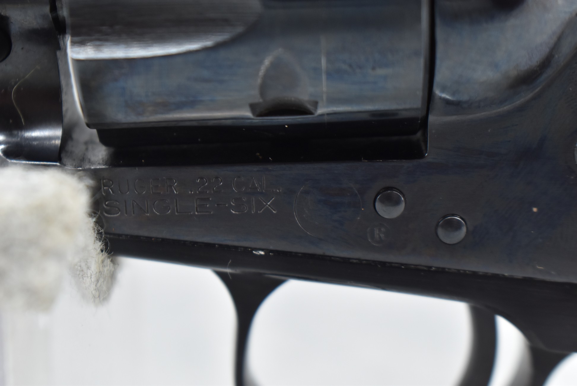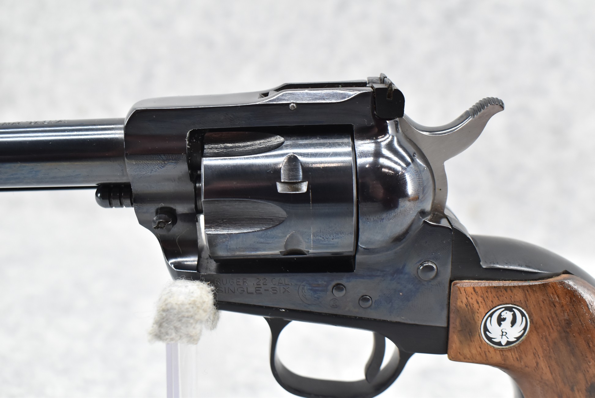 439R. Ruger – Mod. Single Six (3-Screw) – 22 Cal. Single Action Revolver – w/5 ½” Barrel w/Blade Front & Adj. Rear Notch Sights – Blued Finish – w/Ruger Silver Eagle Smooth Wood Grips – w/Box